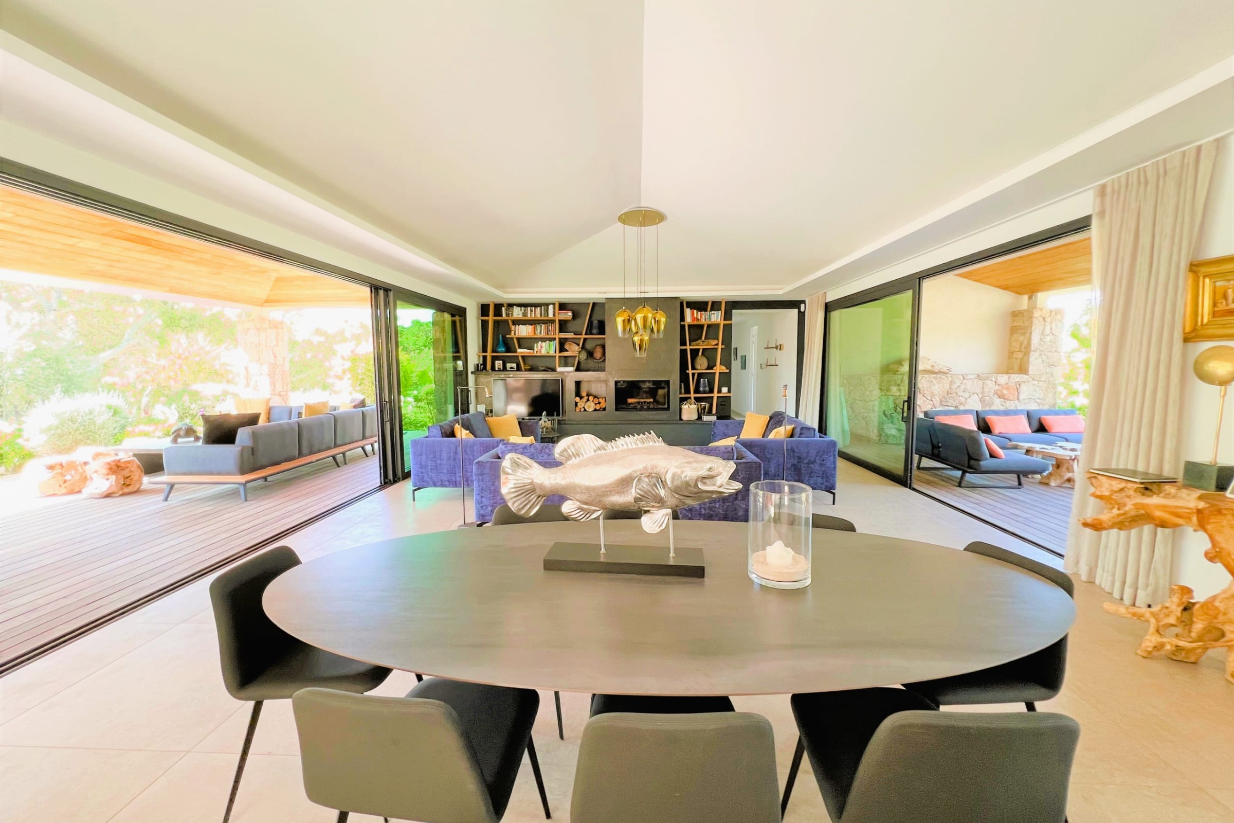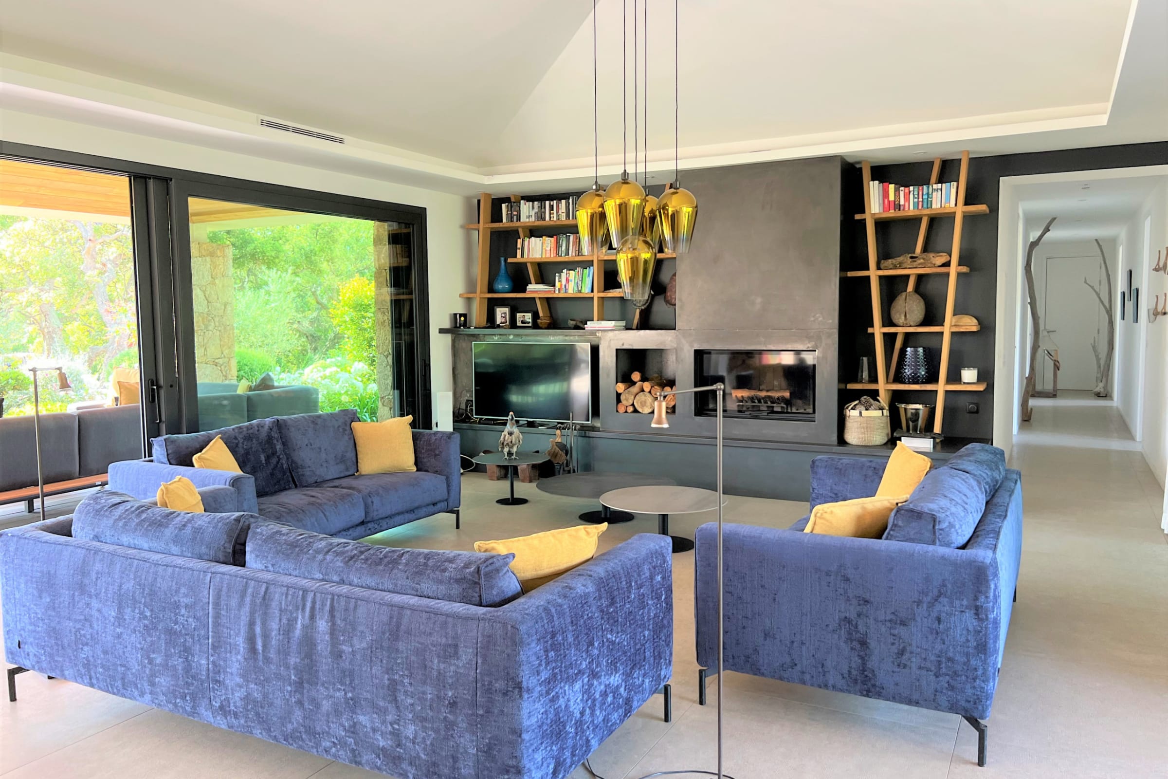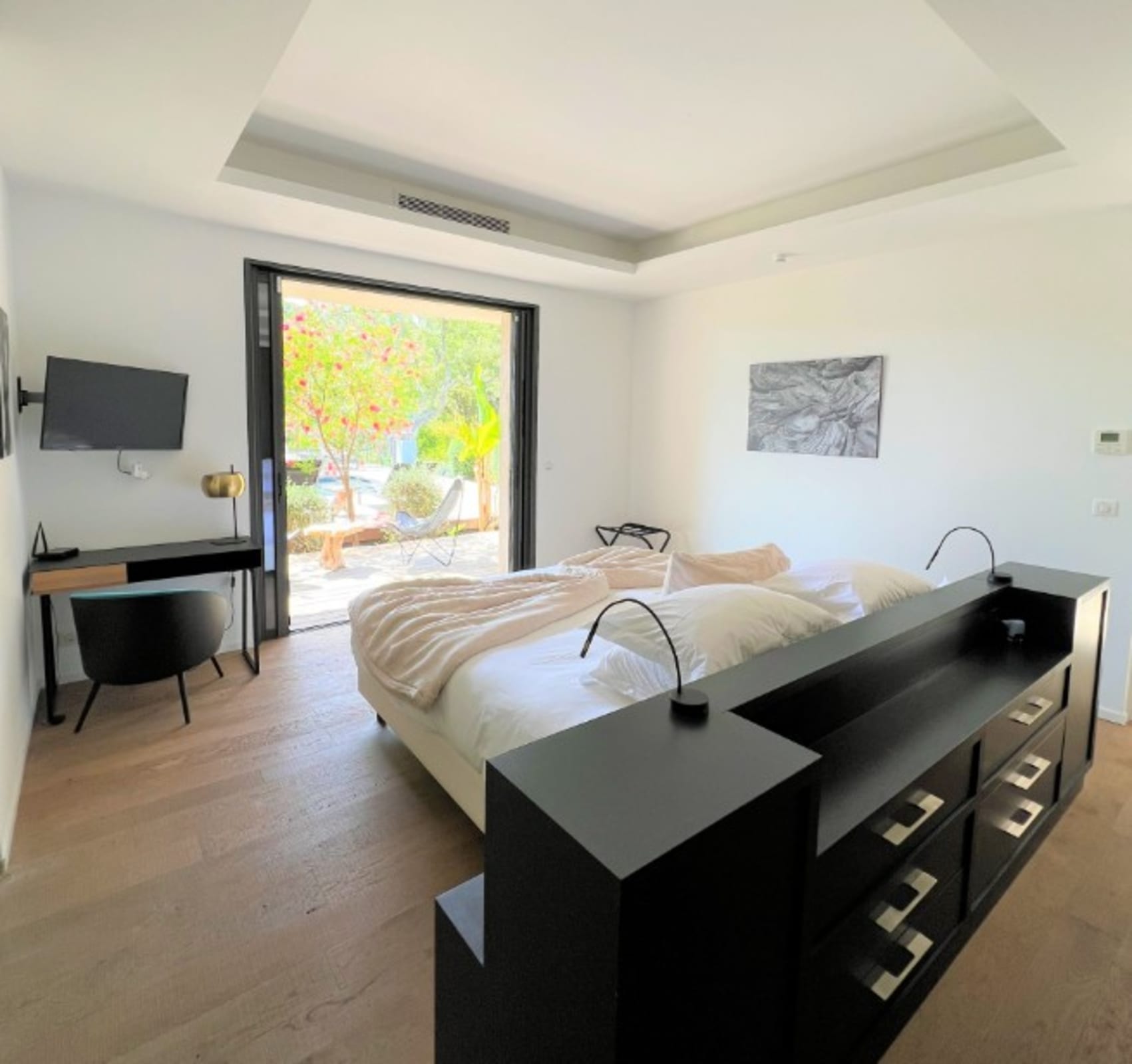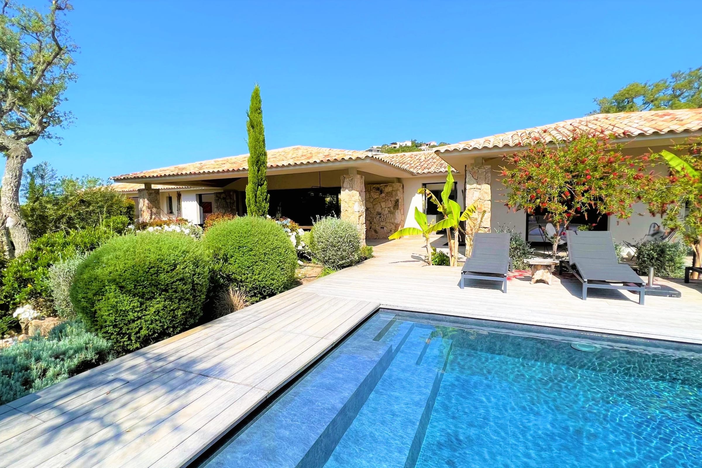 Set in a green setting, surrounded by cork oaks and pines, it is therefore perfectly integrated into the natural landscape with a south orientation, it is surrounded by wooden terraces.