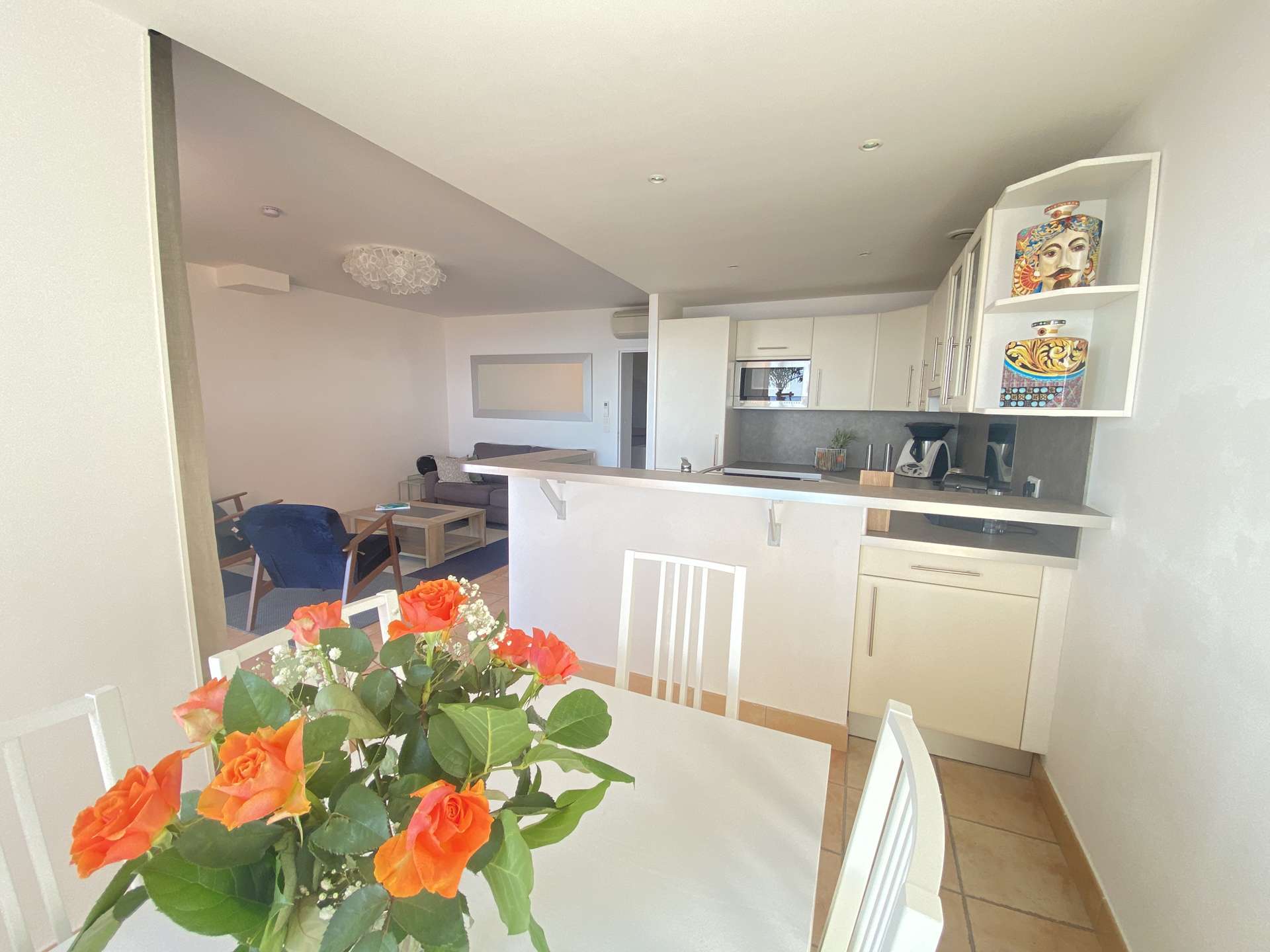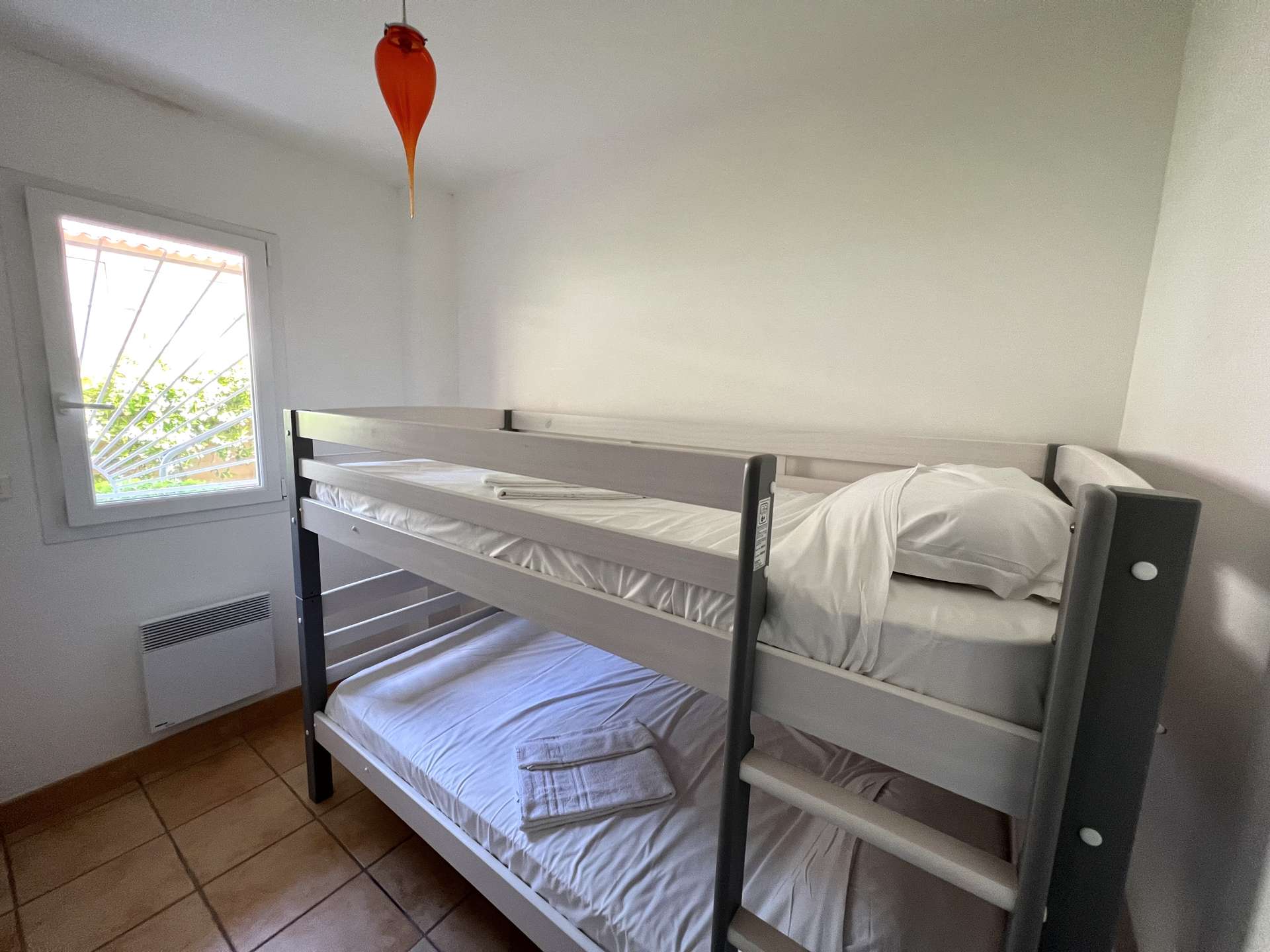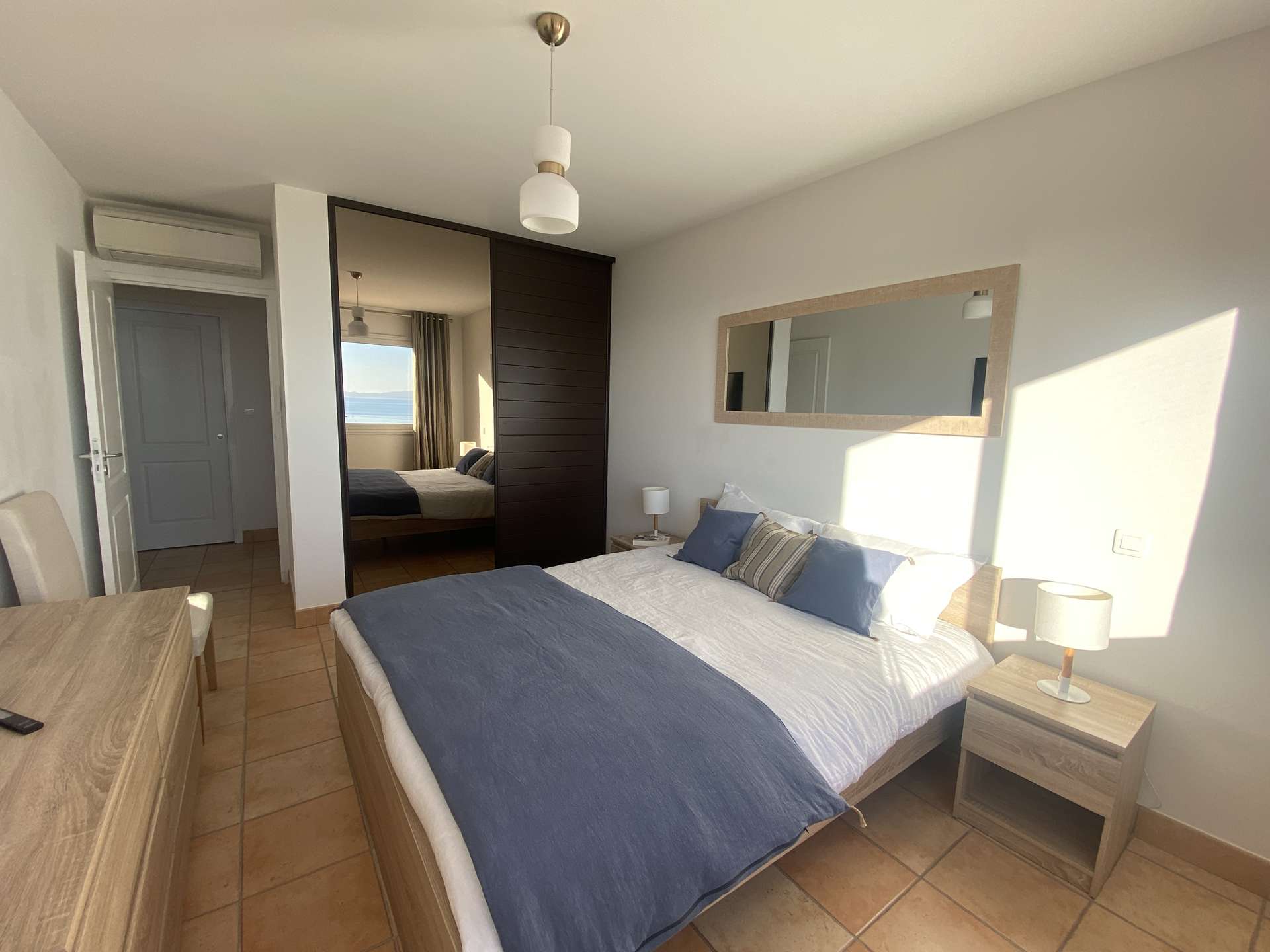 Mini villa - approximately 90m2 - up to 6 people In an extraordinary setting, on the road to the Sanguinaires Islands and 20 minutes from the center of Ajaccio, discover the standing of the residence "Les Hameaux des Sanguinaires", residence with swimming pool located less 100 meters from Moorea beach. The villa comprises on one level: an entrance, a cabin bedroom, a separate WC, a fully equipped kitchen open to the living-dining room, all opening onto the outside. Upstairs: a laundry area, two bedrooms each with storage and sea view, a shower room, and a bathroom with separate WC. The advantage of this mini villa: a pleasant exterior partly shaded and equipped with a dining area, from which you can admire the sea. IMPORTANT INFORMATION: End-of-stay cleaning, bed linen and towels are included in the price. rate.