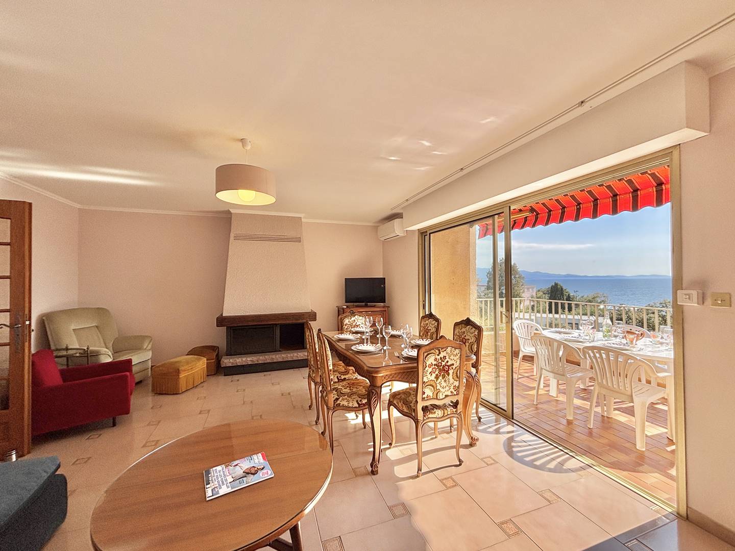 The advantages of this house: air-conditioned living room, terrace with sea view, free parking in front of the garage, semi-detached house in a quiet residential area.