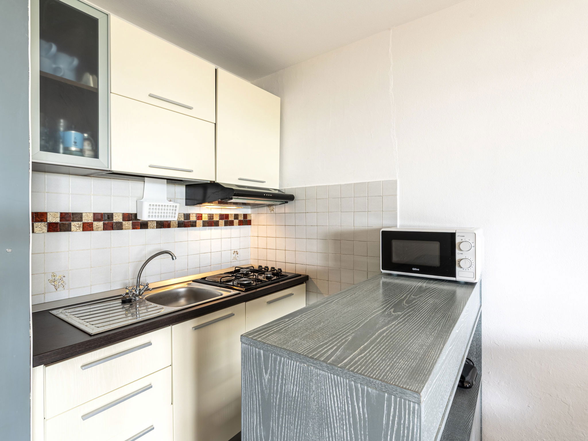 "Villa 16", 3-room terraced house 60 m2. Practical and beautiful furnishings: living/dining room with 1 sofabed (90 cm, length 190 cm), dining table. Exit to the terrace. 1 room with 1 french bed (160 cm, length 190 cm). 1 room with 1 x 2 bunk beds (90 cm, length 190 cm). Open kitchen (4 gas rings, toaster, kettle, microwave). Shower/bidet/WC. Electric heating, air-conditioning. Terrace partly roofed, lawn. Terrace furniture. Beautiful view of the sea. Facilities: washing machine. Parking (fenced). Please note: maximum 1 small pet/ dog allowed. Smoke alarm. 2A041000748ZU