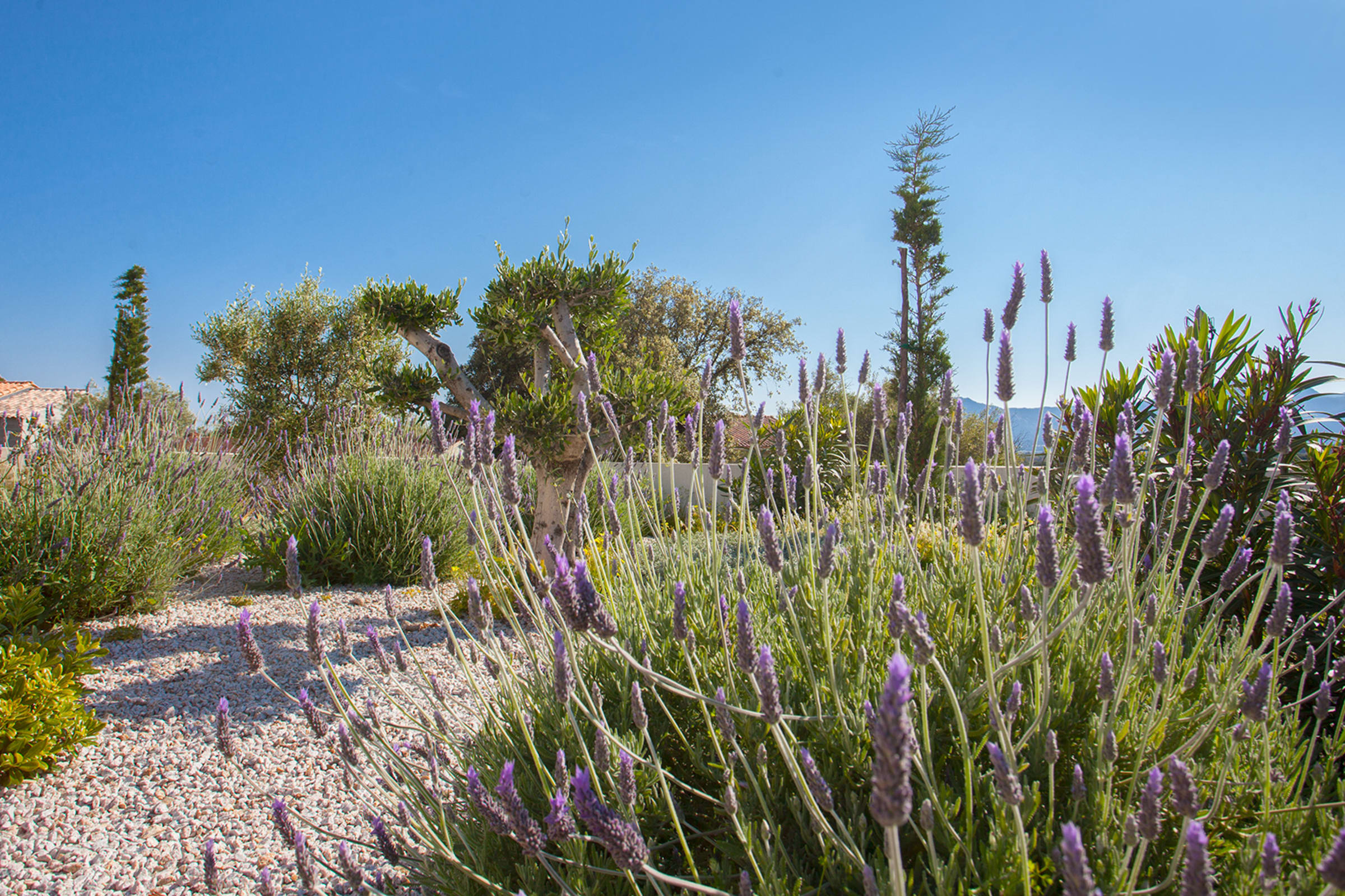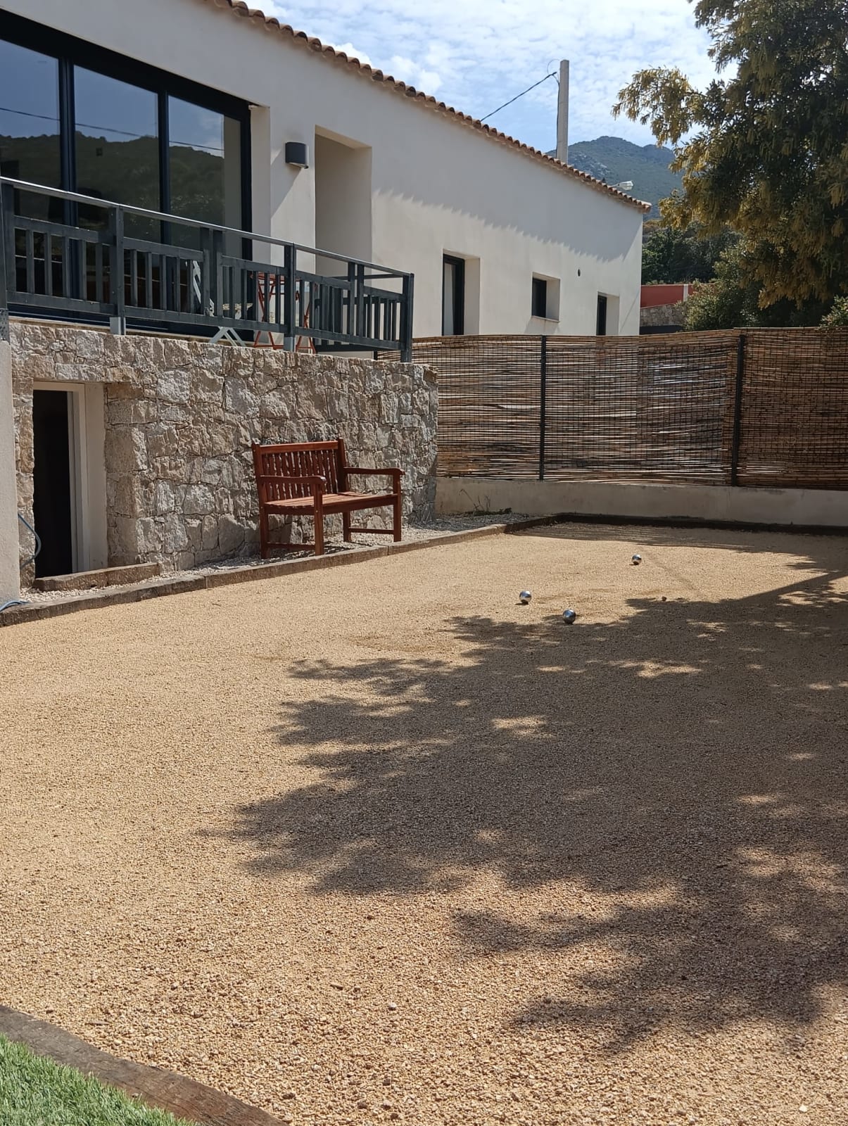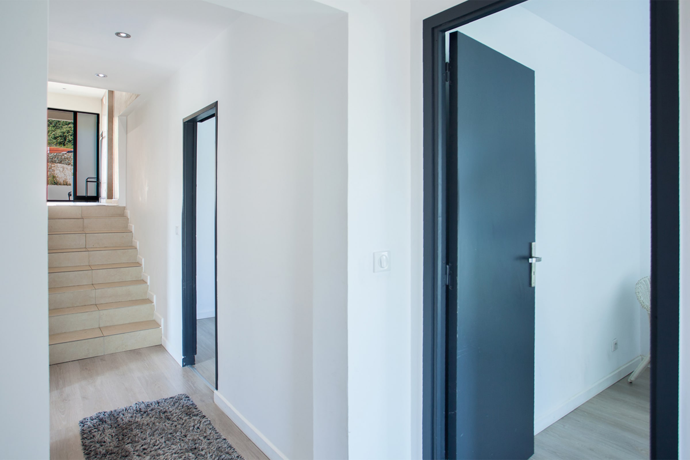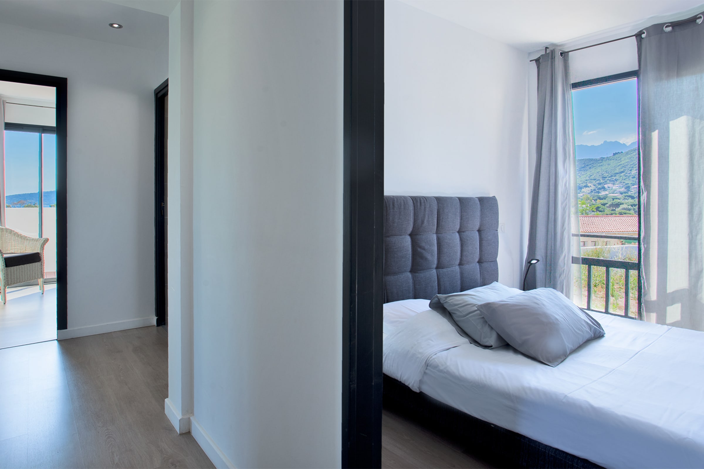 The swimming pool located below the villa is accessible from the living room and the bedrooms.