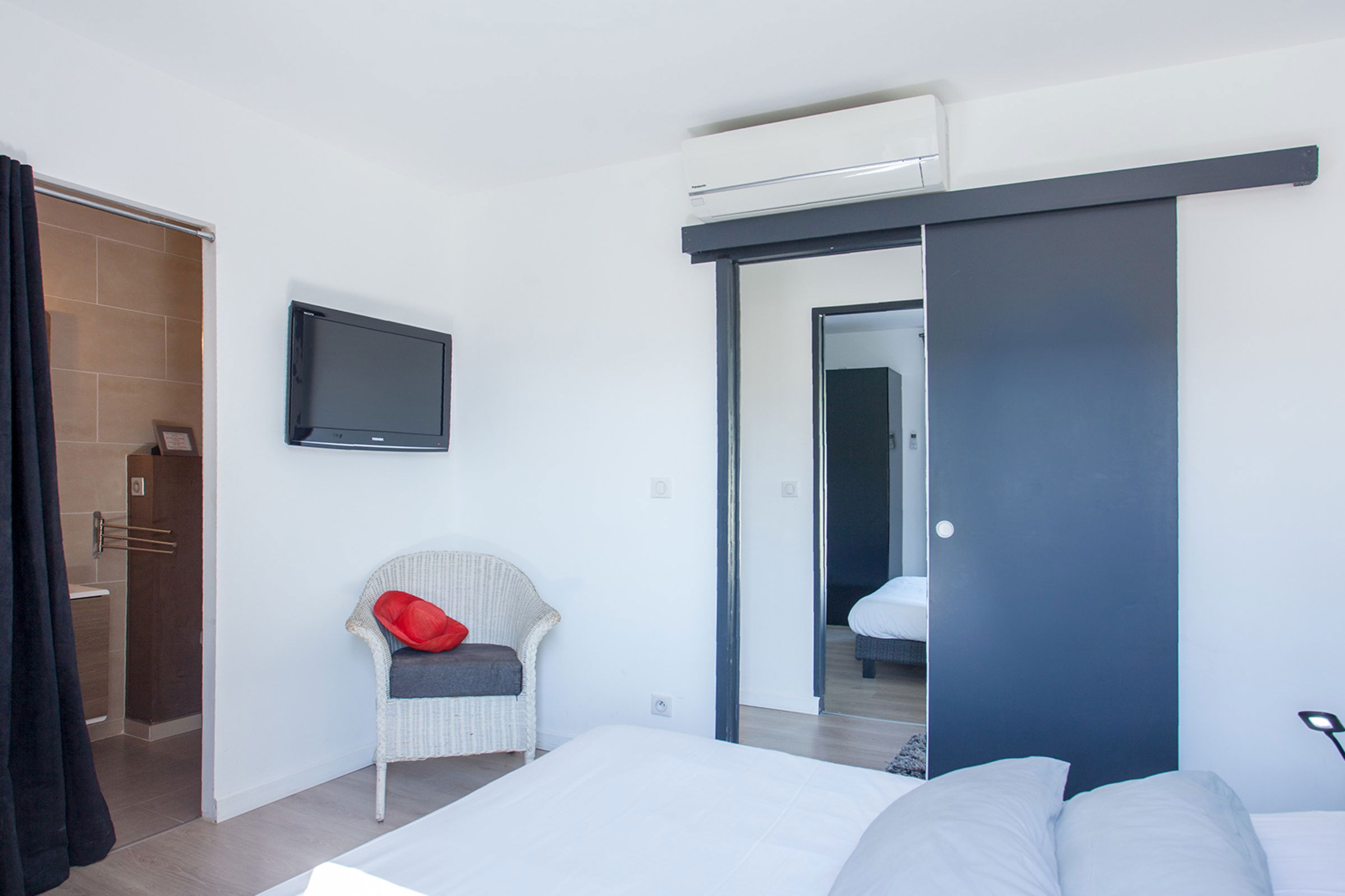 2 bedrooms with private bathroom (shower, WC) and 140 cm double bed.