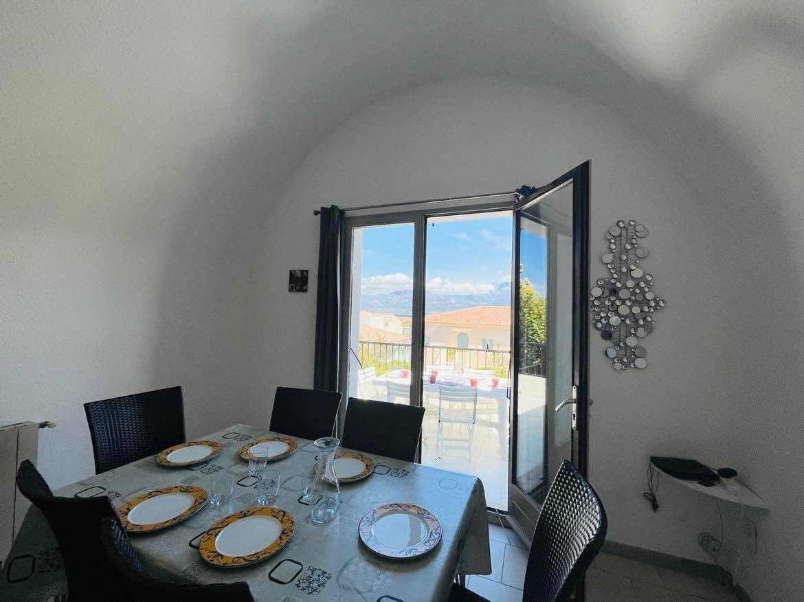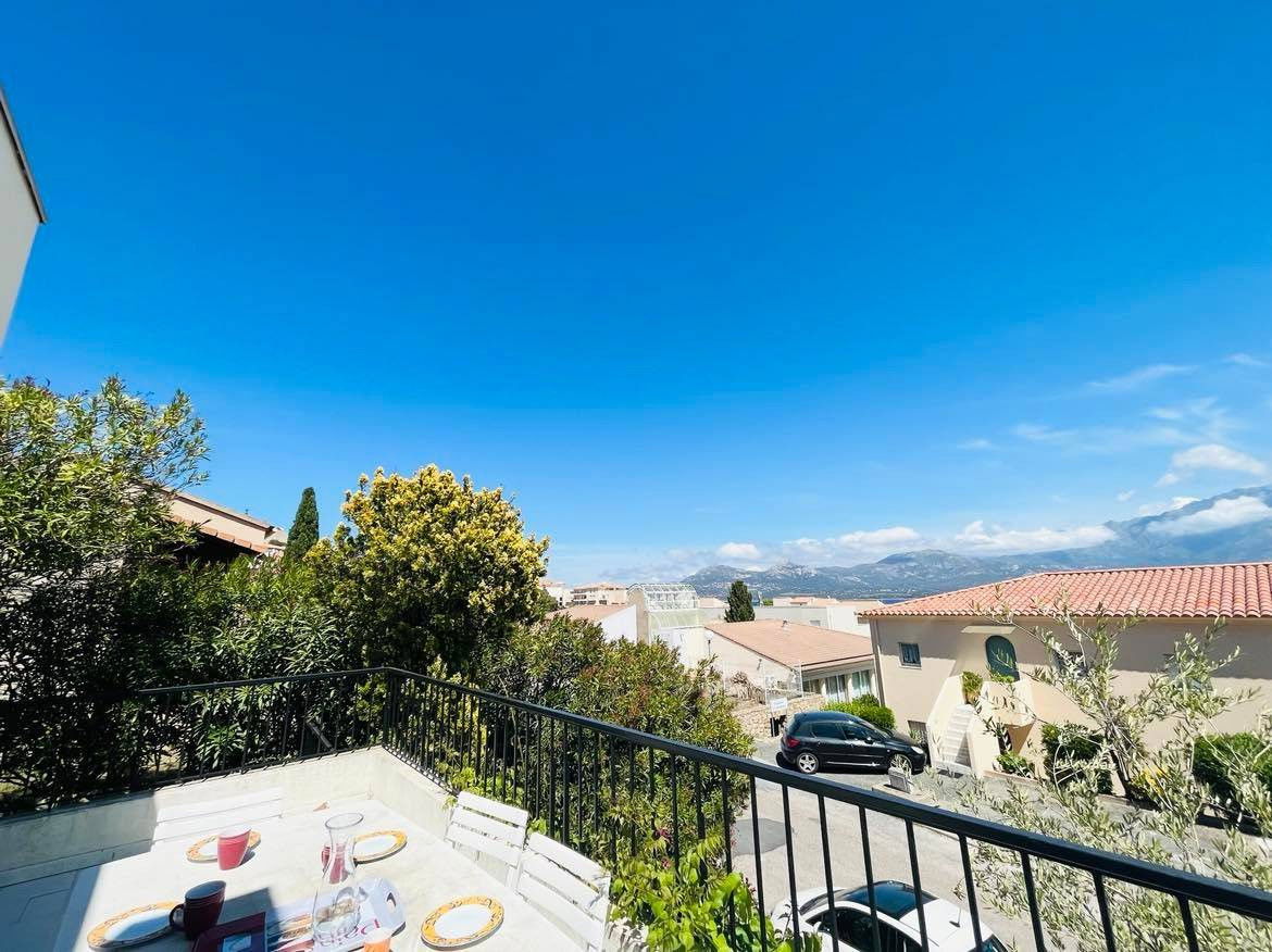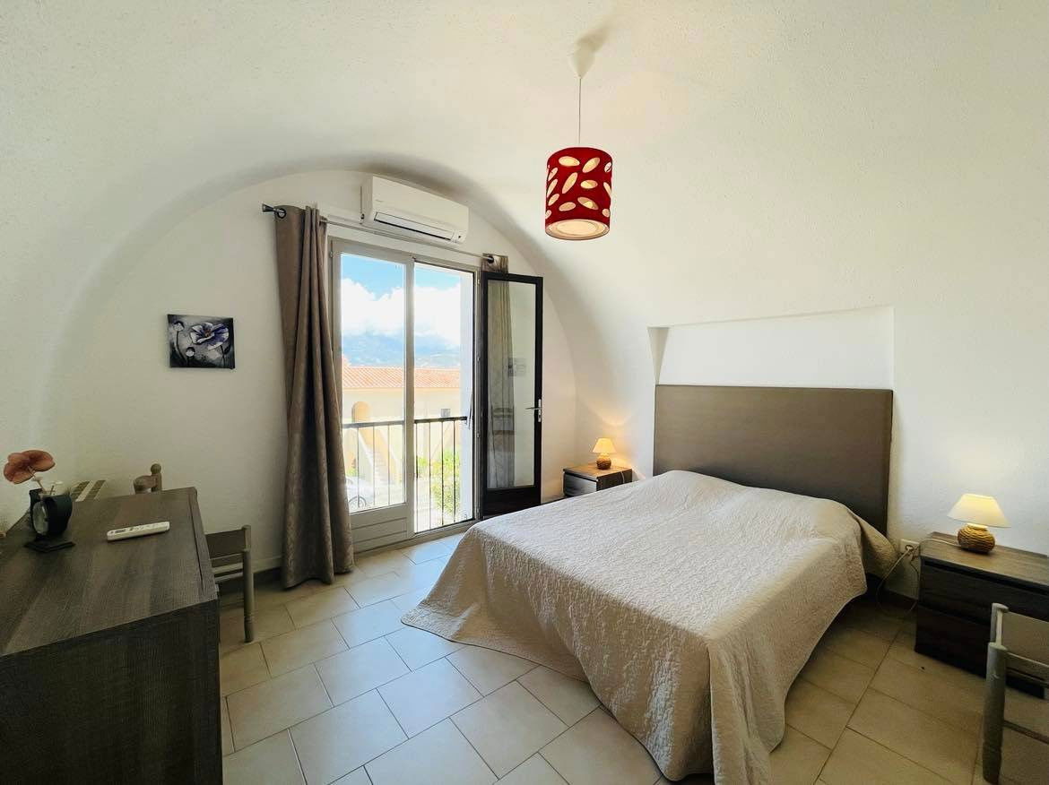 Calvi (2B) 4-room house - 120 m² - up to 6 people Located in a housing estate in town while benefiting from the calm of a residential area. The house is made up of an equipped kitchen, a living room with wifi access, a bedroom with a double bed and a shower room, a second bedroom with a double bed, a third bedroom with two simple, a bathroom, two separate toilets. The advantage of this house: it has two pretty terraces. Close to shops, the beach and tourist attractions. Cleaning, bed linen and towels are included in the price.