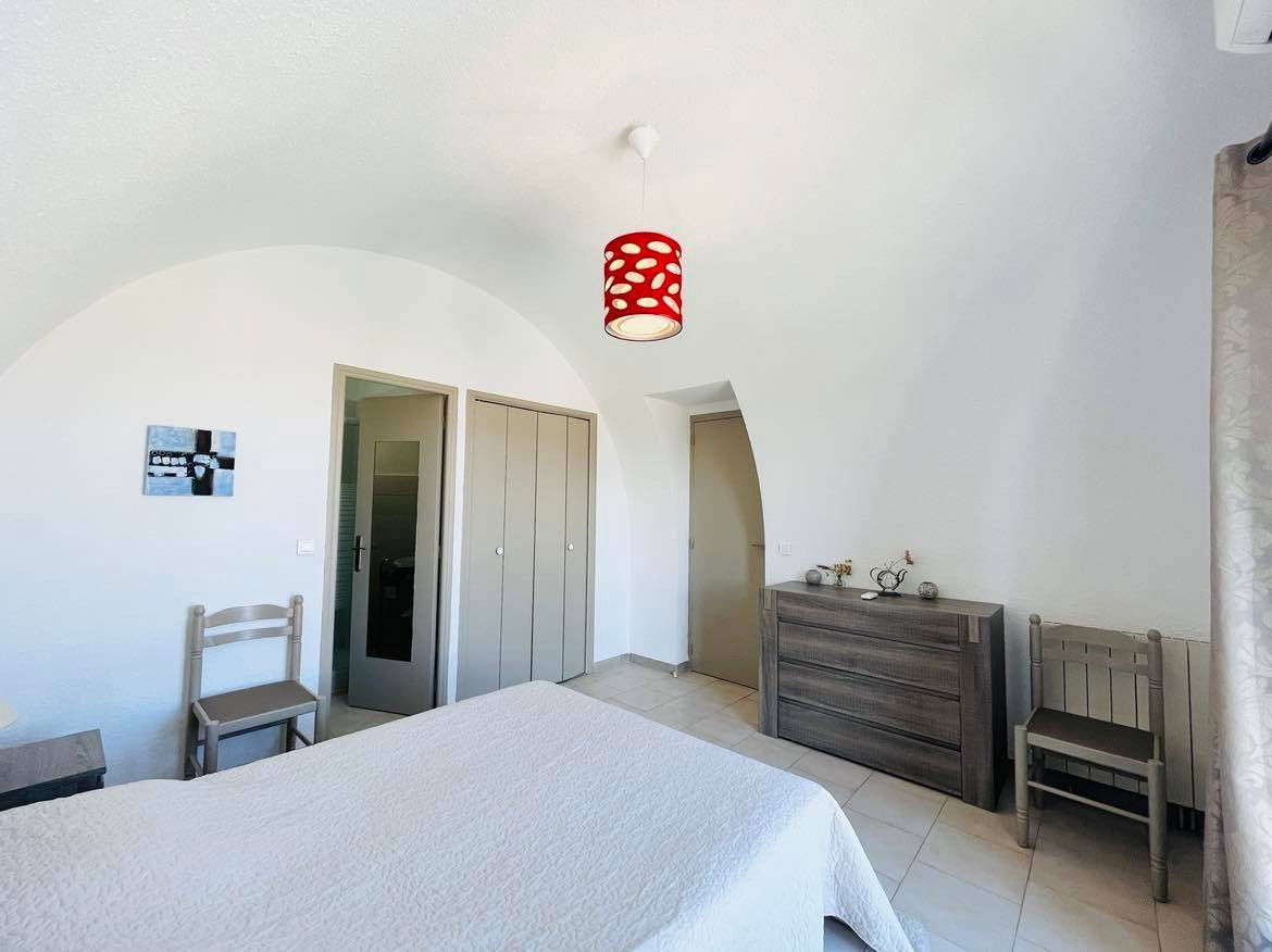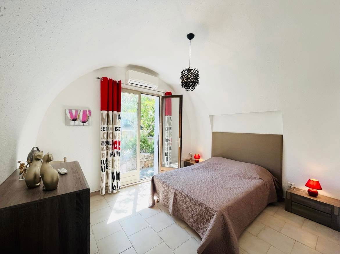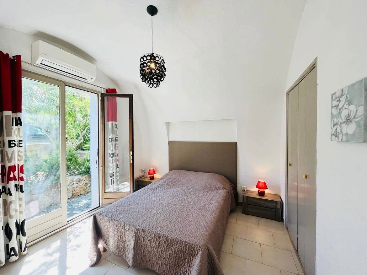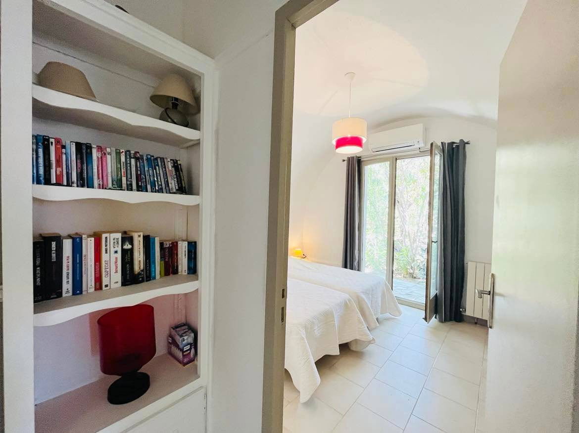 Calvi (2B) 4-room house - 120 m² - up to 6 people Located in a housing estate in town while benefiting from the calm of a residential area. The house is made up of an equipped kitchen, a living room with wifi access, a bedroom with a double bed and a shower room, a second bedroom with a double bed, a third bedroom with two simple, a bathroom, two separate toilets. The advantage of this house: it has two pretty terraces. Close to shops, the beach and tourist attractions. Cleaning, bed linen and towels are included in the price.