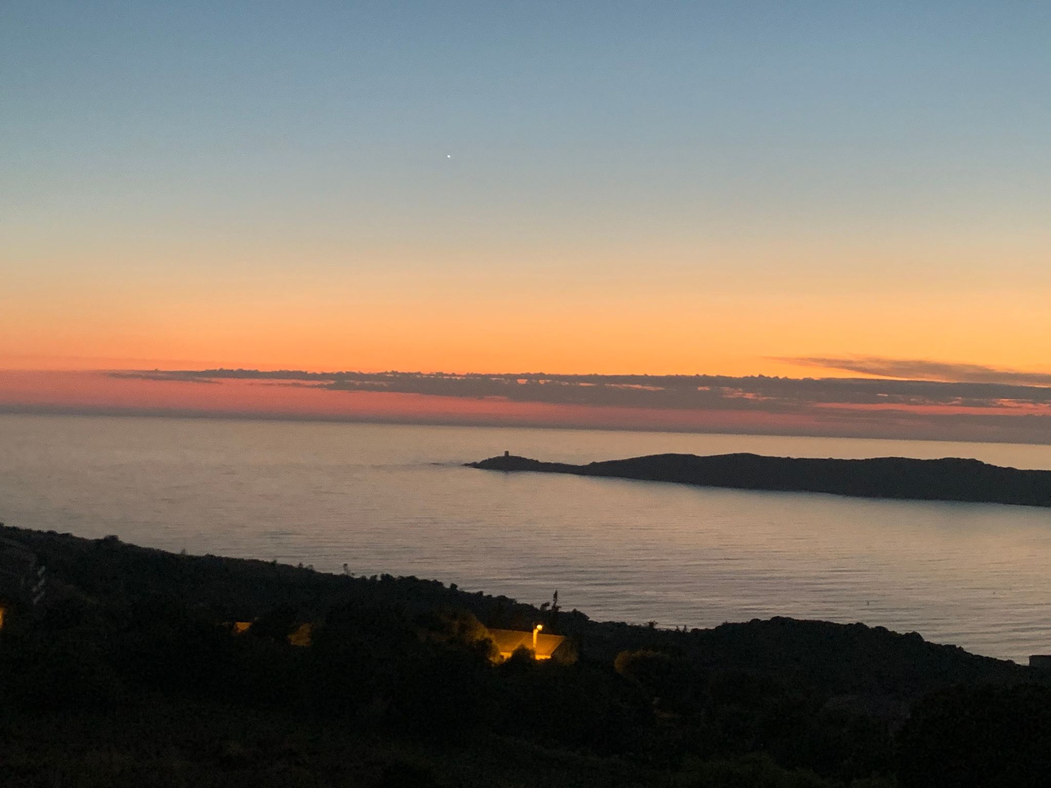 Facing the Umignia tower, with a view of one of the most beautiful sunsets in Corsica,