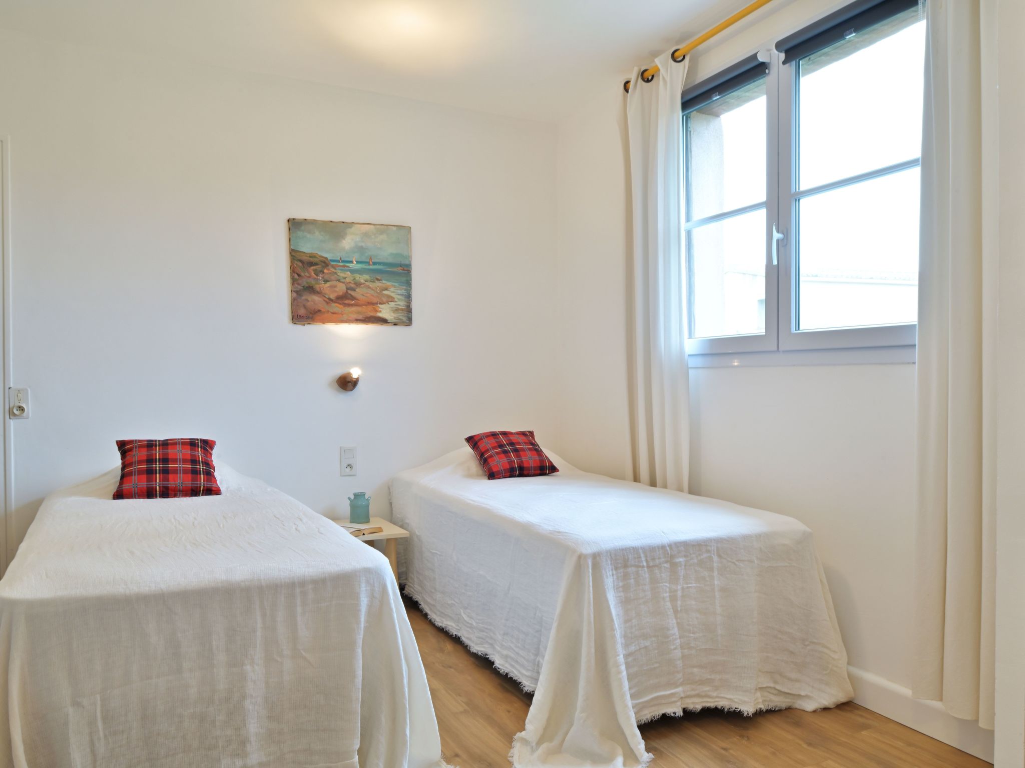 The interior of the house has been designed with your comfort and well-being in mind. It has a pleasant sitting area opening onto a fully equipped kitchen with four gas rings, electric oven, filter coffee maker, dishwasher and electric kettle. The accommodation comprises two bedrooms, separated by the WC and fitted with wardrobes, each accommodating a double bed (160x190) and two single beds (90*200), with the option of adding a cot on request. Two bathrooms with walk-in showers complete this functional, welcoming interior, where air conditioning ensures optimum comfort.