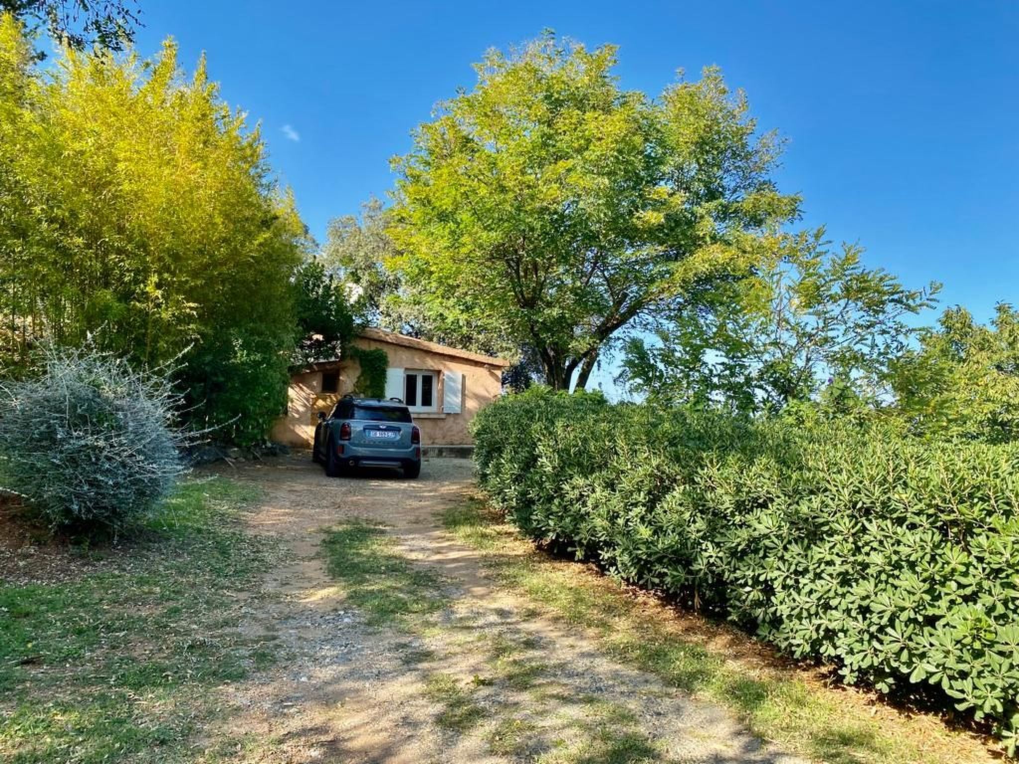 In a 15 hectare property, 2 hectares of garden, trees and orchards. Not fenced. Private parking in front of the house.