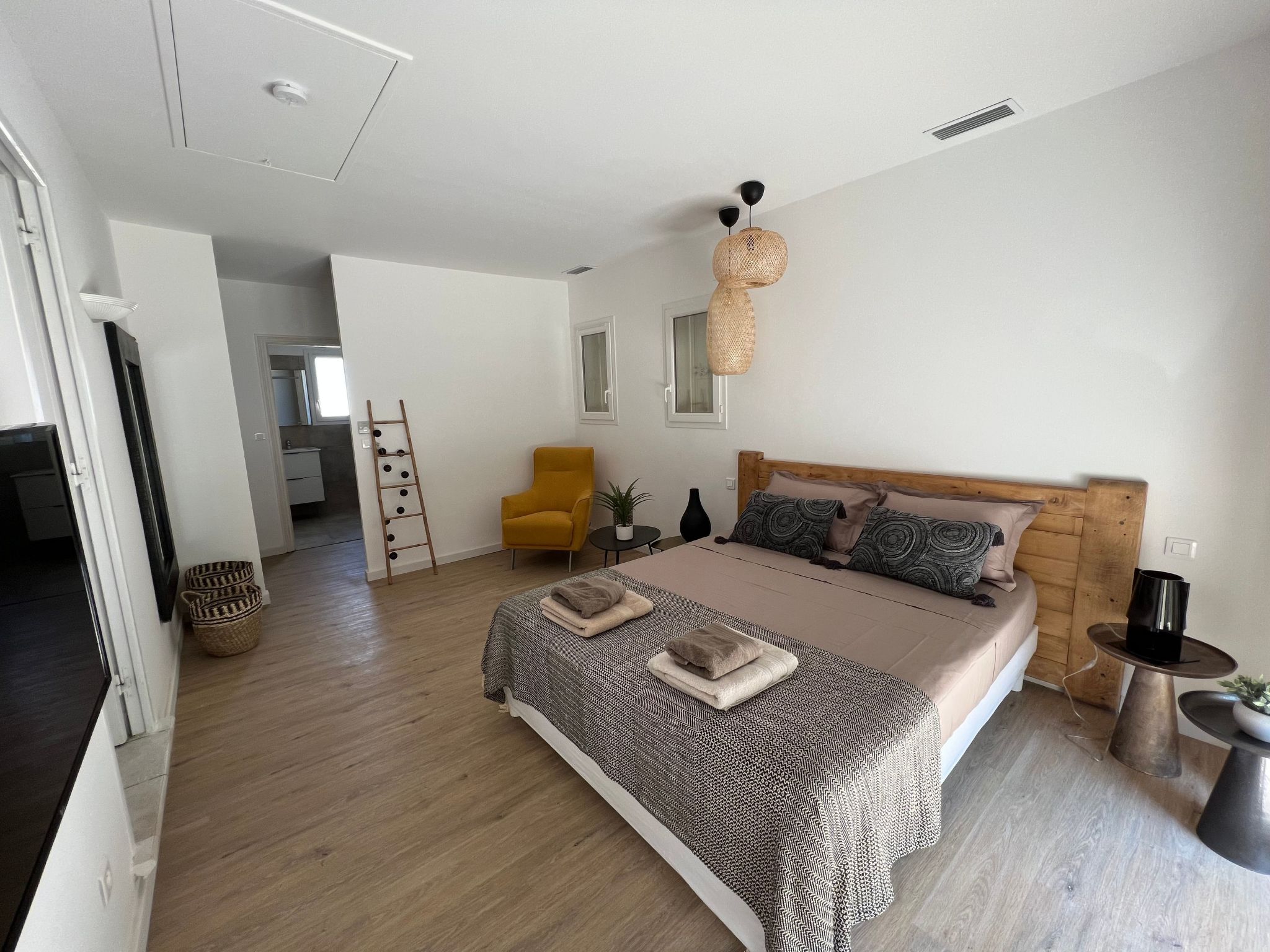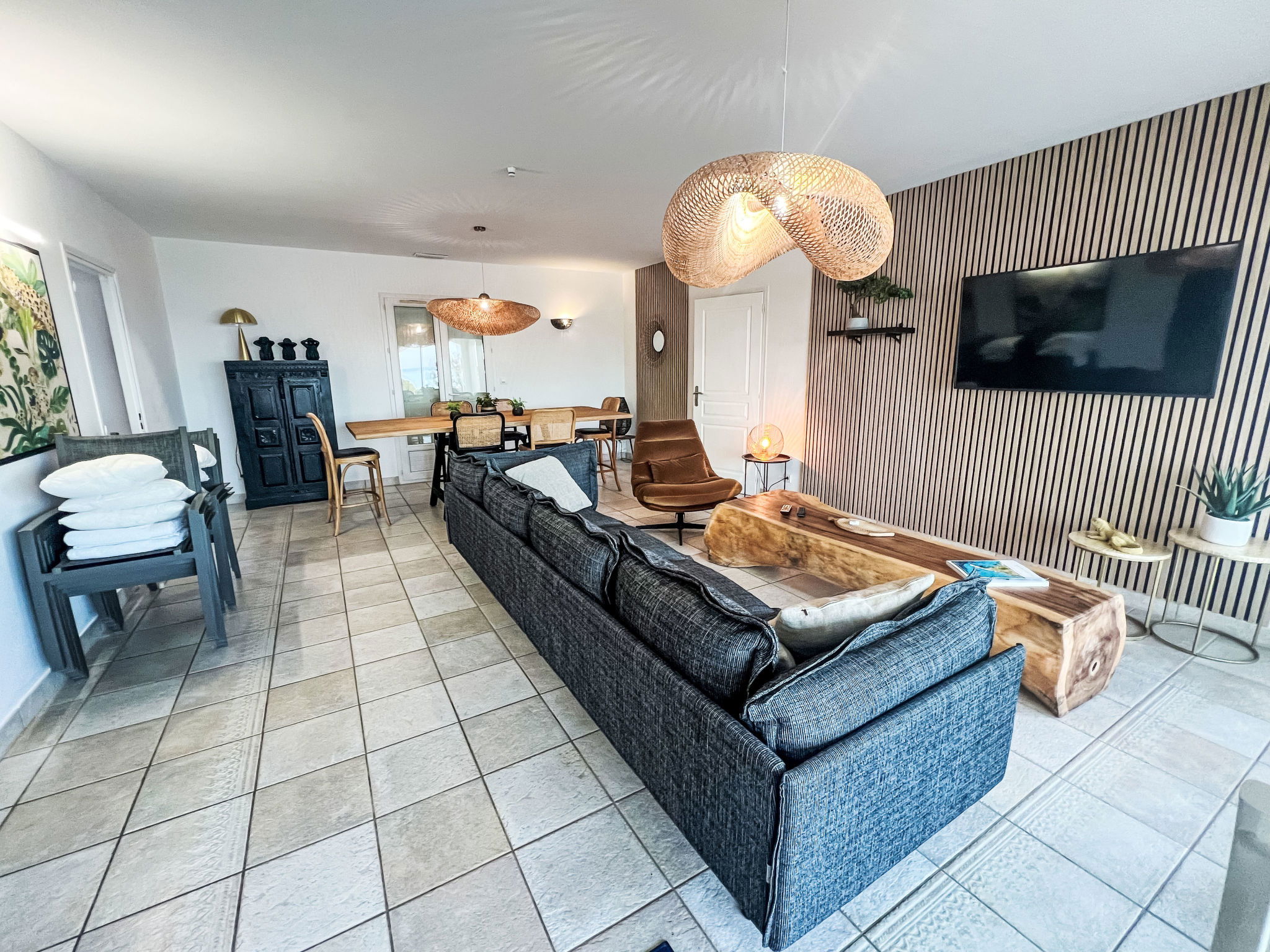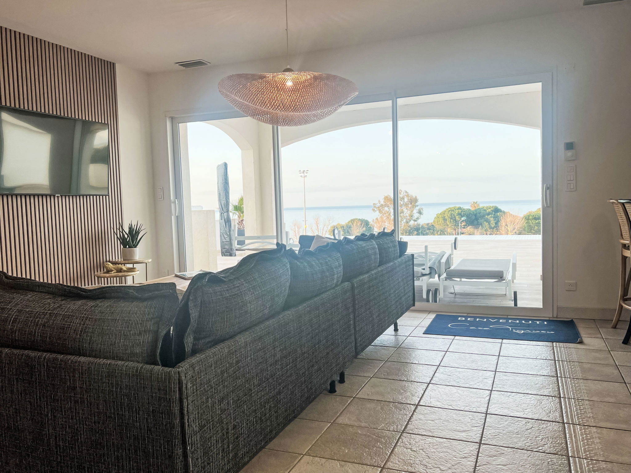 The villa nestles in a privileged setting, just 400 metres from the sea and pet-friendly beaches. Everything you could possibly need is close by, with a bakery and mini-market just a short walk away, the town centre just 600 metres away and watersports opportunities 2 km away. Whether you want to explore the area, enjoy the local cuisine or simply relax on the beach, everything is within easy reach.