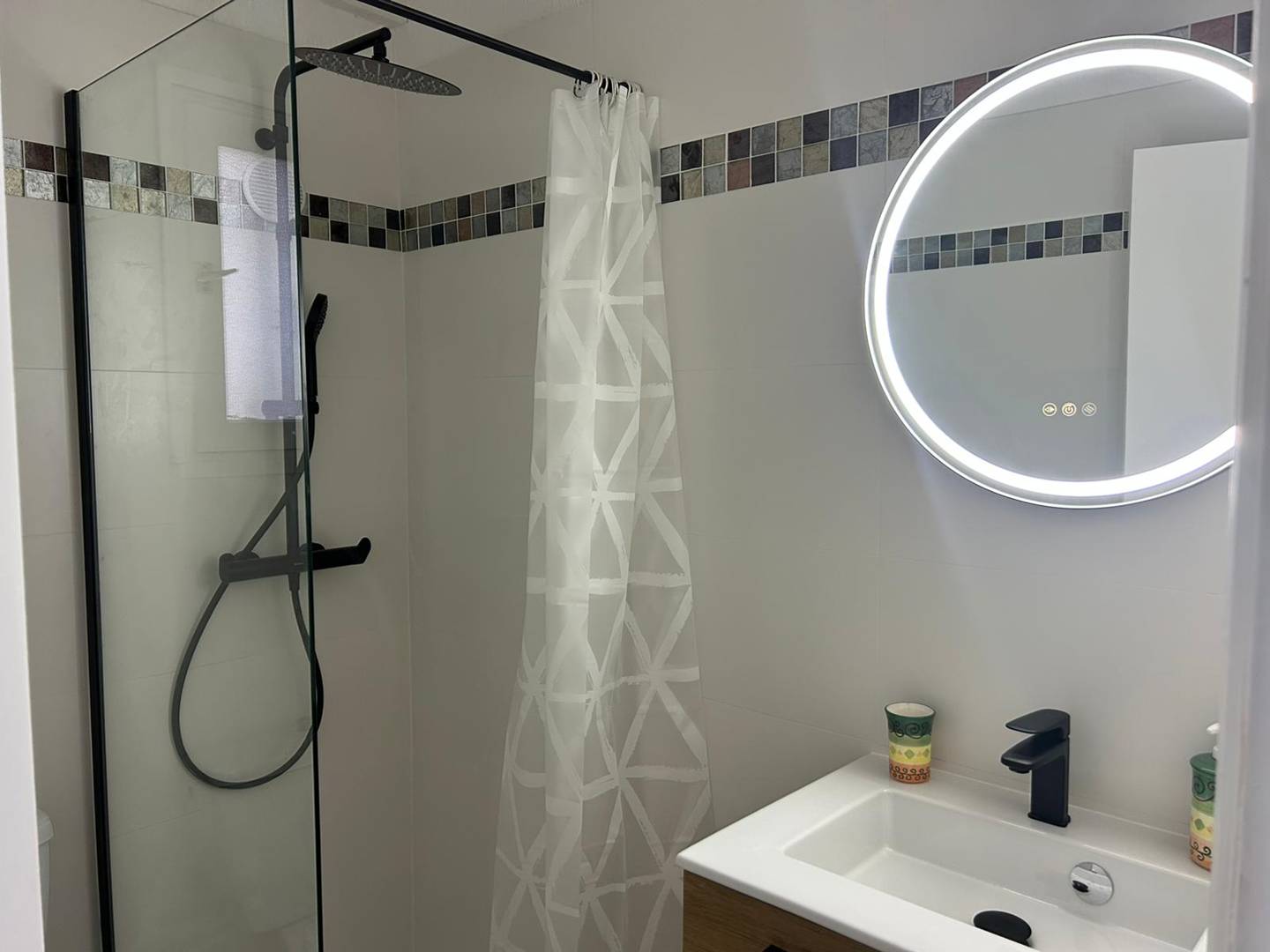 Bathroom: shower, washbasin, WC.