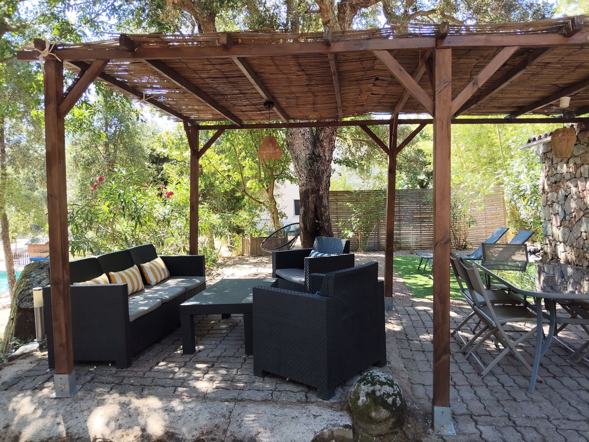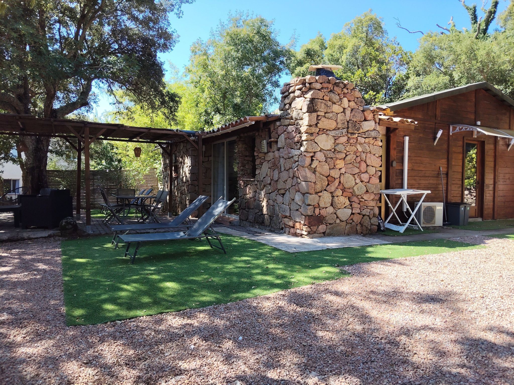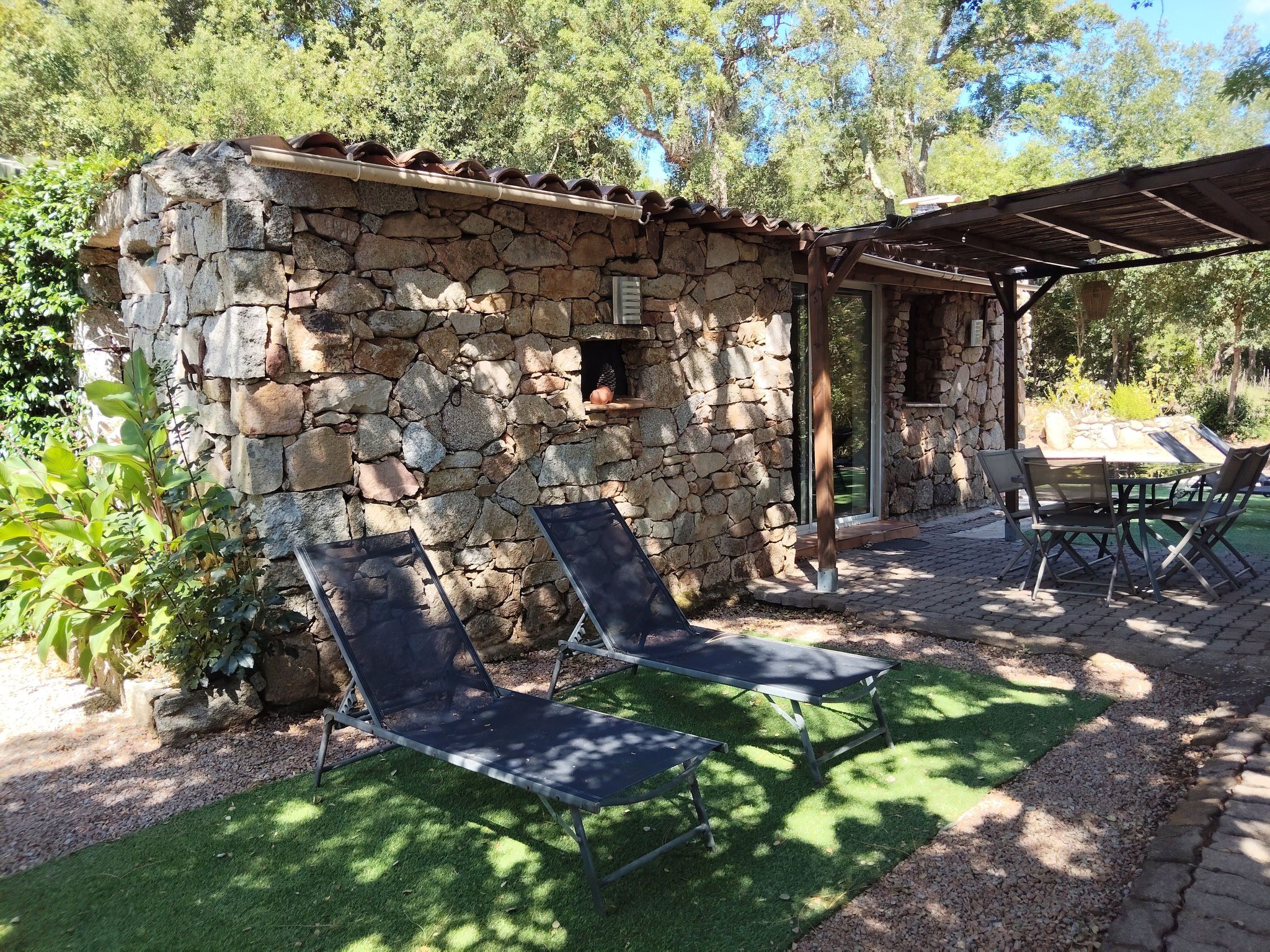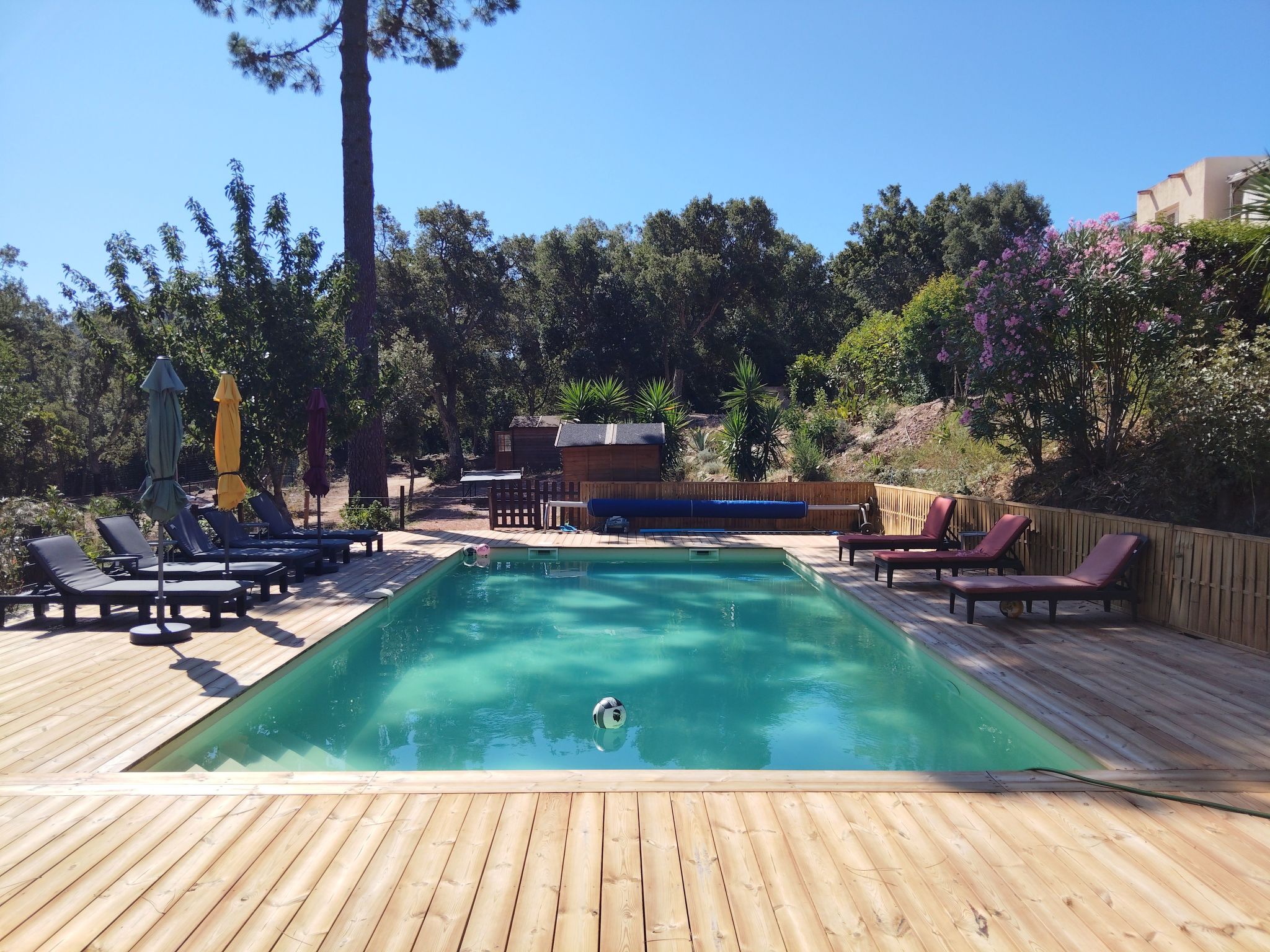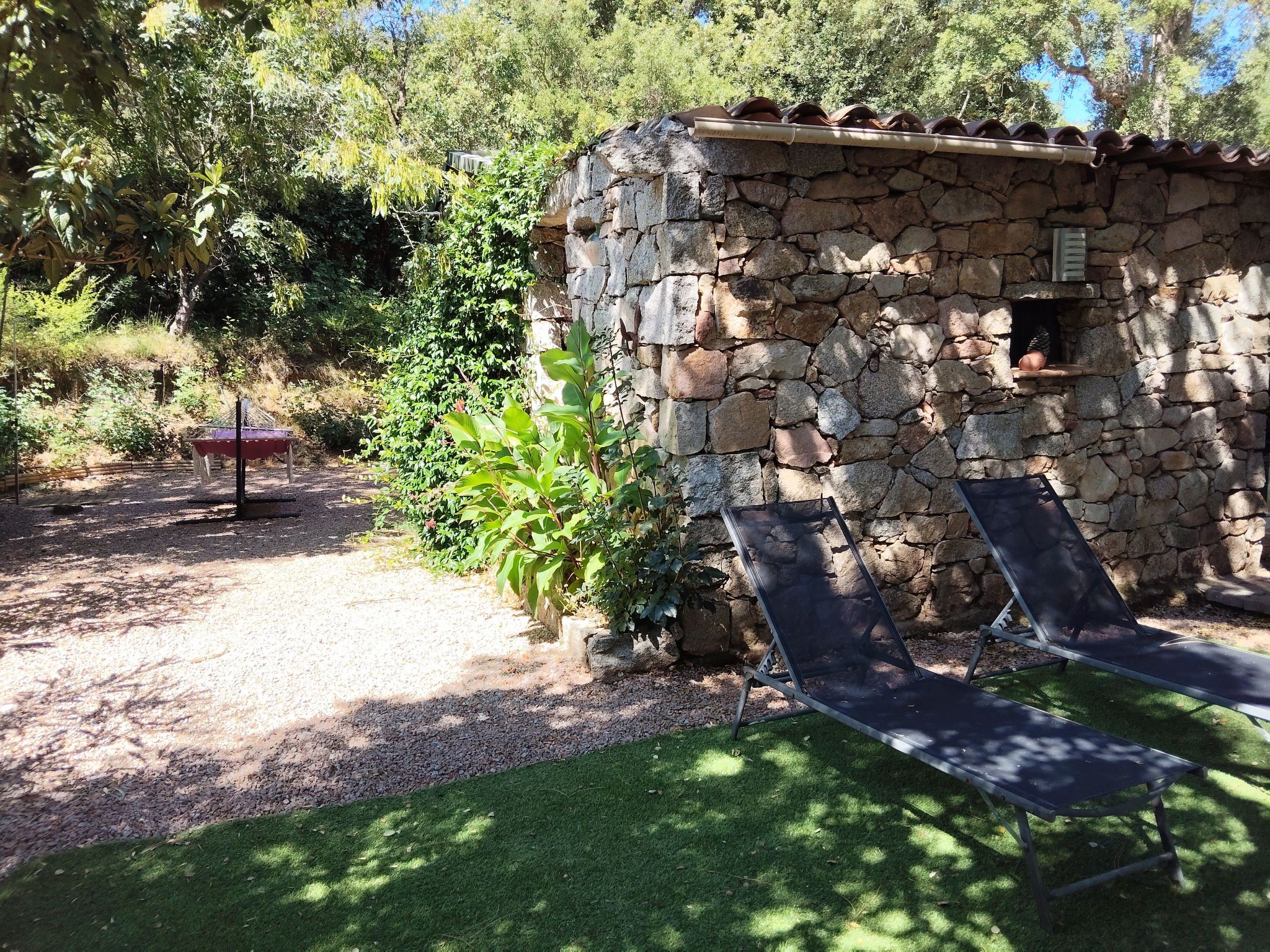 Chalet in the heart of the maquis 65 m² on 2000 m² of land Shared heated pool 5 x 10 m, view of the Ortu mountains at the foot of the famous GR20. The beaches are 10 minutes away and the river 5 minutes by car.