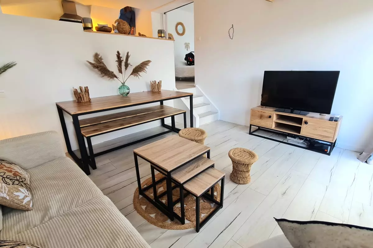 This air-conditioned and well-equipped house, spread over two levels, offers: