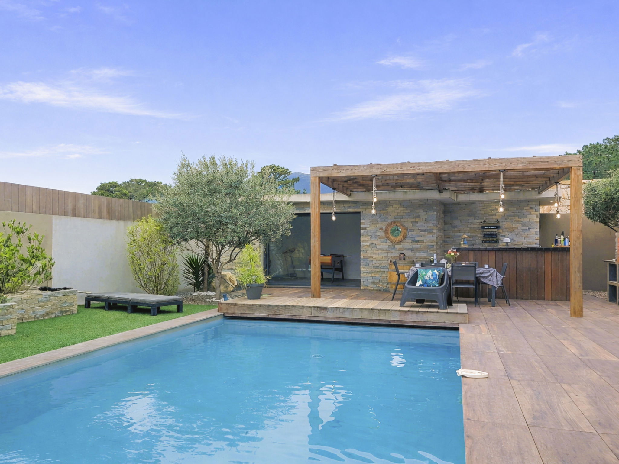 "Villa les lieges", 5-room villa 150 m2. Comfortable and modern furnishings: living/dining room with TV (flat screen), air conditioning. Exit to the terrace. 1 room with Dressing room with 1 french bed (160 cm, length 190 cm), shower/WC and TV (flat screen). 1 room with 1 french bed (140 cm, length 190 cm), shower/WC and TV (flat screen). 1 room with 1 french bed (140 cm, length 190 cm), shower/WC and TV (flat screen). 1 room with 1 french bed (160 cm, length 190 cm), bath/WC and TV (flat screen). Exit to the terrace. Open kitchen (oven, dishwasher, 1 induction hot plates, 3 gas rings, toaster, kettle, microwave, electric coffee machine) with dining table. Exit to the terrace. Sep. WC. Electric heating, air-conditioning. Large terrace 100 m2. Terrace furniture, barbecue, deck chairs (4). Facilities: washing machine. Internet (WiFi, free). Reserved parking (3 cars). Please note: non-smokers only. Smoke alarm. Offer by a private individual according to Art. 155, IV of CGI.