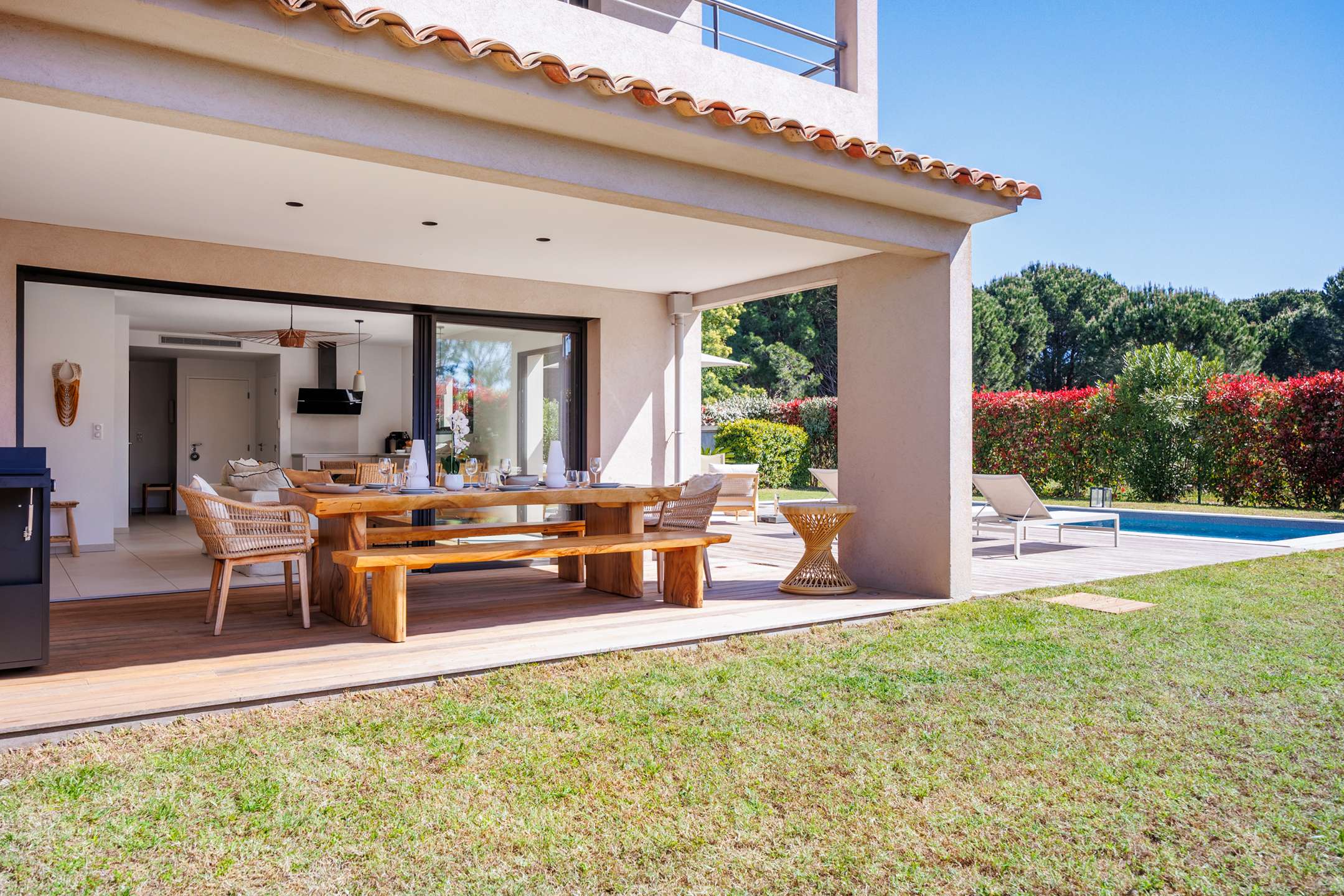 This elegantly decorated villa in the Cala Rossa Bay residence, 700m from the beach, is a little corner of paradise in the extreme south of Corsica.