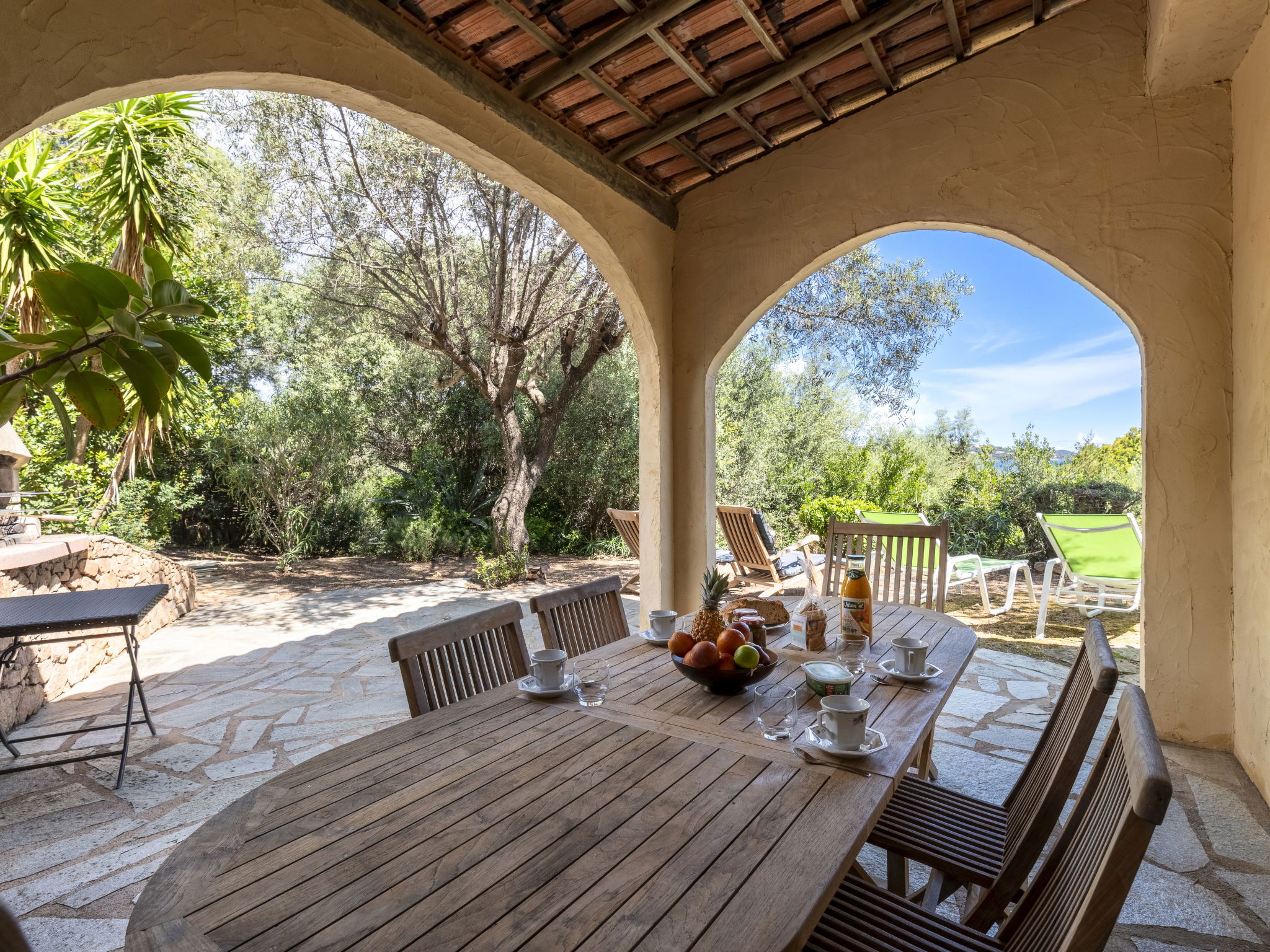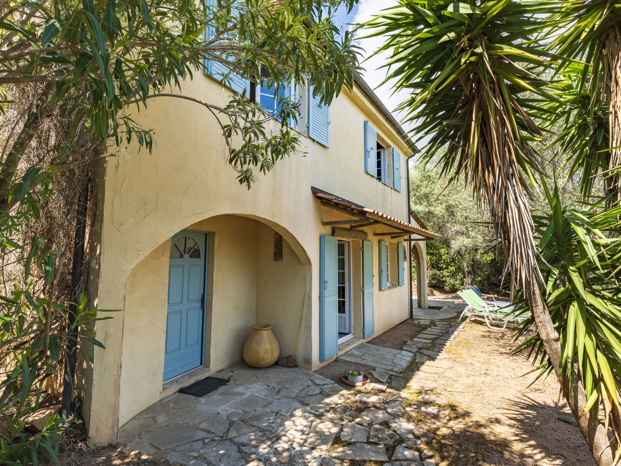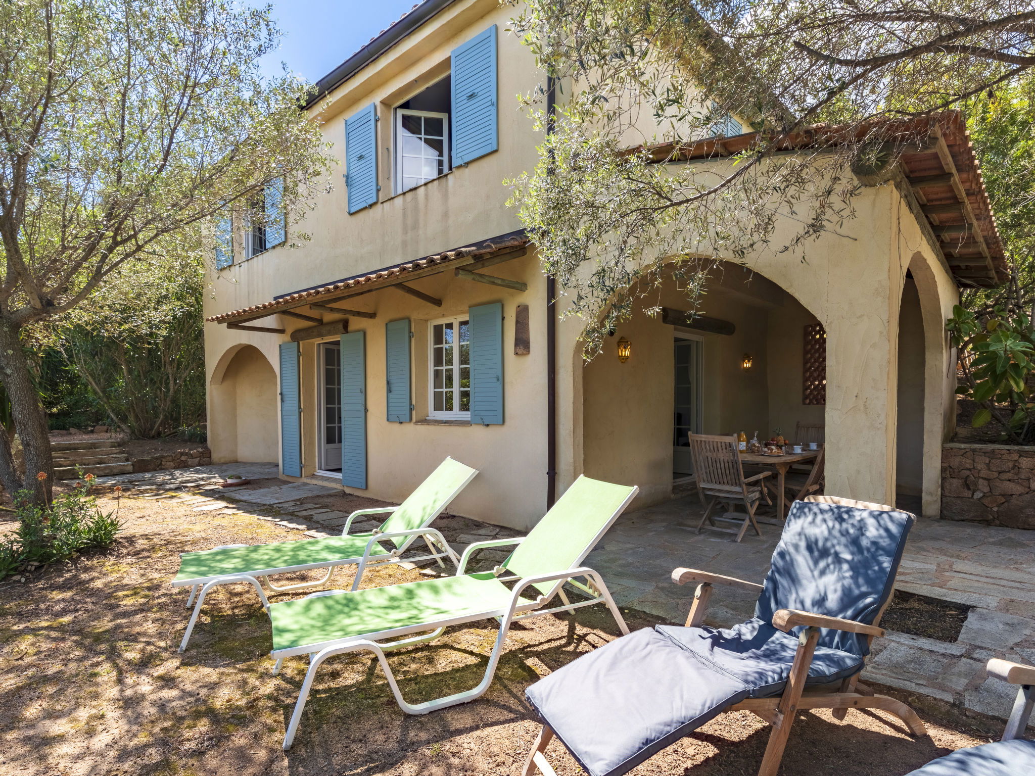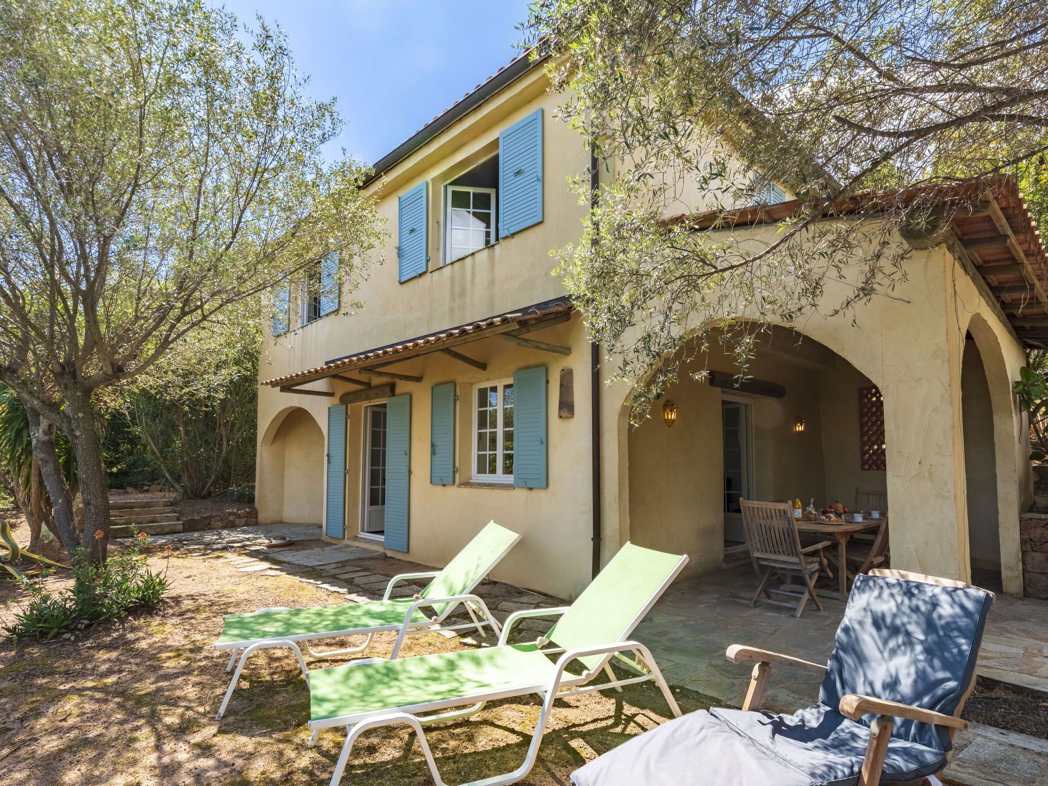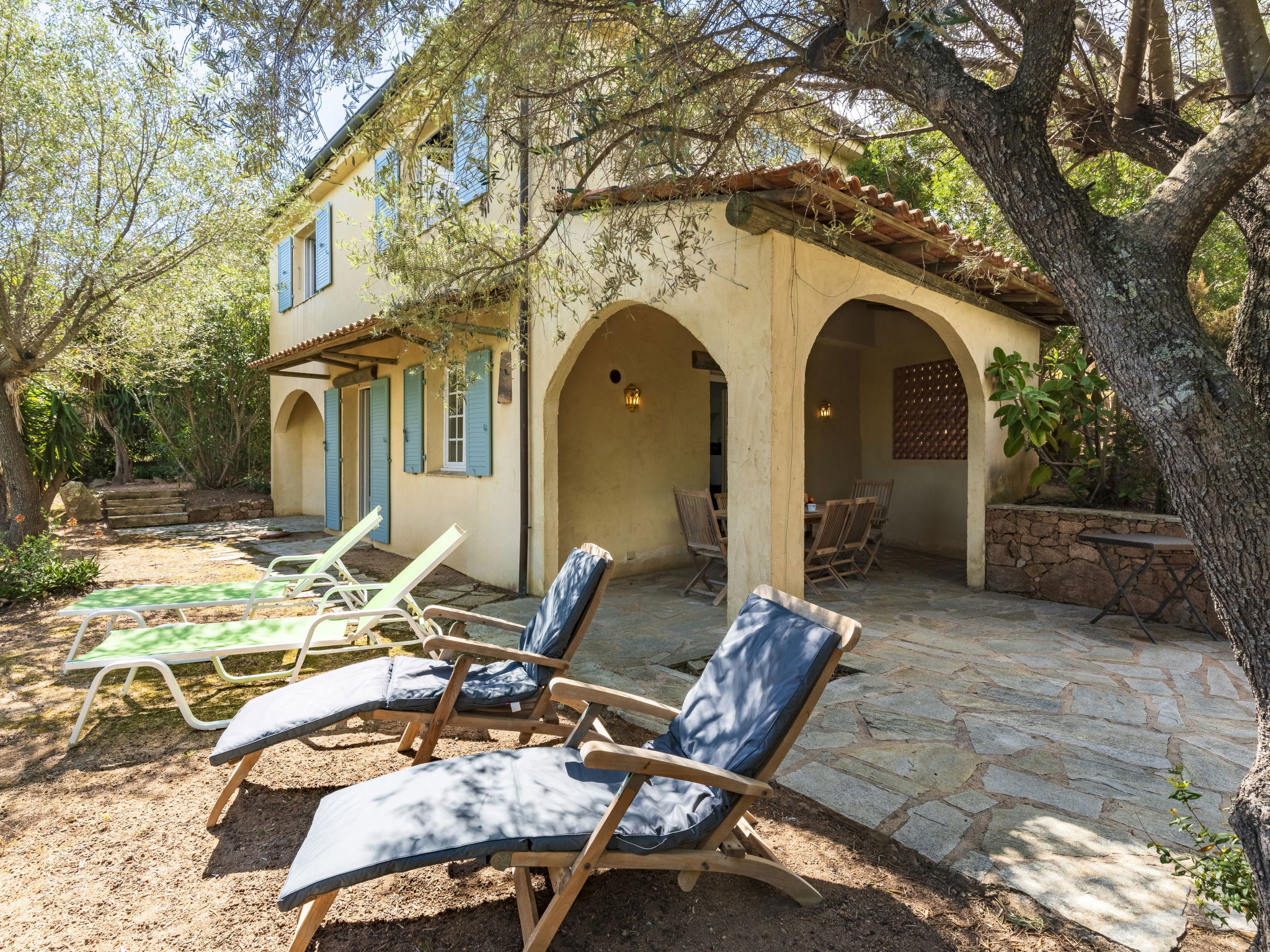 Beautiful, comfortable villa "Villa Pavellone", surrounded by trees. On the outskirts, 8 km from the centre of Porto Vecchio, 100 m from the sea, 400 m from the beach, direct access to the beach, in the countryside. For shared use: property 1'000 m2. Private: outdoor shower, parking (for 3 cars) on the premises. Shop 8 km, grocery 7 km, supermarket 12 km, restaurant 3 km, bakery 8 km, bus stop 8.5 km, sandy beach "Palombaggia" 6 km, rocky beach 100 m. Sports harbour 9.5 km, marina 9 km, golf course (9 hole) 12 km, riding stable 7 km. Nearby attractions: Santa Giulia 12 km, Figari 25 km, Bonifacio 32 km, Solenzara 48 km. Well-known lakes can easily be reached: Lac de l'Ospedale 33 km. Hiking paths: Aiguilles de Bavella 60 km, Réserve Naturelle de Bonifacio. Please note: car recommended. Suitable for families. The owner lives on the same property.
