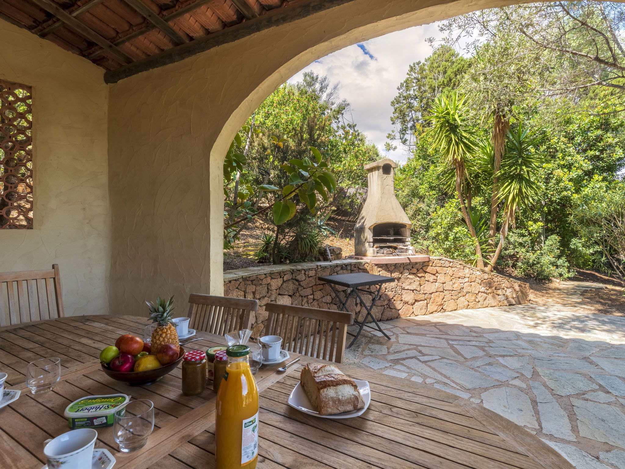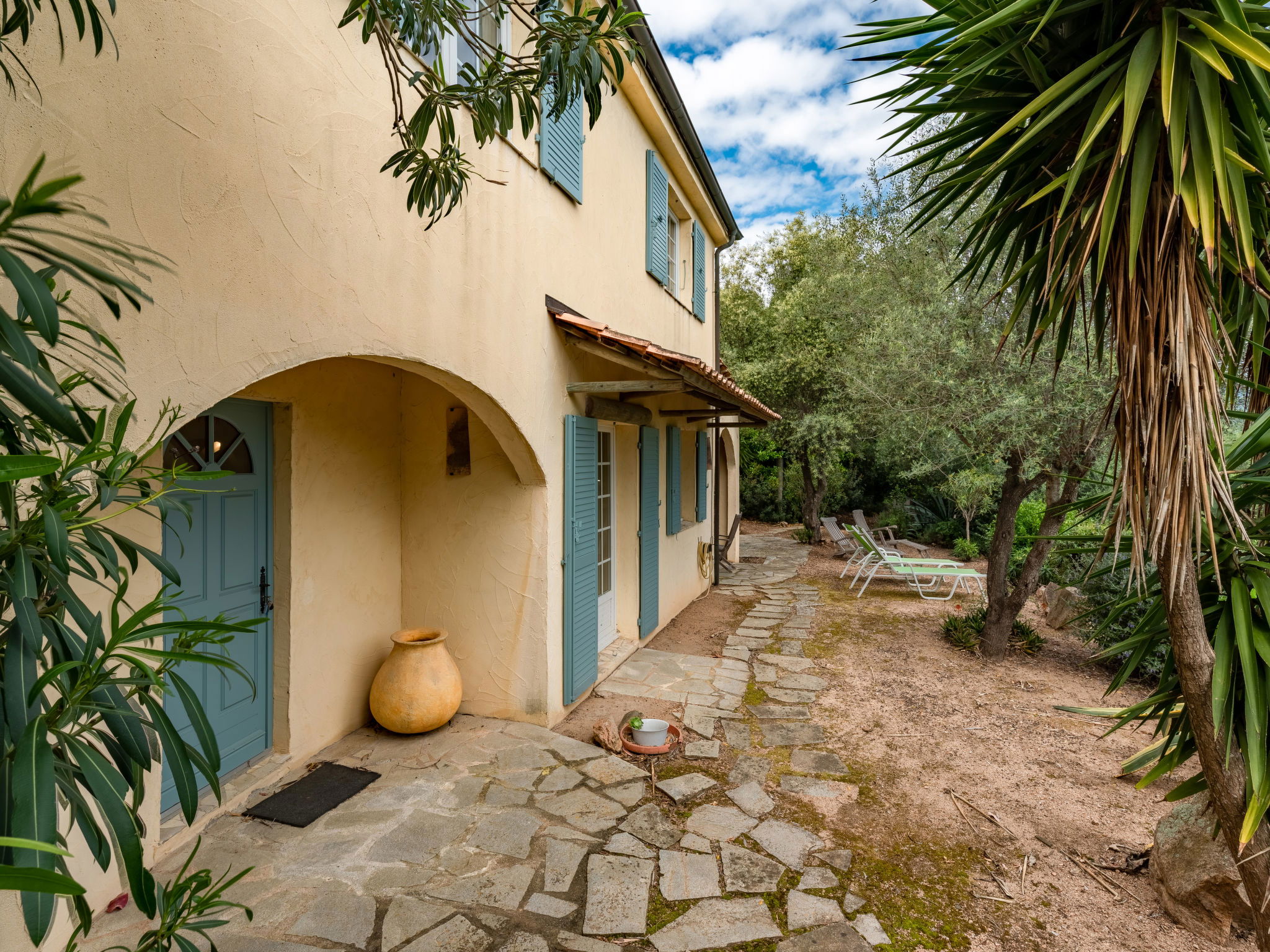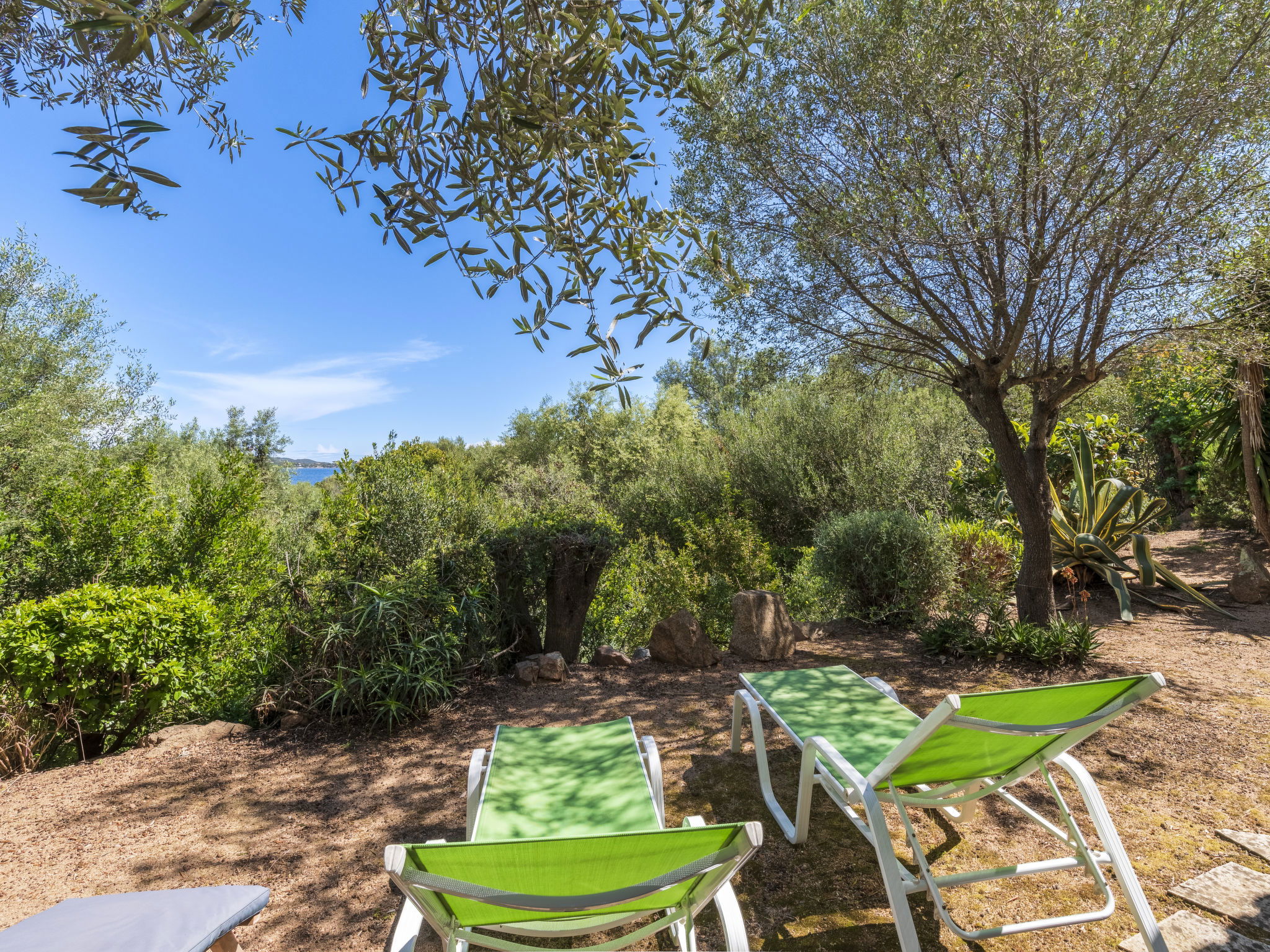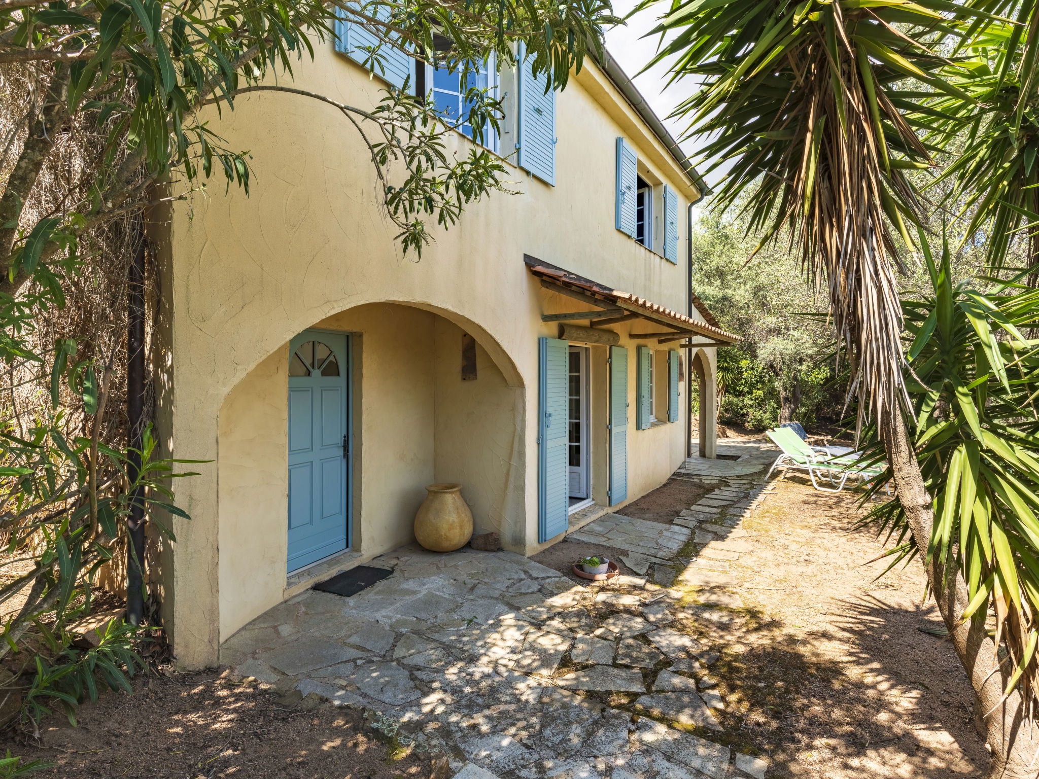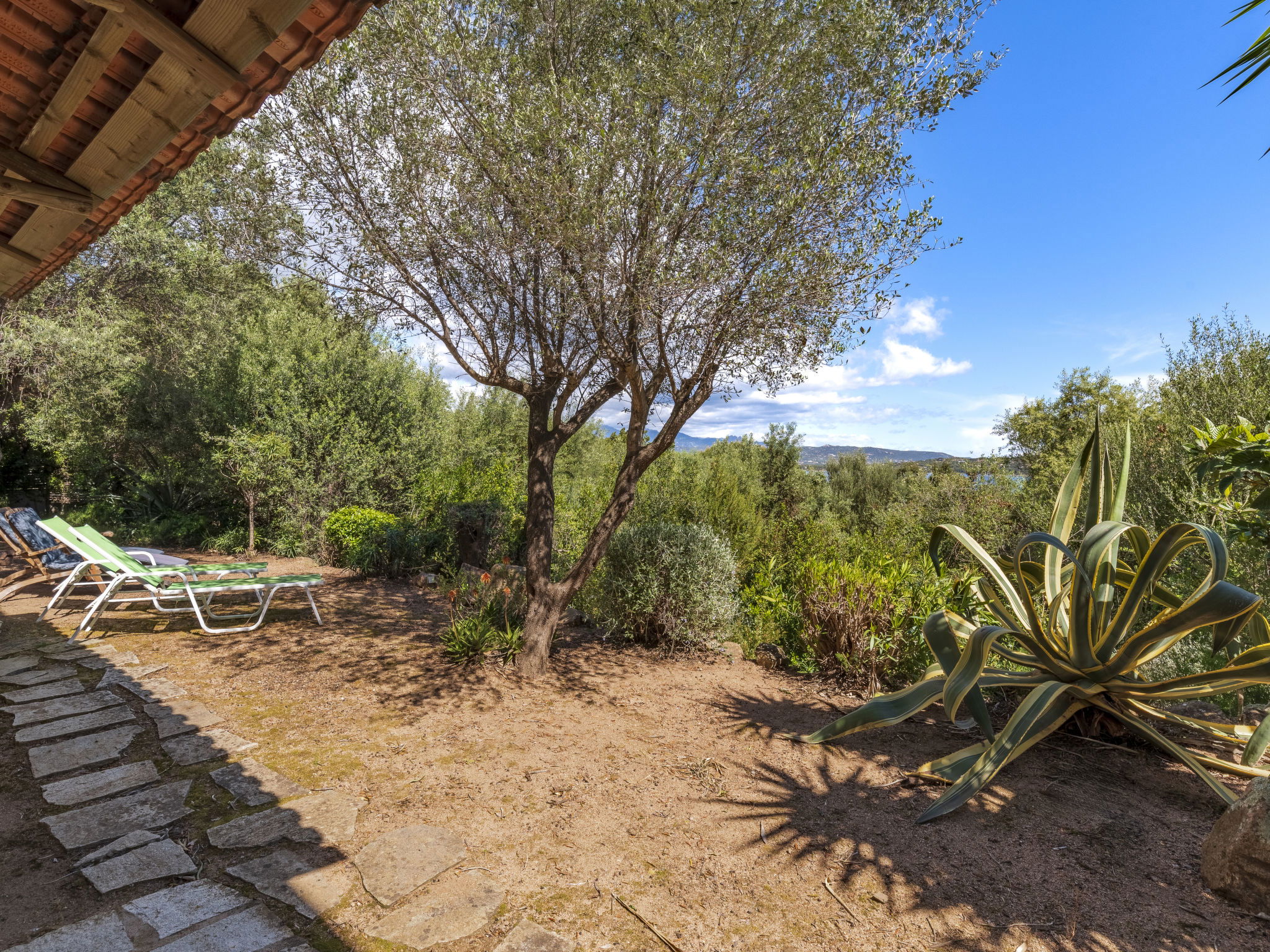 Beautiful, comfortable villa "Villa Pavellone", surrounded by trees. On the outskirts, 8 km from the centre of Porto Vecchio, 100 m from the sea, 400 m from the beach, direct access to the beach, in the countryside. For shared use: property 1'000 m2. Private: outdoor shower, parking (for 3 cars) on the premises. Shop 8 km, grocery 7 km, supermarket 12 km, restaurant 3 km, bakery 8 km, bus stop 8.5 km, sandy beach "Palombaggia" 6 km, rocky beach 100 m. Sports harbour 9.5 km, marina 9 km, golf course (9 hole) 12 km, riding stable 7 km. Nearby attractions: Santa Giulia 12 km, Figari 25 km, Bonifacio 32 km, Solenzara 48 km. Well-known lakes can easily be reached: Lac de l'Ospedale 33 km. Hiking paths: Aiguilles de Bavella 60 km, Réserve Naturelle de Bonifacio. Please note: car recommended. Suitable for families. The owner lives on the same property.