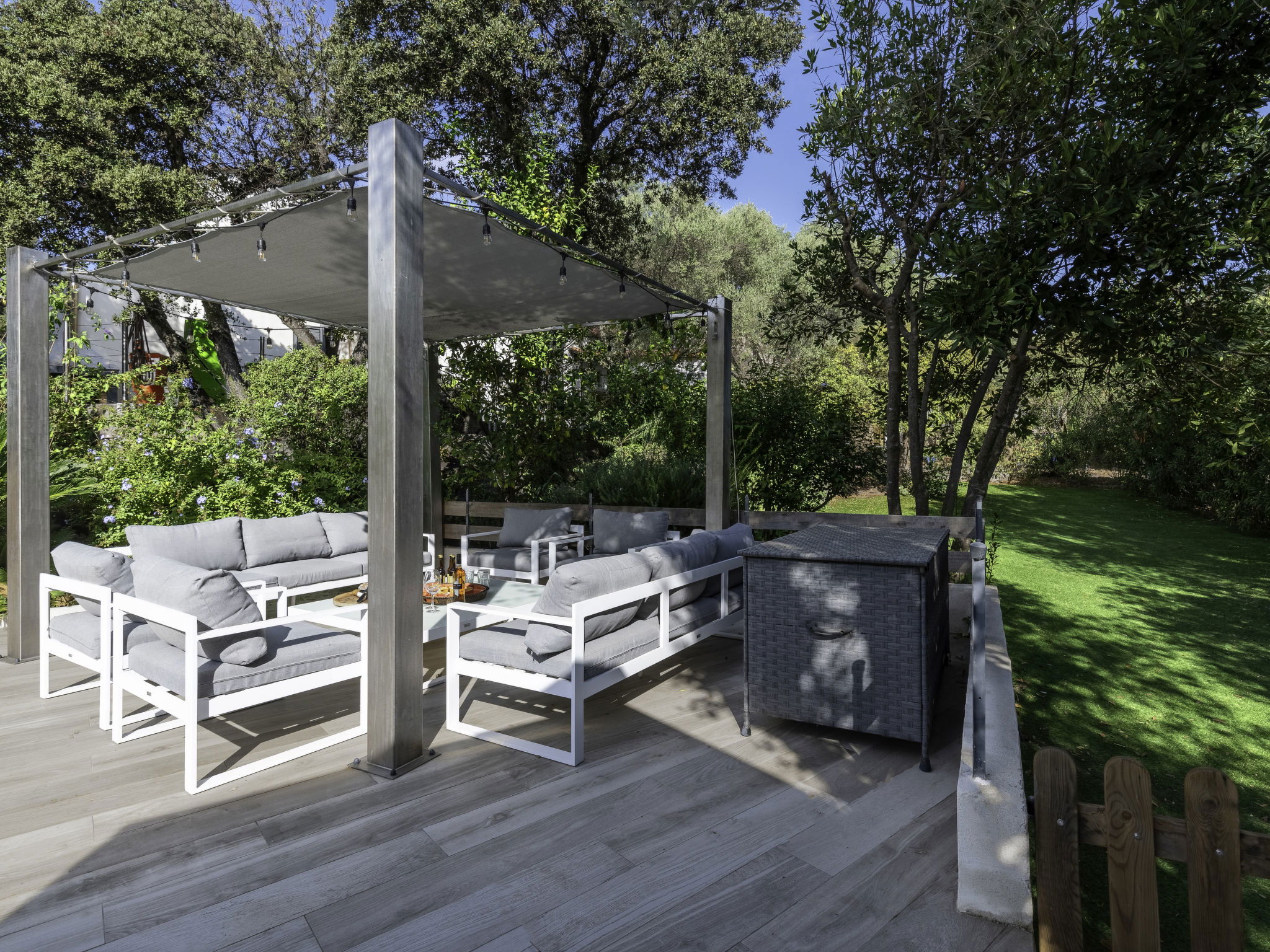 "Villa Romana", 6-room villa 200 m2 on 2 levels. Comfortable furnishings: living/dining room with dining table. Exit to the terrace. 2 rooms, each room with 1 french bed (160 cm, length 200 cm). Exit to the garden, to the terrace. 1 room with 1 french bed (160 cm, length 200 cm), bath/shower/WC. Kitchen (oven, dishwasher, 5 induction hot plates, toaster, kettle, microwave, electric coffee machine). Shower/WC. Electric heating, air-conditioning. Upper floor: 2 rooms, each room with 1 bed (90 cm, length 200 cm), 1 french bed (160 cm, length 200 cm). Shower/WC. Electric heating, air-conditioning. Terrace furniture, barbecue, deck chairs (12), sitting area. View of the swimming pool, the garden and the countryside. Facilities: washing machine, dryer, iron, hair dryer. Internet (WiFi). Reserved parking, garage on the property. Please note: smoke alarm. Offer by a private individual according to Art. 155, IV of CGI.