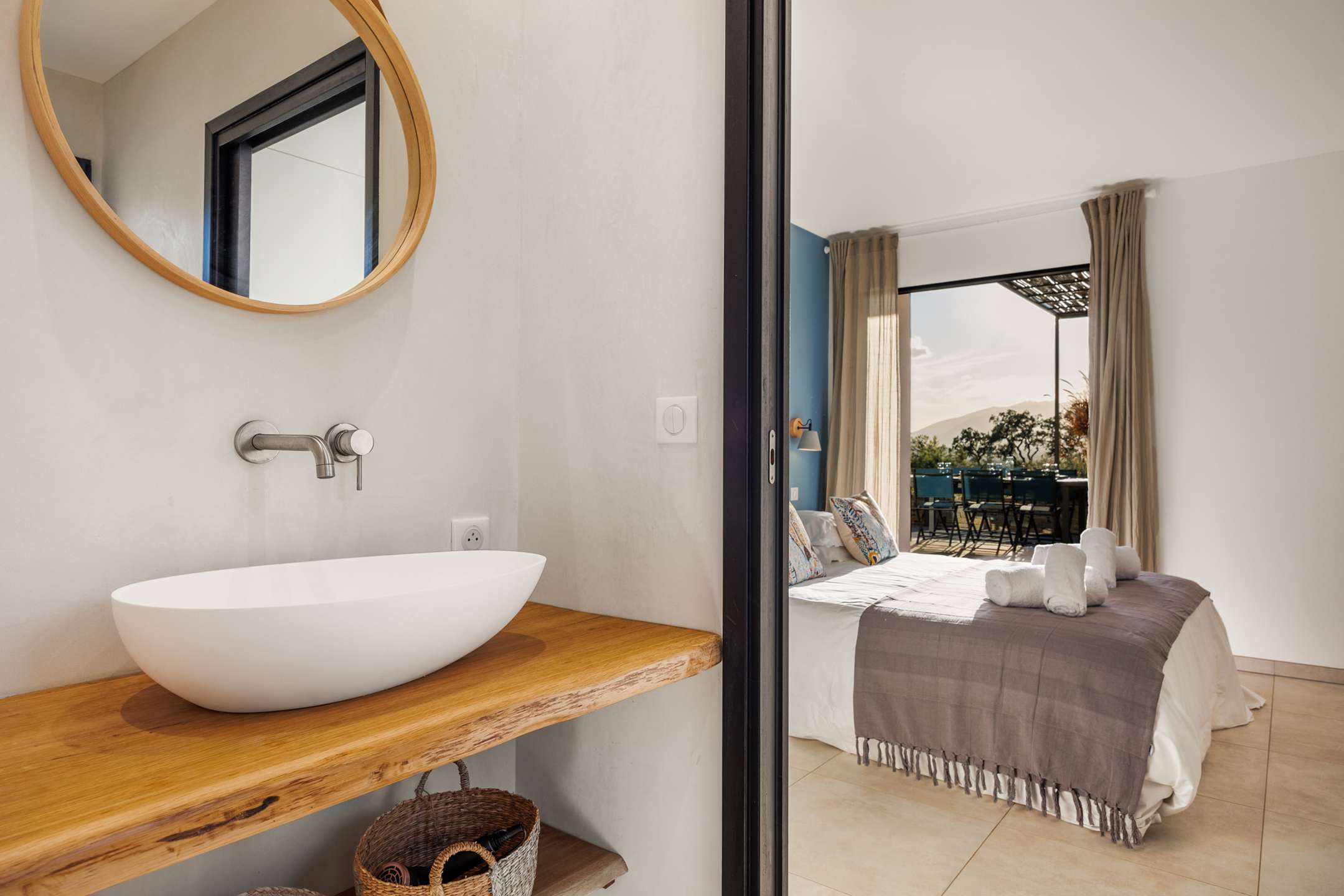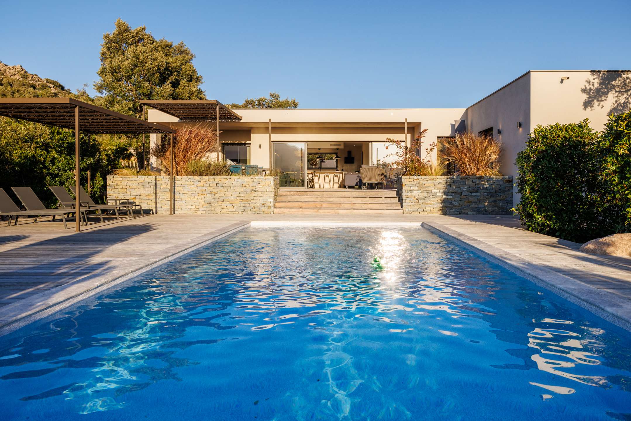Outside, surrounded by lush and typical vegetation, the private swimming pool invites you to relax under the Mediterranean sun.