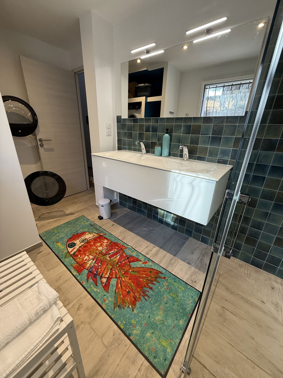 Instead, the decision was made to offer an optionally rentable motorboat (200 PS, with sunbathing area, only with a valid French boat licence, weekly, price on request). This solution enables unforgettable natuMy home in on the water without burdening local infrastructure with additional water or energy consumption. The boat offers the opportunity to discover the beauty of the coast responsibly - a conscious compensation for the renunciation of water-intensive leisure activities on land.