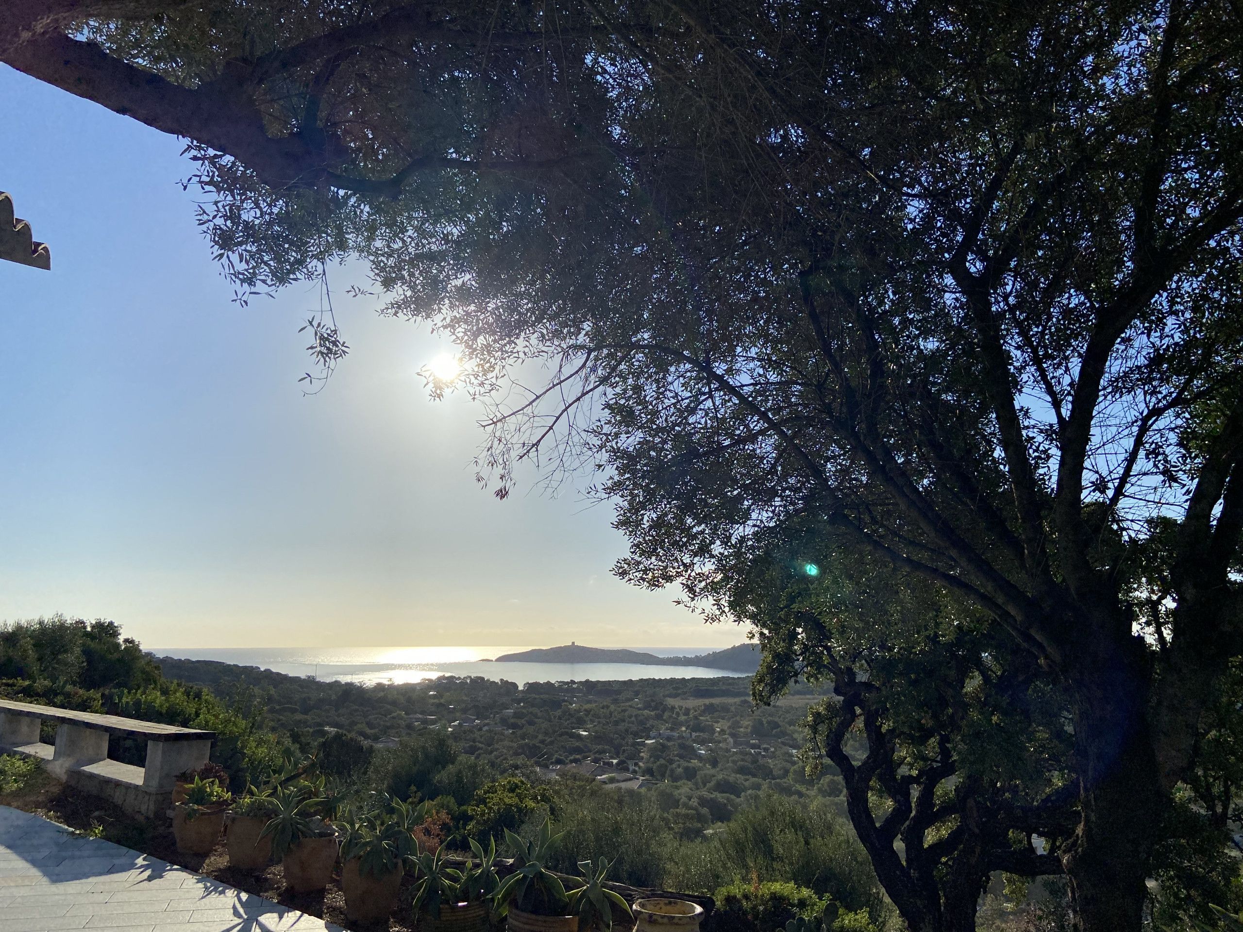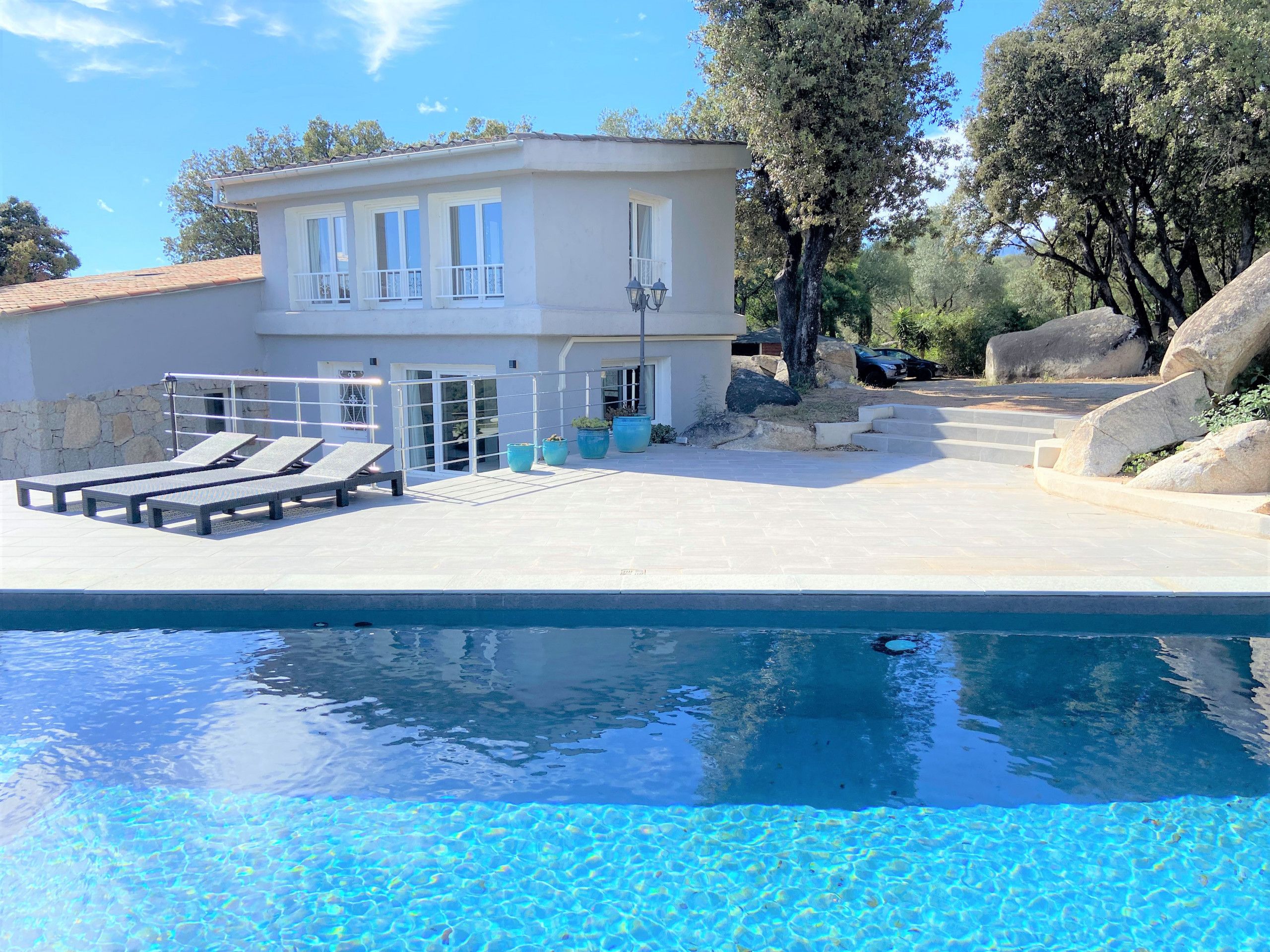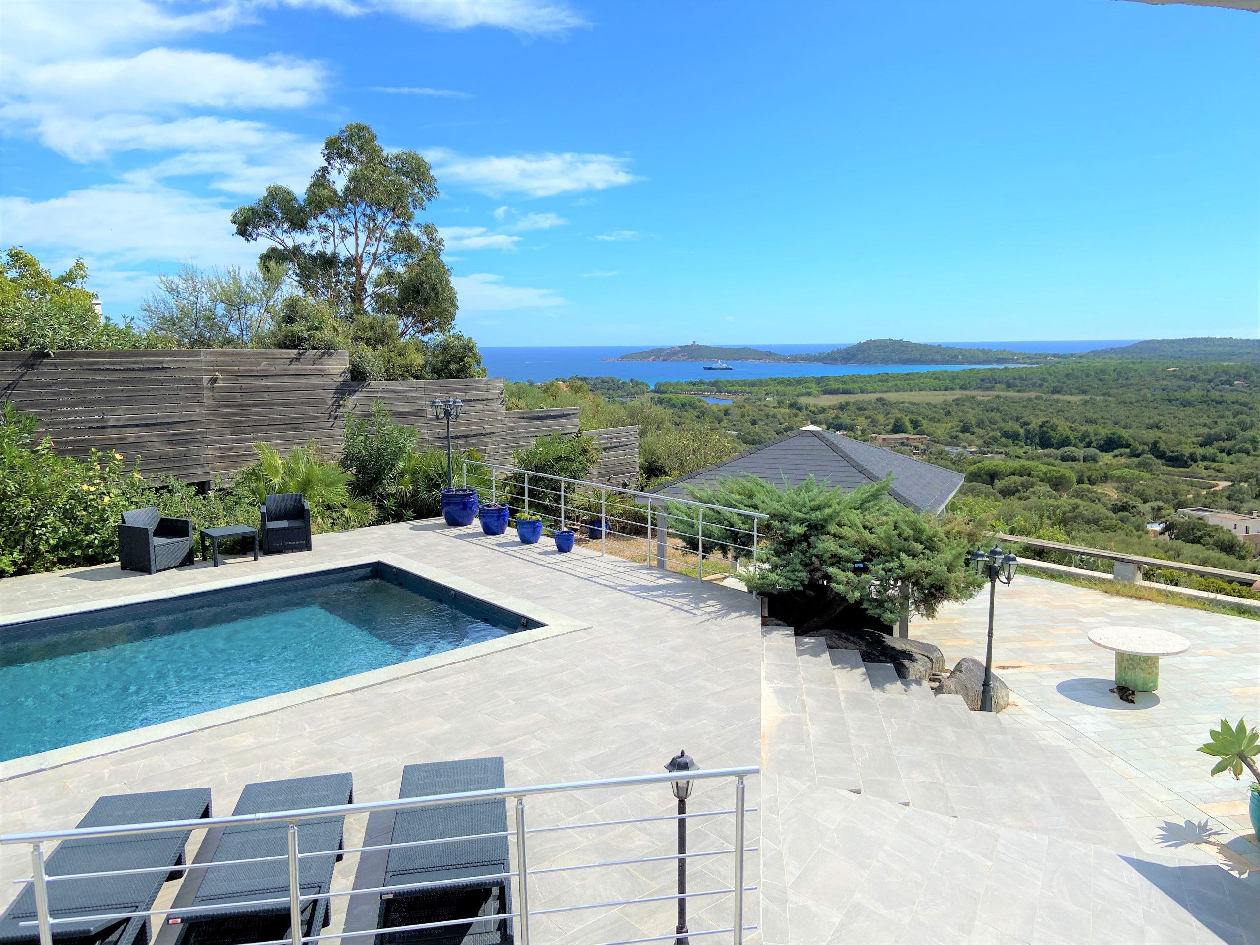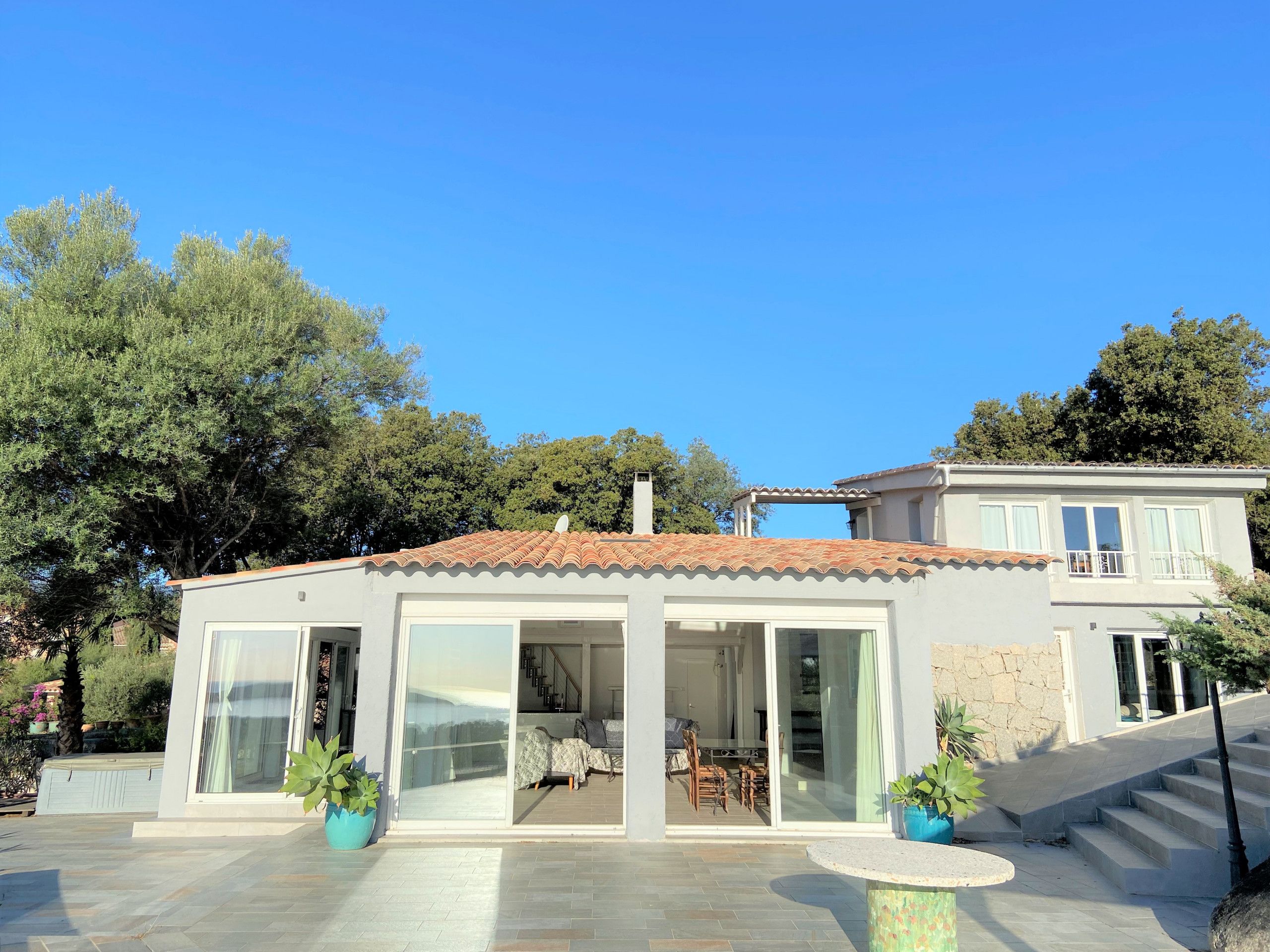 Charming villa with magnificent views of the sea and the Pinarello peninsula in the heart of the maquis, between granite rocks and olive trees.