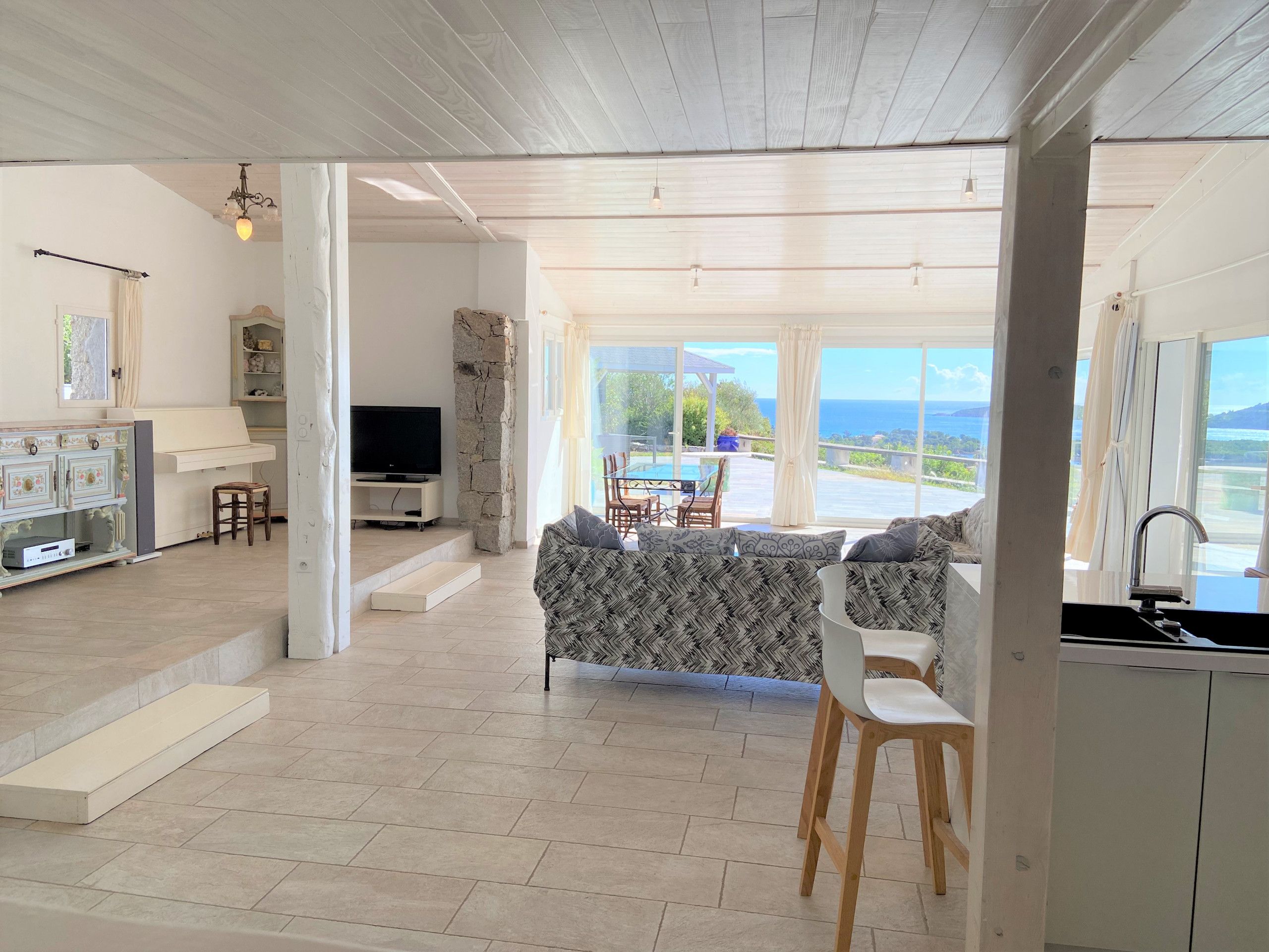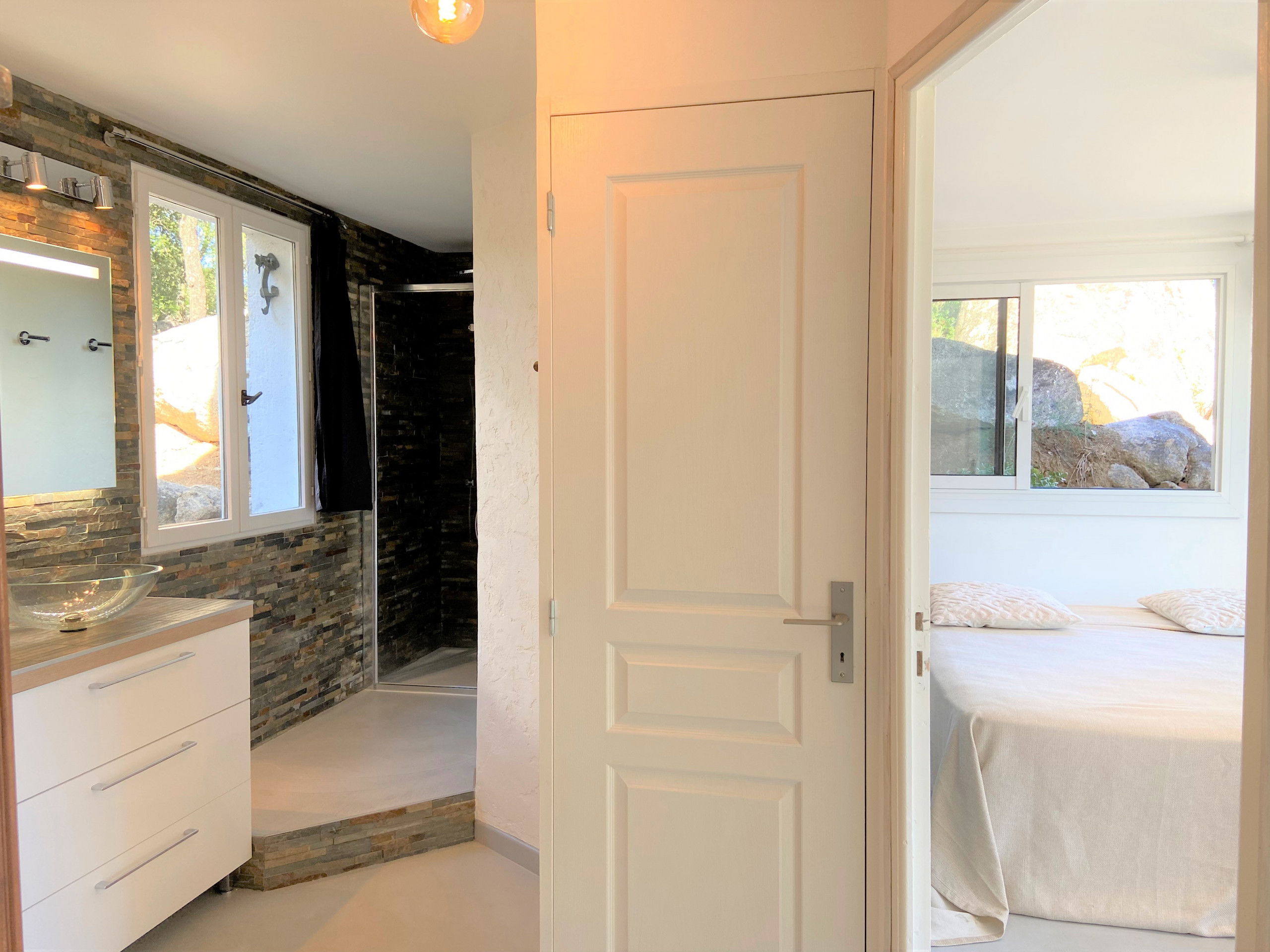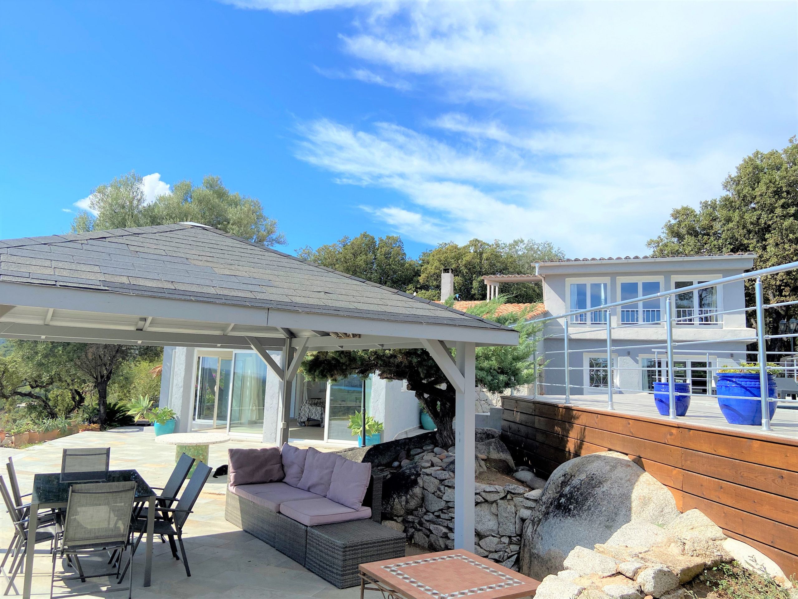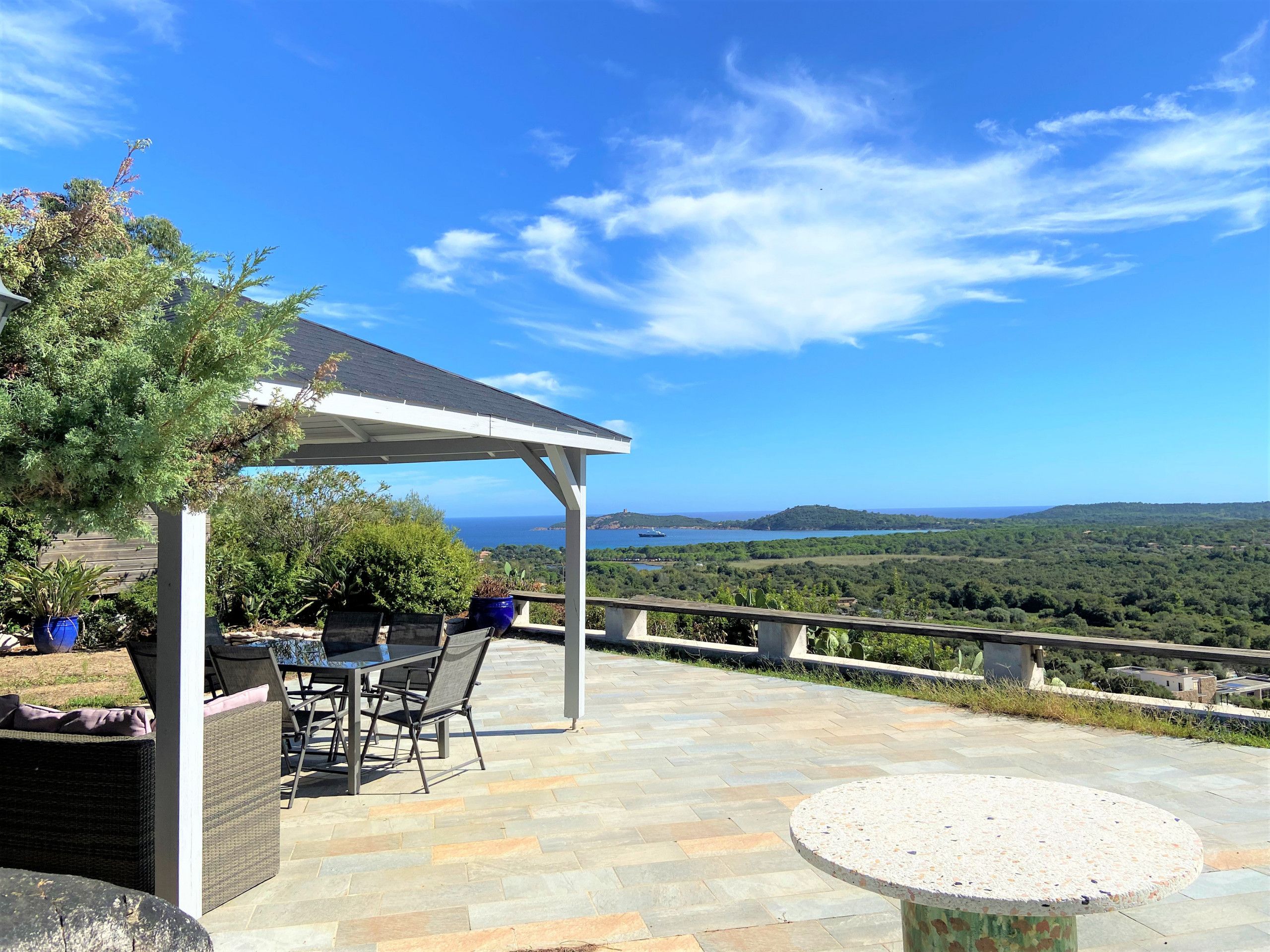Charming villa with magnificent views of the sea and the Pinarello peninsula in the heart of the maquis, between granite rocks and olive trees.