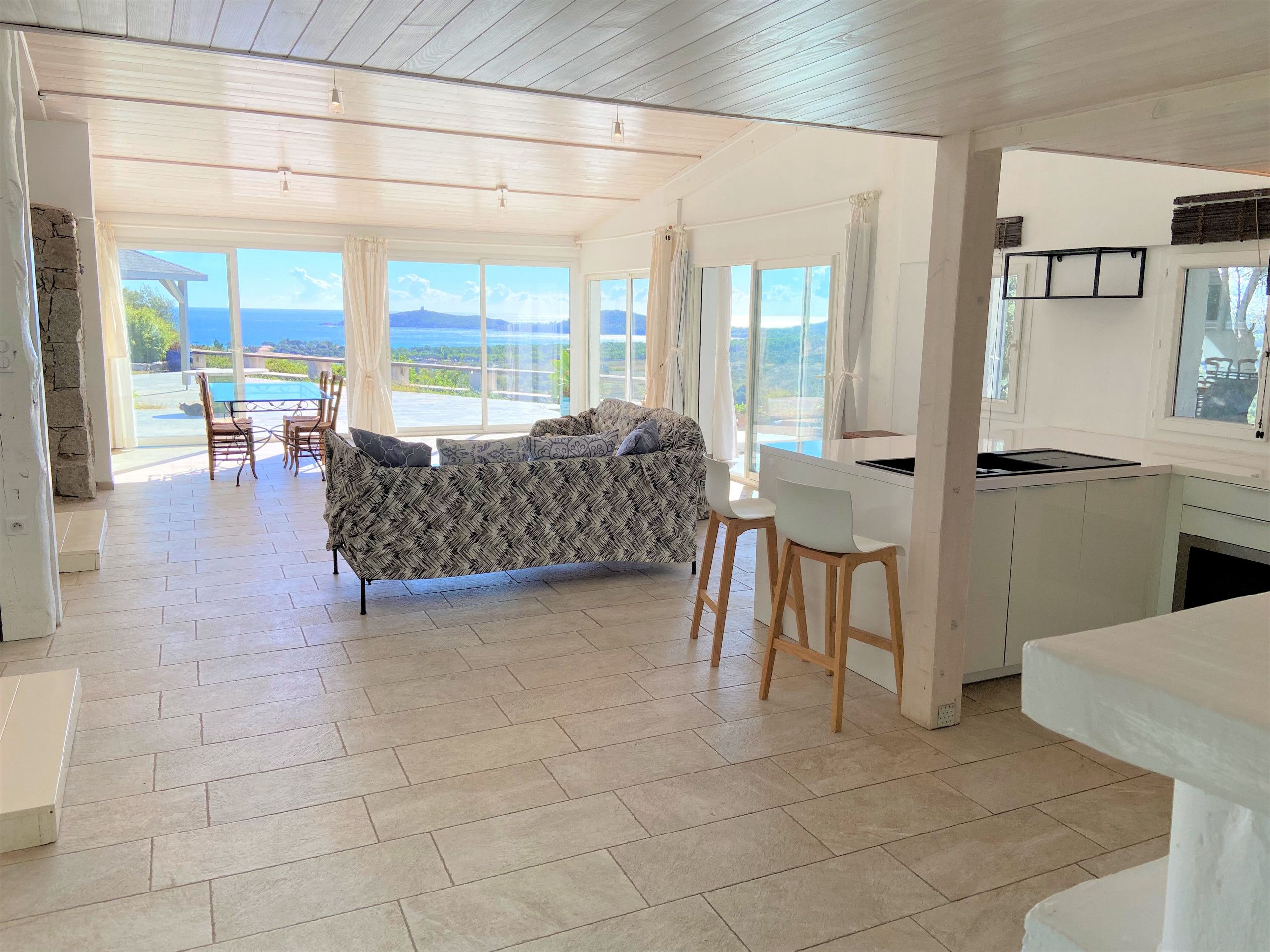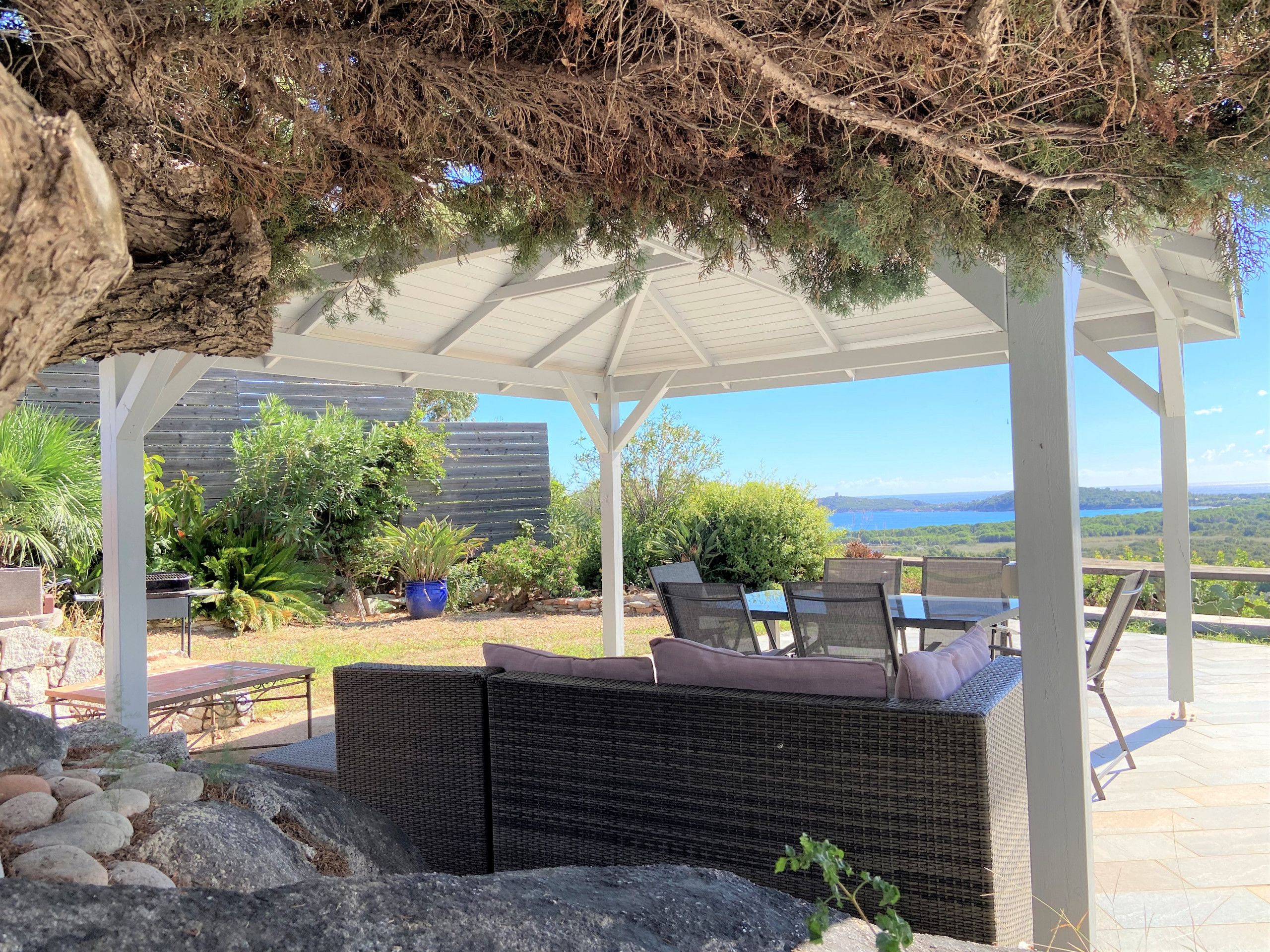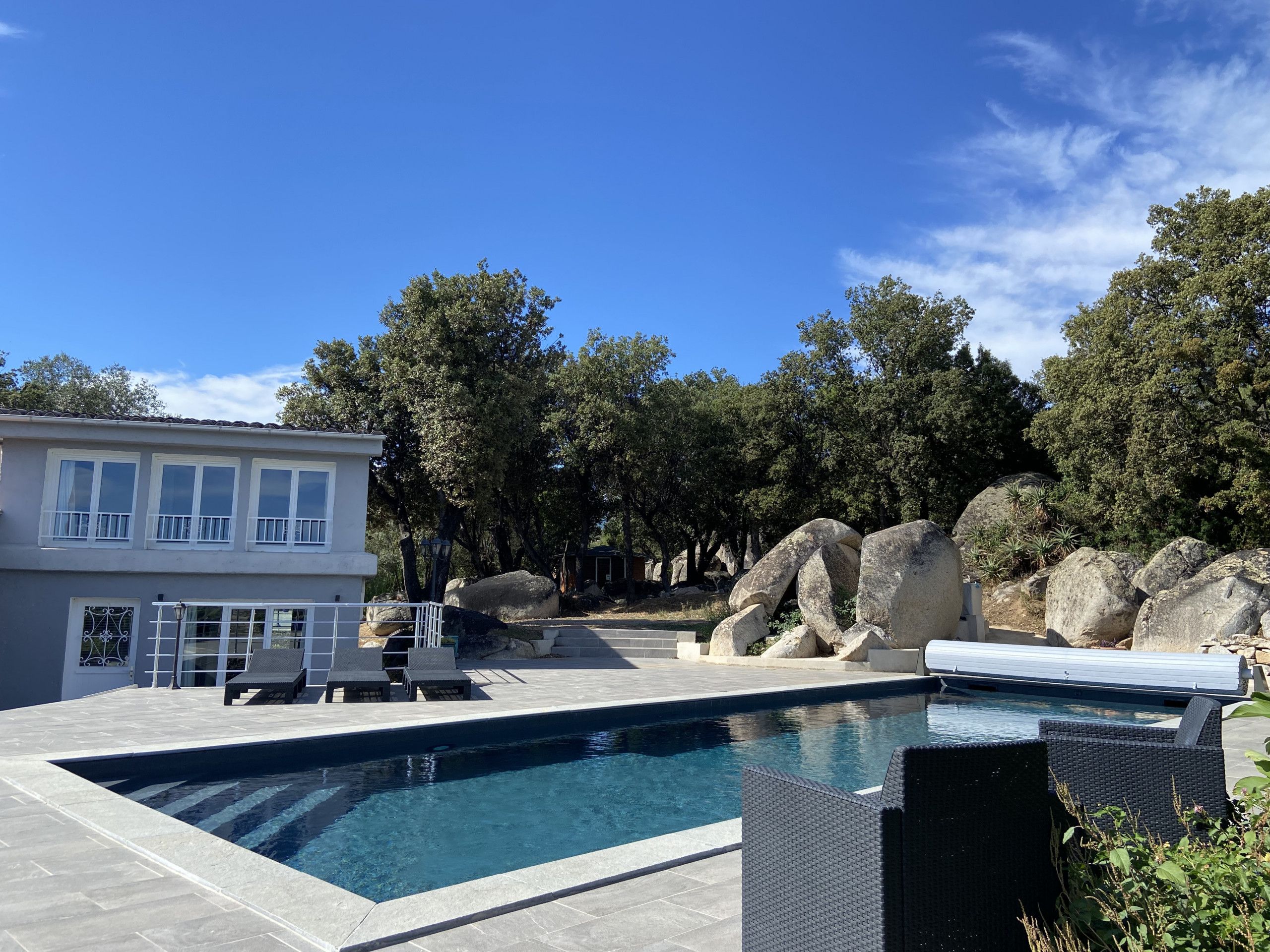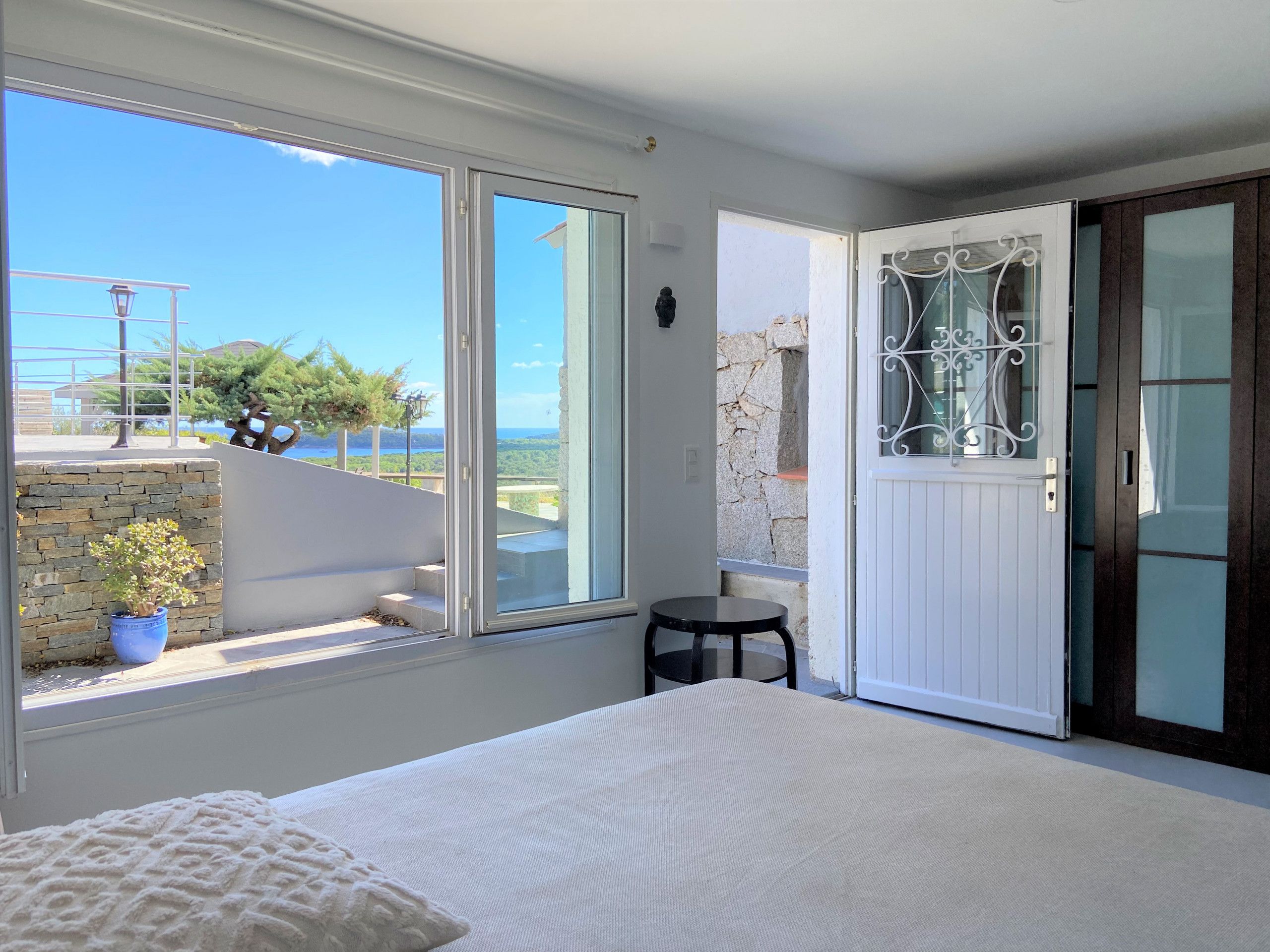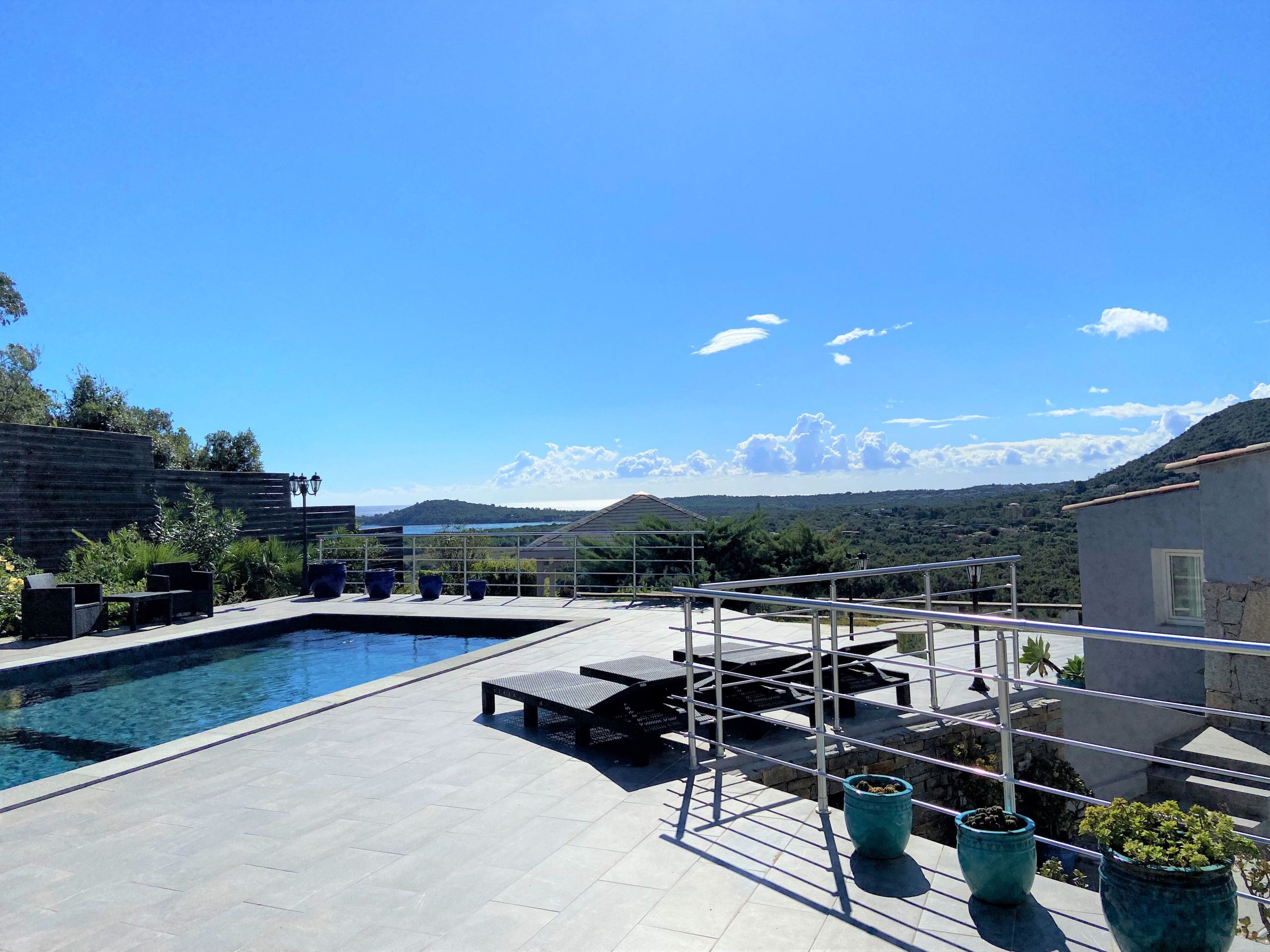 Charming villa with magnificent views of the sea and the Pinarello peninsula in the heart of the maquis, between granite rocks and olive trees.