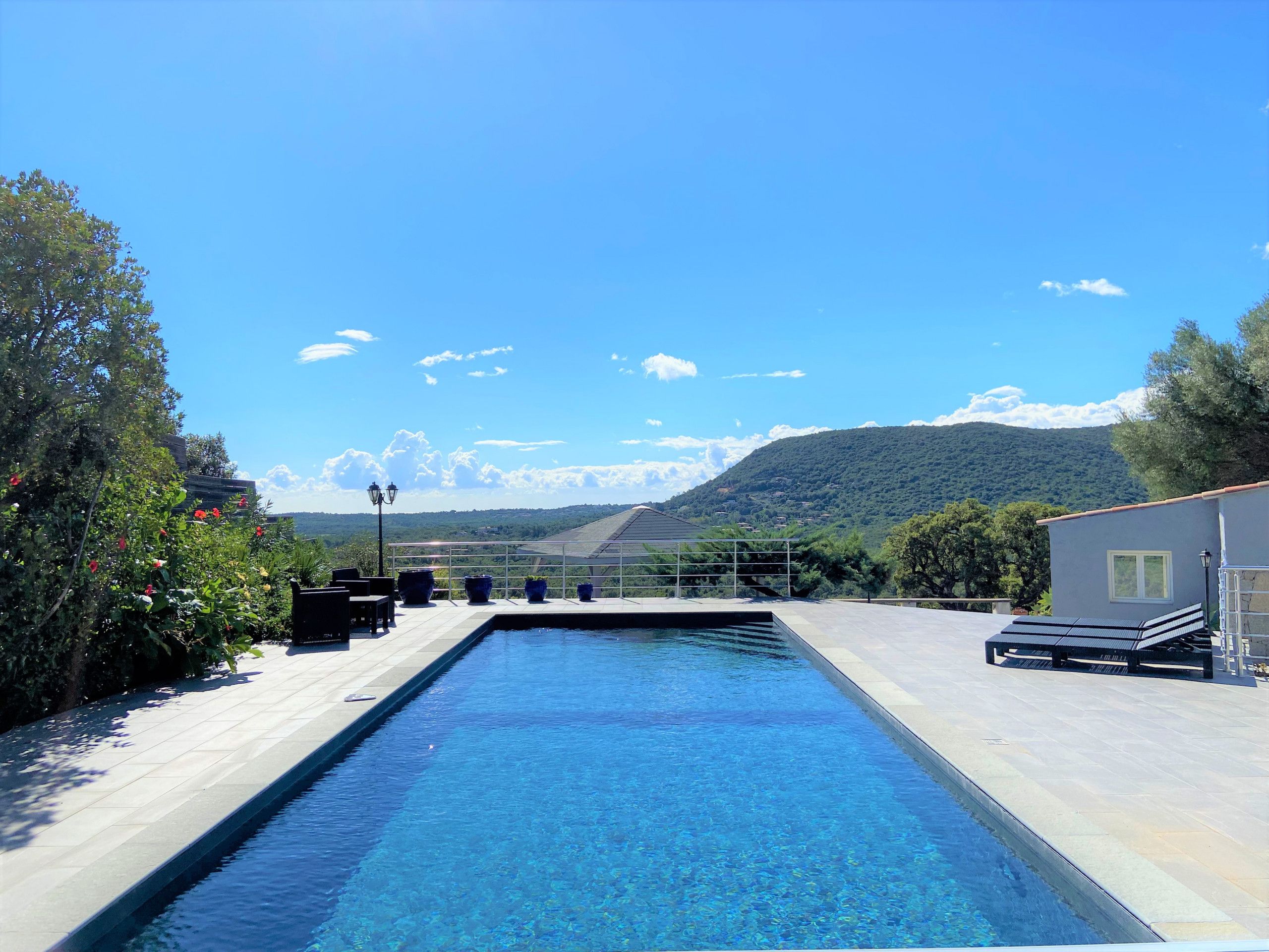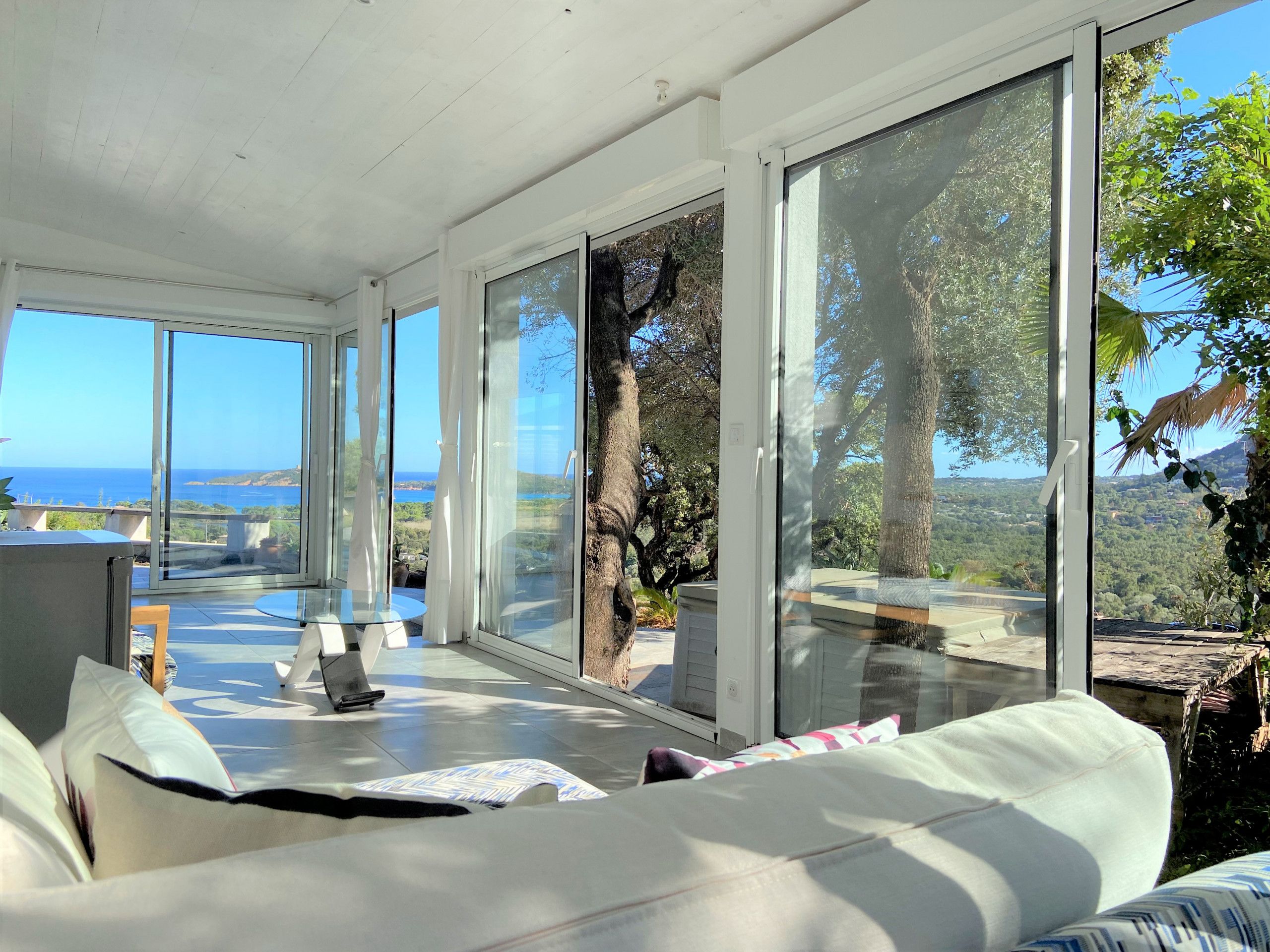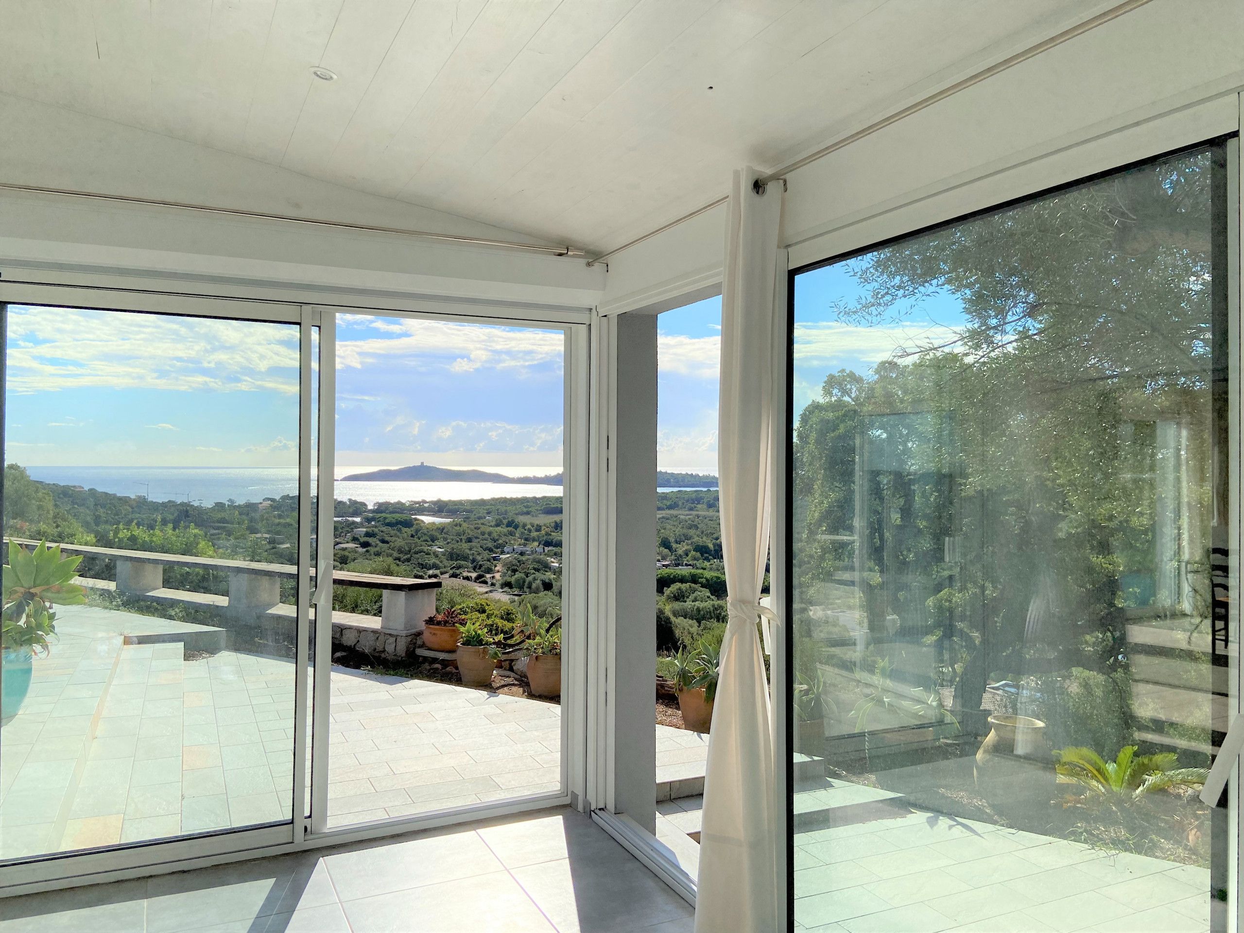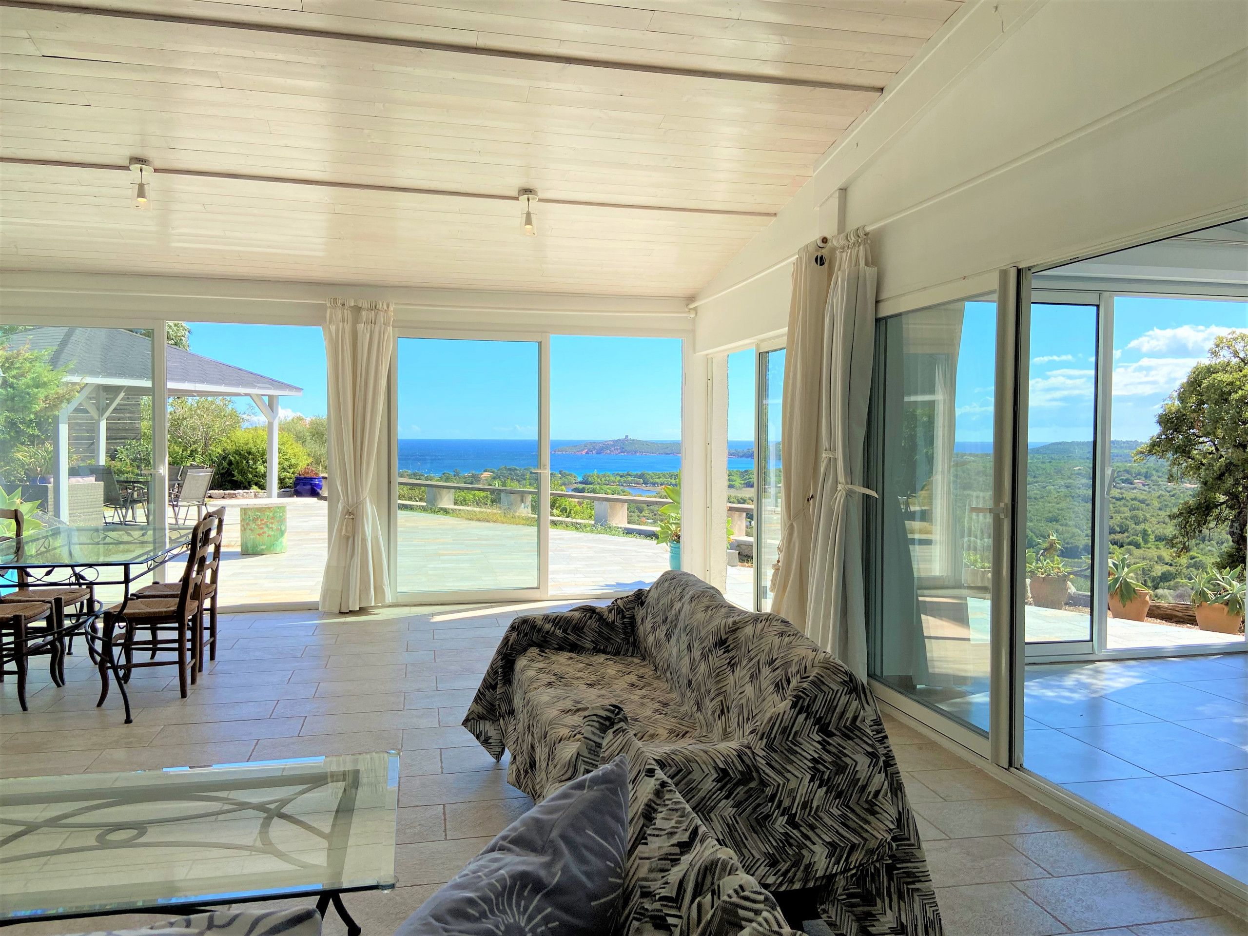 Charming villa with magnificent views of the sea and the Pinarello peninsula in the heart of the maquis, between granite rocks and olive trees.