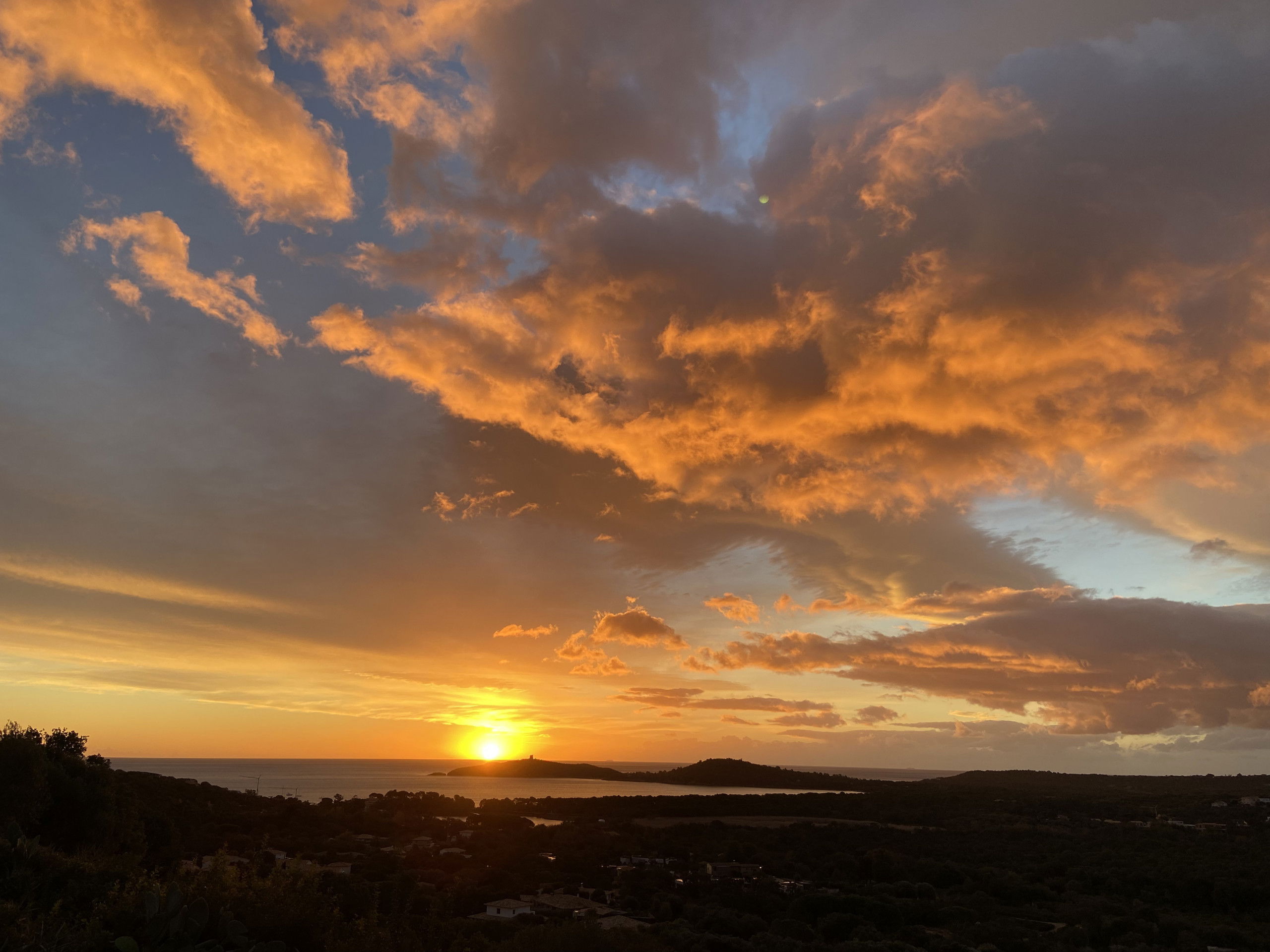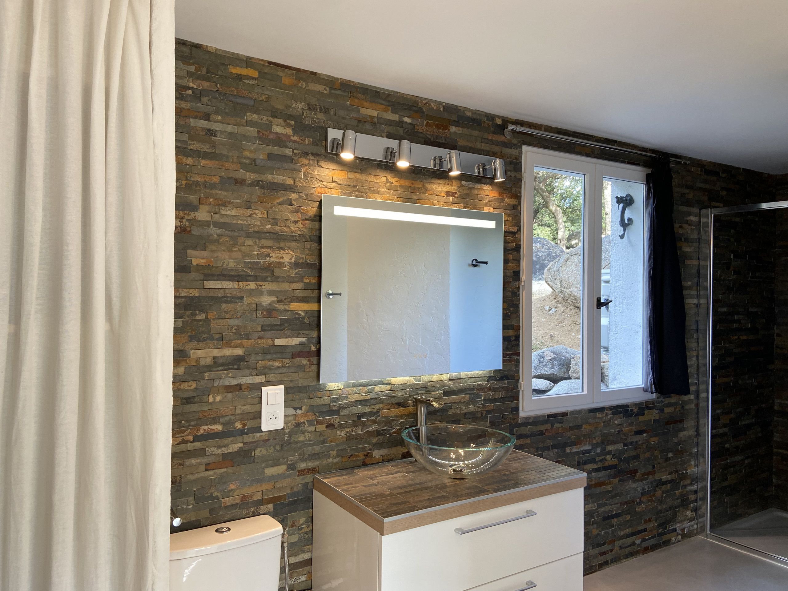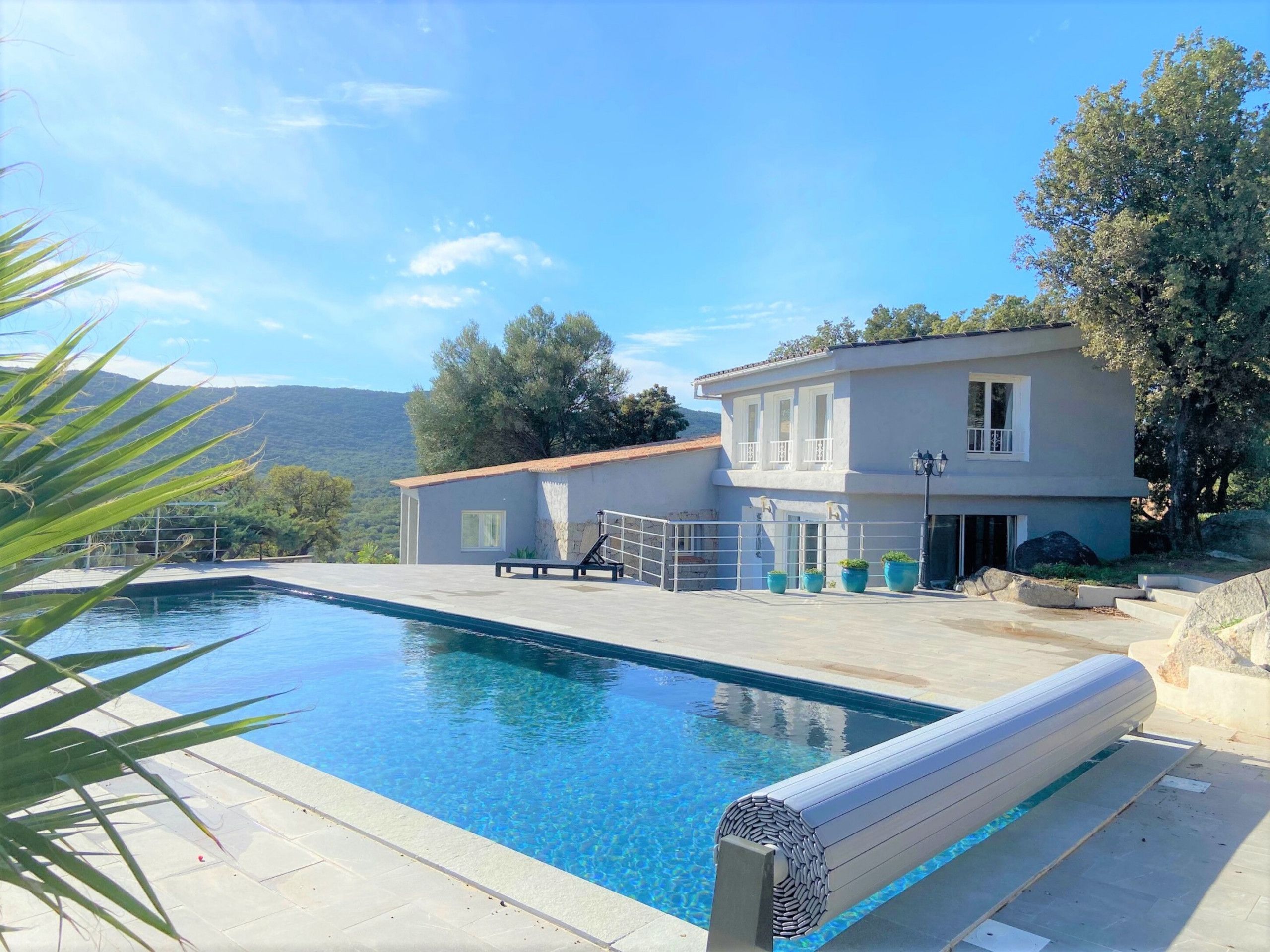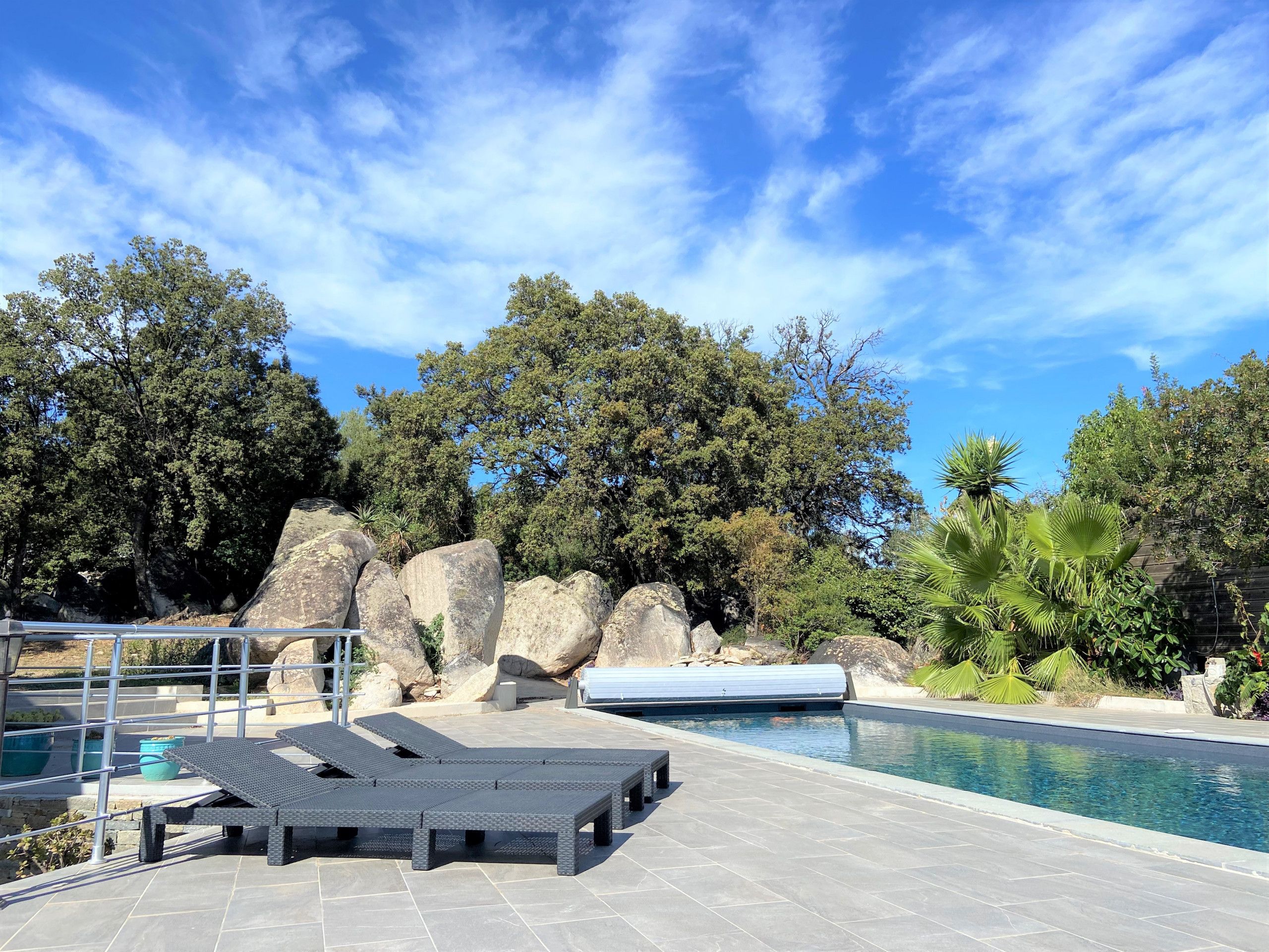Charming villa with magnificent views of the sea and the Pinarello peninsula in the heart of the maquis, between granite rocks and olive trees.