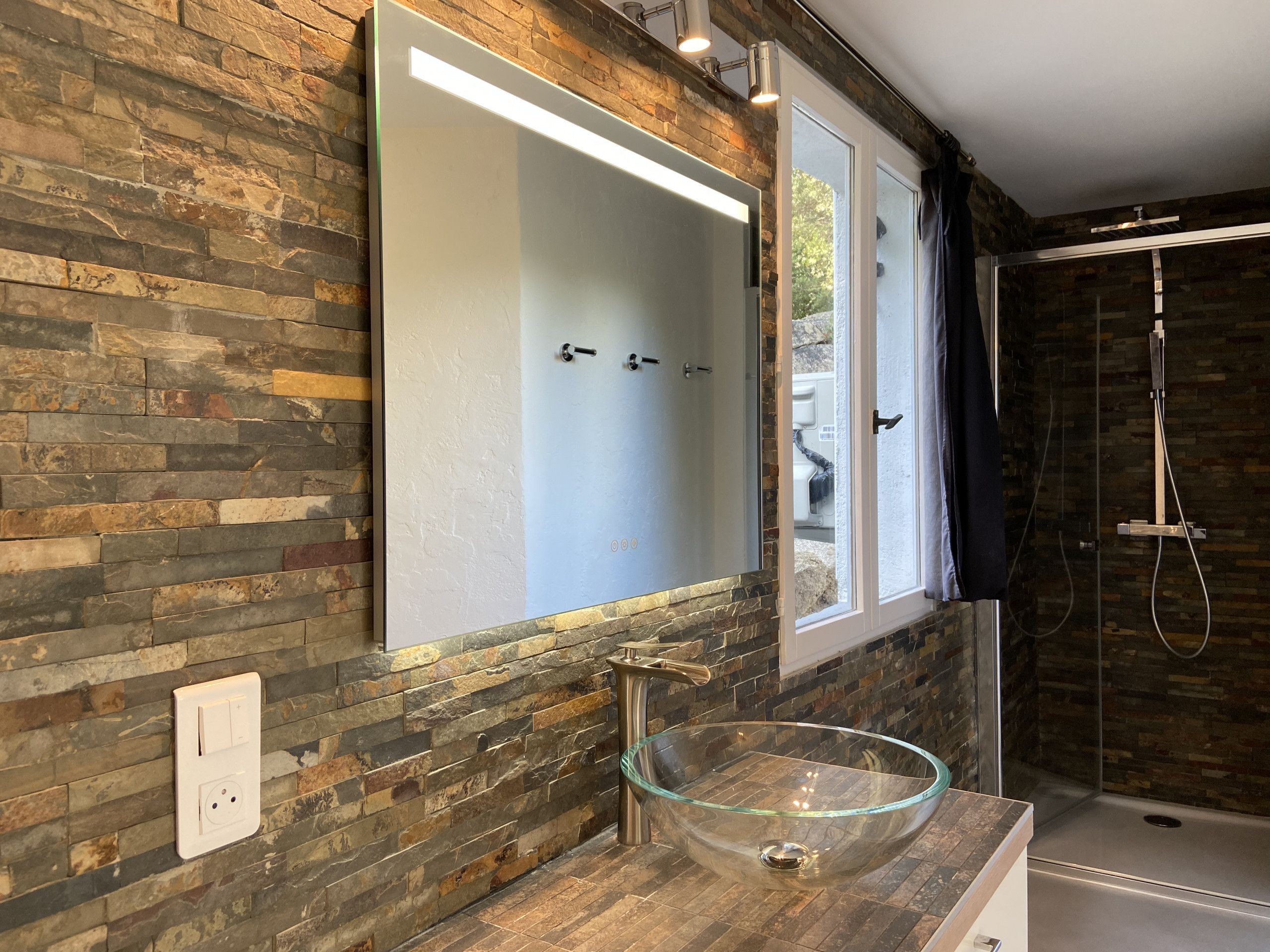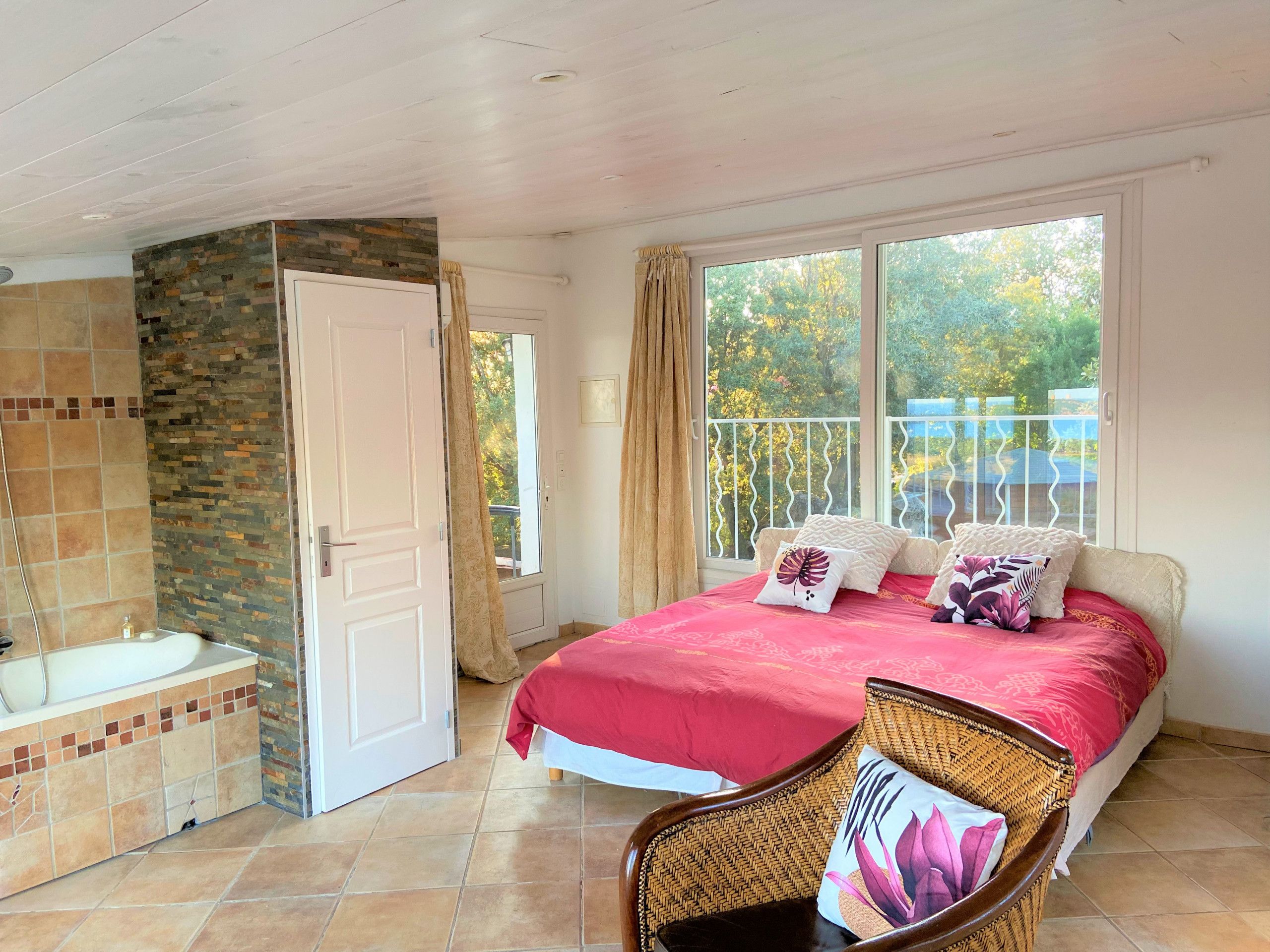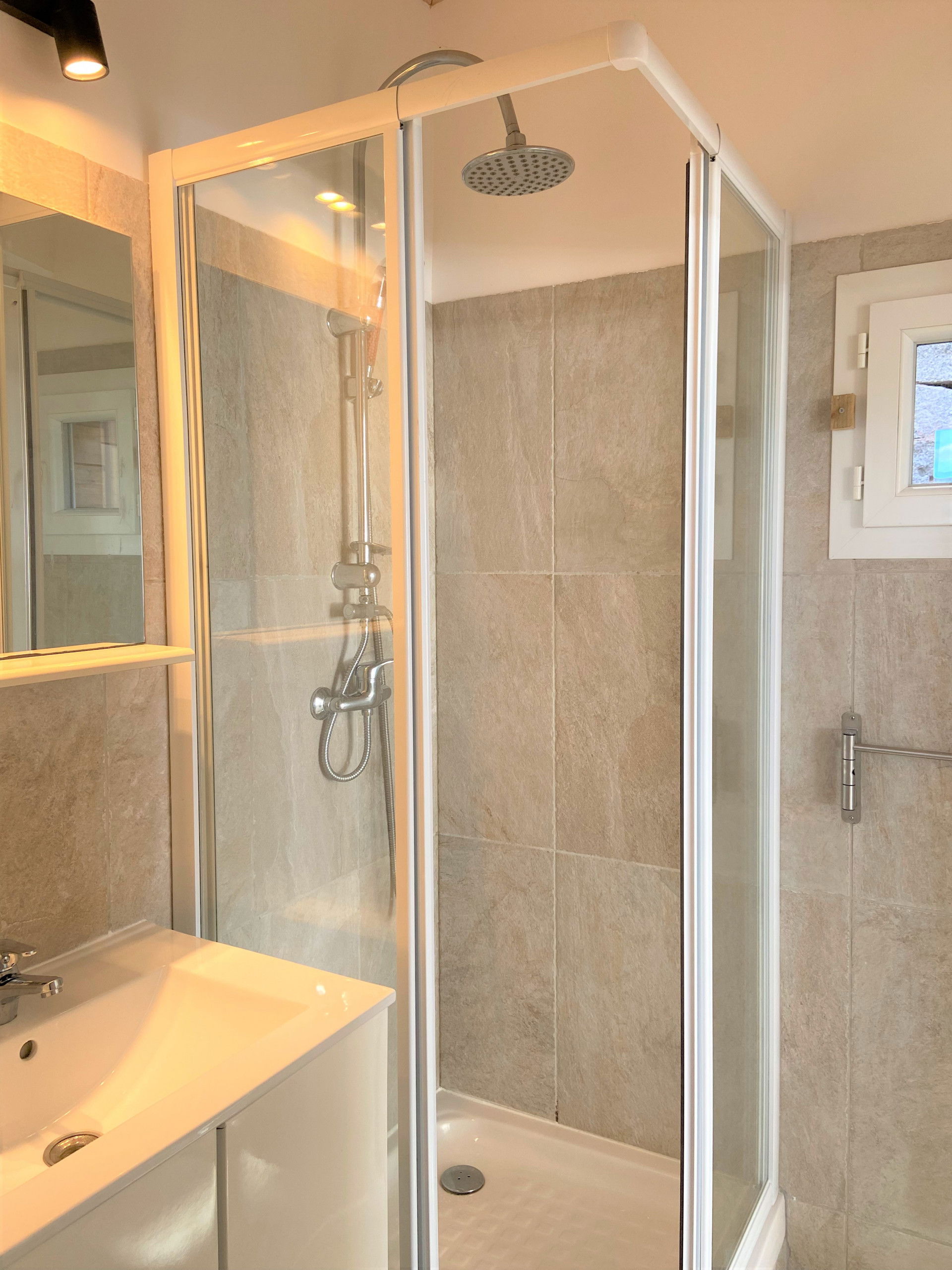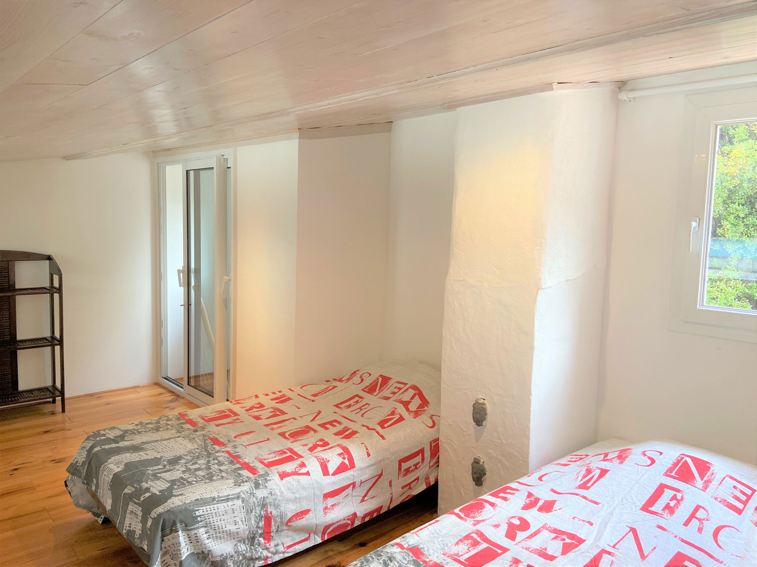 - Bedroom 3: accessible from an external staircase, a large air-conditioned room, bright in an eagle's nest of 25 m2, with bathroom open to the room and toilet. 2 beds of 90 cm.