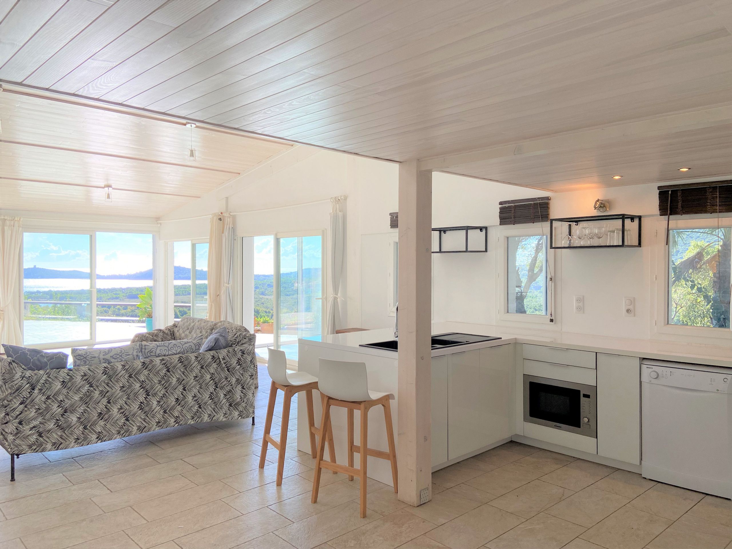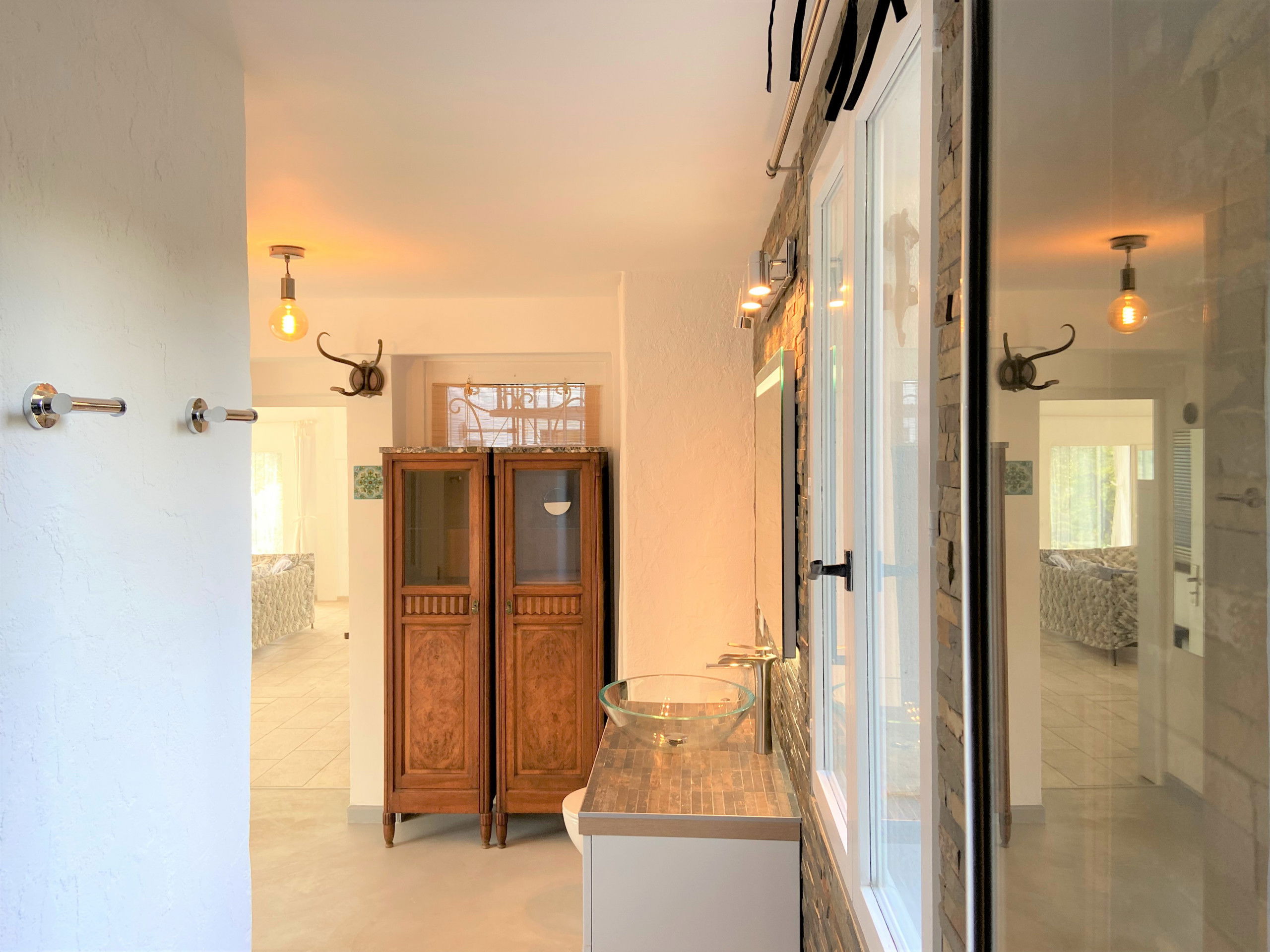 - A large air-conditioned living room of 70 m2, opening onto a terrace with sea view,