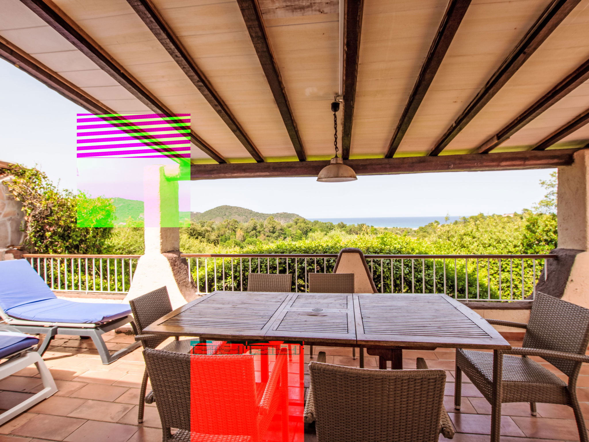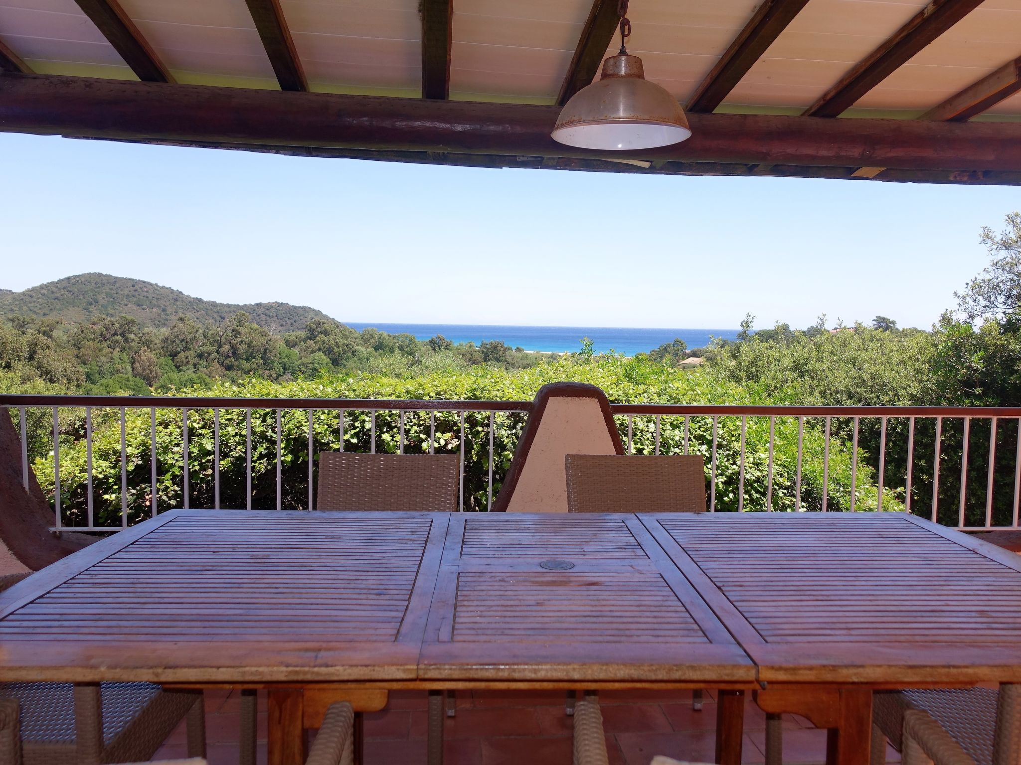 "Fium del Cavu", 3-room bungalow 50 m2. Practical furnishings: living/dining room with 1 sofabed (160 cm, length 200 cm), dining table and fan. 1 room with 1 bed (90 cm, length 190 cm), 1 french bed (180 cm, length 200 cm). 1 room with 1 french bed (180 cm, length 200 cm). Kitchenette (4 gas rings, toaster, microwave, freezer, electric coffee machine) with air conditioning. Shower, sep. WC. Electric heating, air-conditioning. Terrace. Terrace furniture, barbecue, deck chairs (2). Beautiful view of the garden, the countryside and the ocean. Parking (1 car). Please note: non-smokers only. Smoke alarm. Offer by a commercial proprietor according to Art. 155, IV, CGI