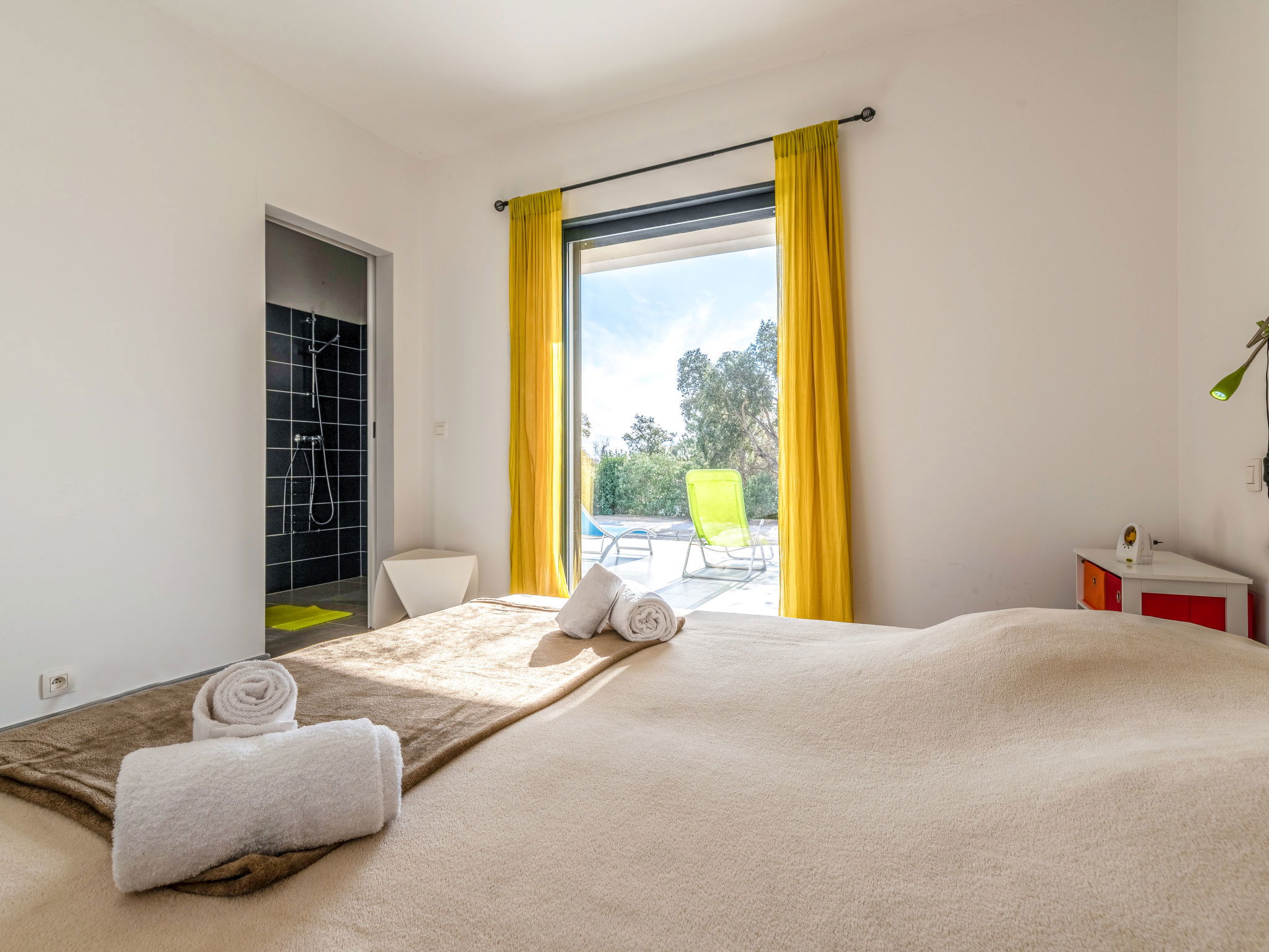 Villa. In the district of Mangia Gatta, on the outskirts, 4 km from the centre of Sainte Lucie de Porto-Vecchio, in a secluded position, 700 m from the sea, 700 m from the beach, direct access to the beach. Private: natural state property, swimming pool angular (10 x 4 m, depth 70 - 180 cm, seasonal availability: 15.Apr. - 15.Sep.) with shutter cover. In the house: table tennis, air conditioning. Motor access (via unmade road). Parking on the premises. Supermarket 4 km, restaurant 1 km, bakery 4 km, sandy beach "Plage de Fautea" 1 km. Nearby attractions: Centre ville Porto-Vecchio 20 km, Centre ville Solenzara 19 km. Hiking paths: Aiguilles de Bavella 40 km. Please note: car recommended.