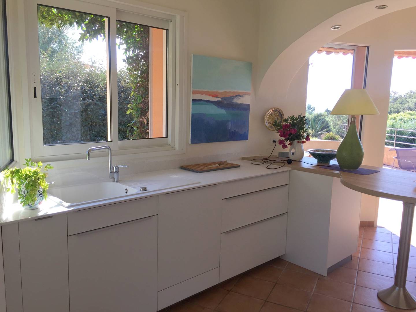 American kitchen: American fridge, ceramic hob (4 rings), oven, microwave, dishwasher ... glazed door to rear terrace.