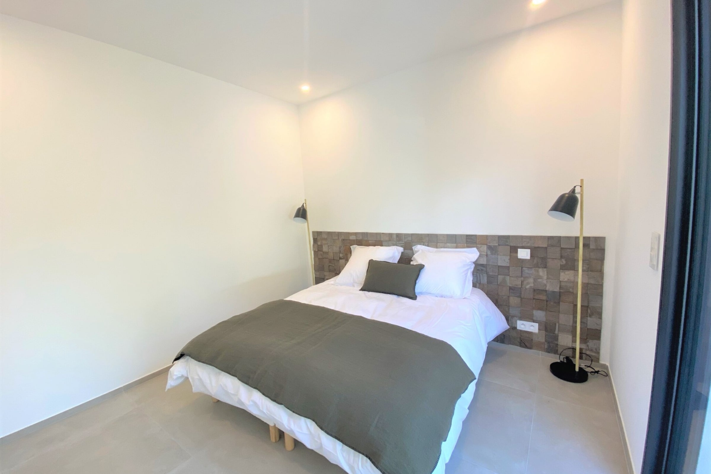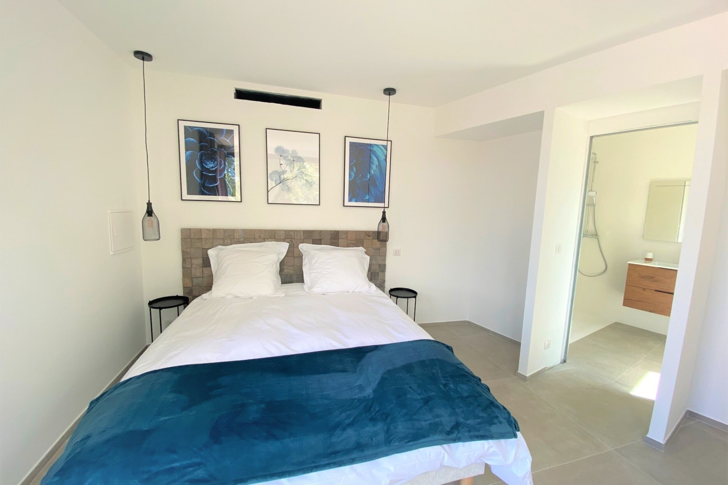 - Bedroom 2: Queen Size bed (160* 200) with shower room. Independent room with its own external access overlooking the terrace and the swimming pool.