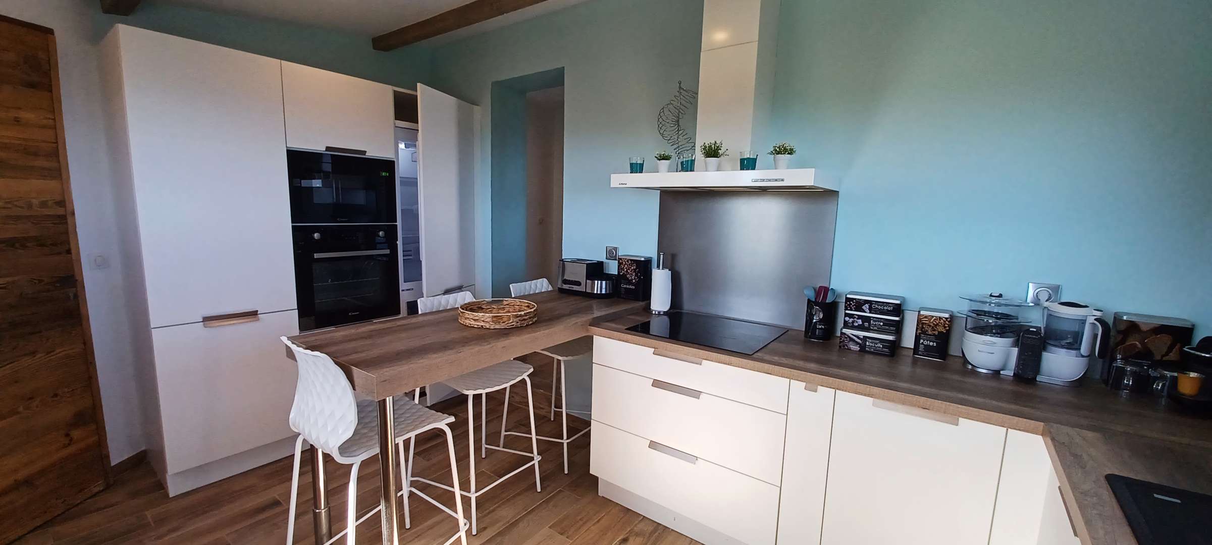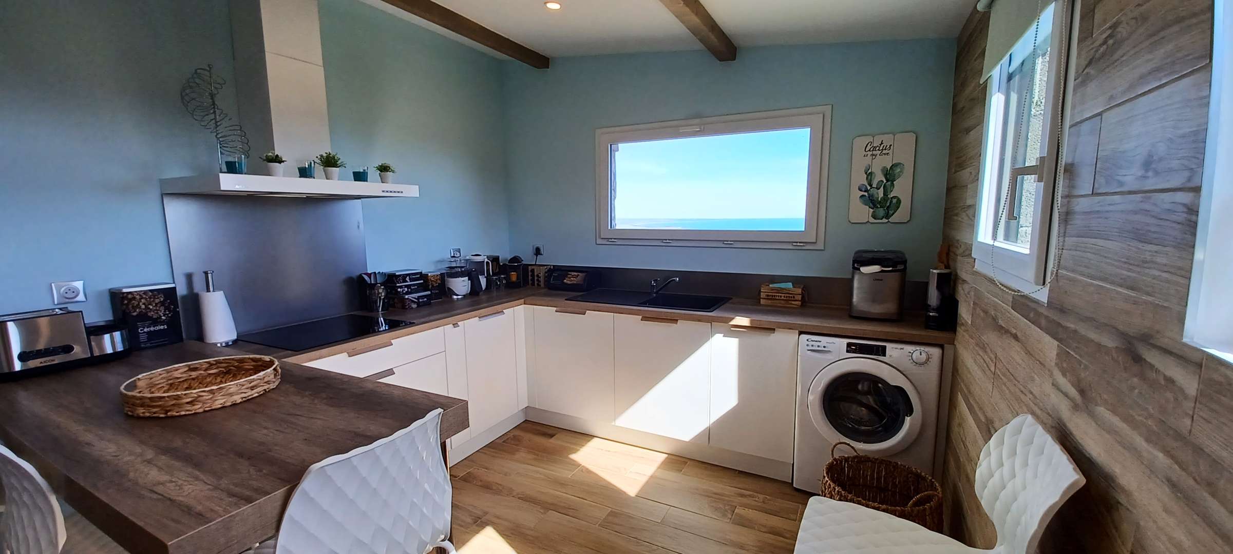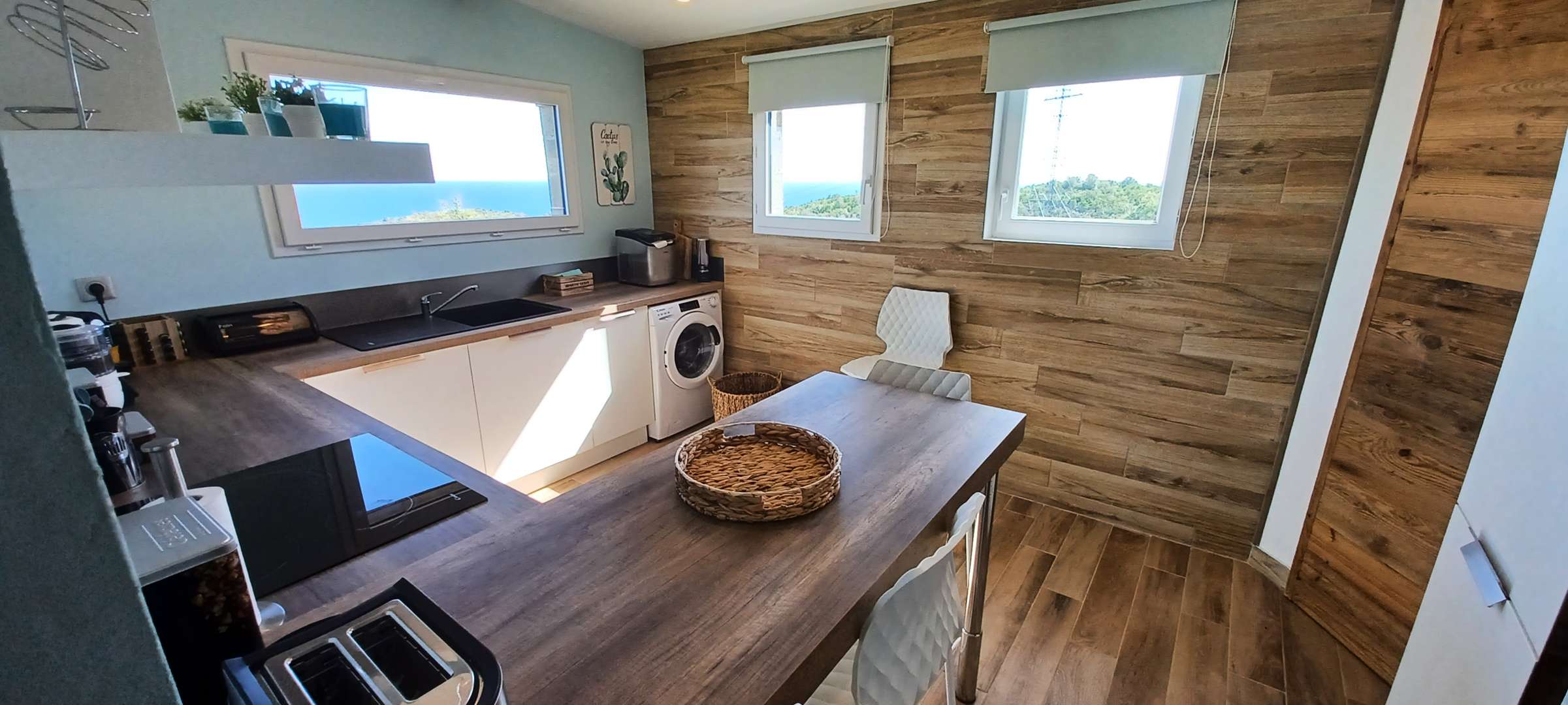 Fully equipped kitchen: combined fridge-freezer, induction cooker, electric oven, microwave oven, dishwasher, washing machine, Nespresso coffee machine, kettle, toaster, steam cooker...
