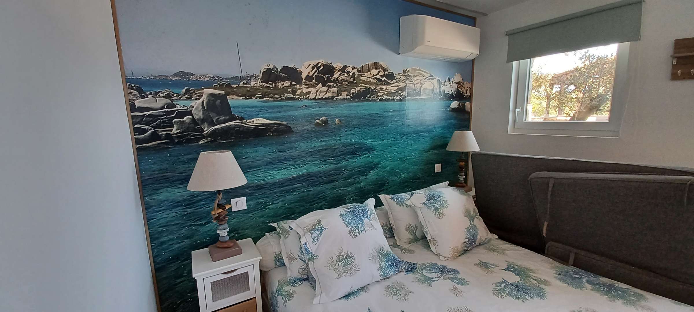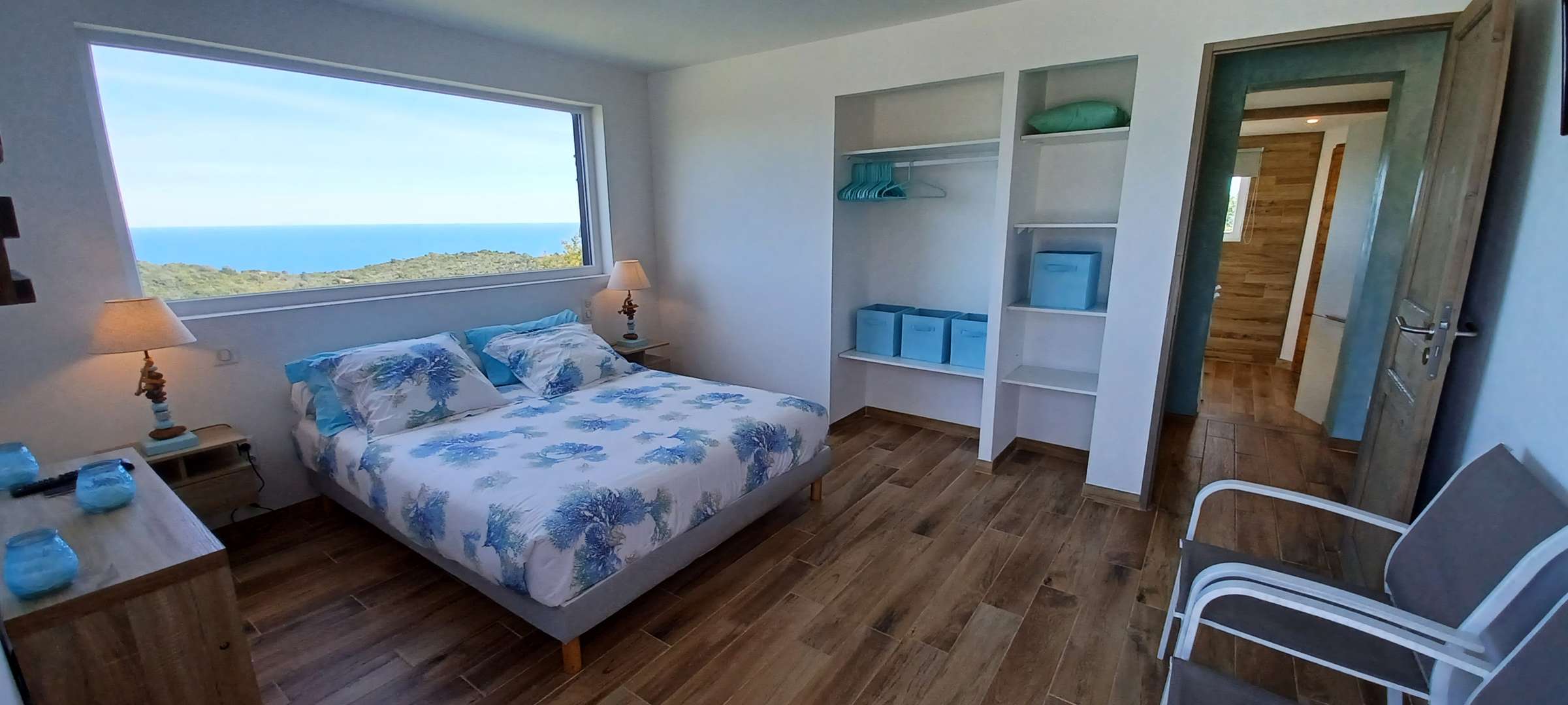 Room 1 : sea view : 1 bed in 160, TV, storage space, adjoining shower room with shower, basin, towel dryer.