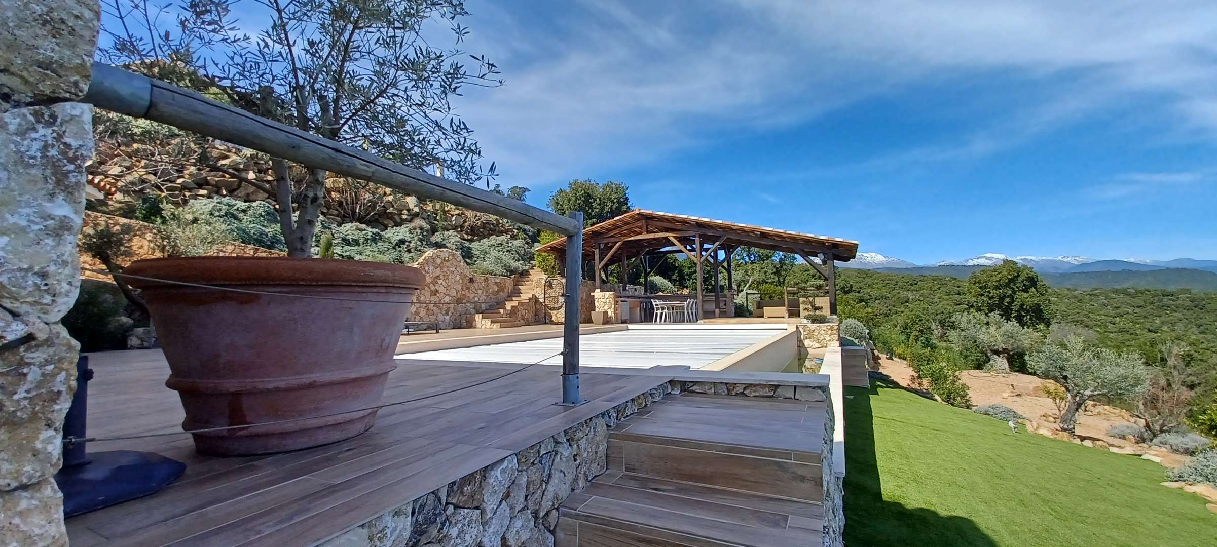 Located on the heights of Solenzara, with a panoramic view of the sea, this superb vacation home, sheepfold style, nicely decorated will delight you. Superbly equipped: summer kitchen, SPA, petanque ground, heated swimming pool, in absolute calm and without opposite.