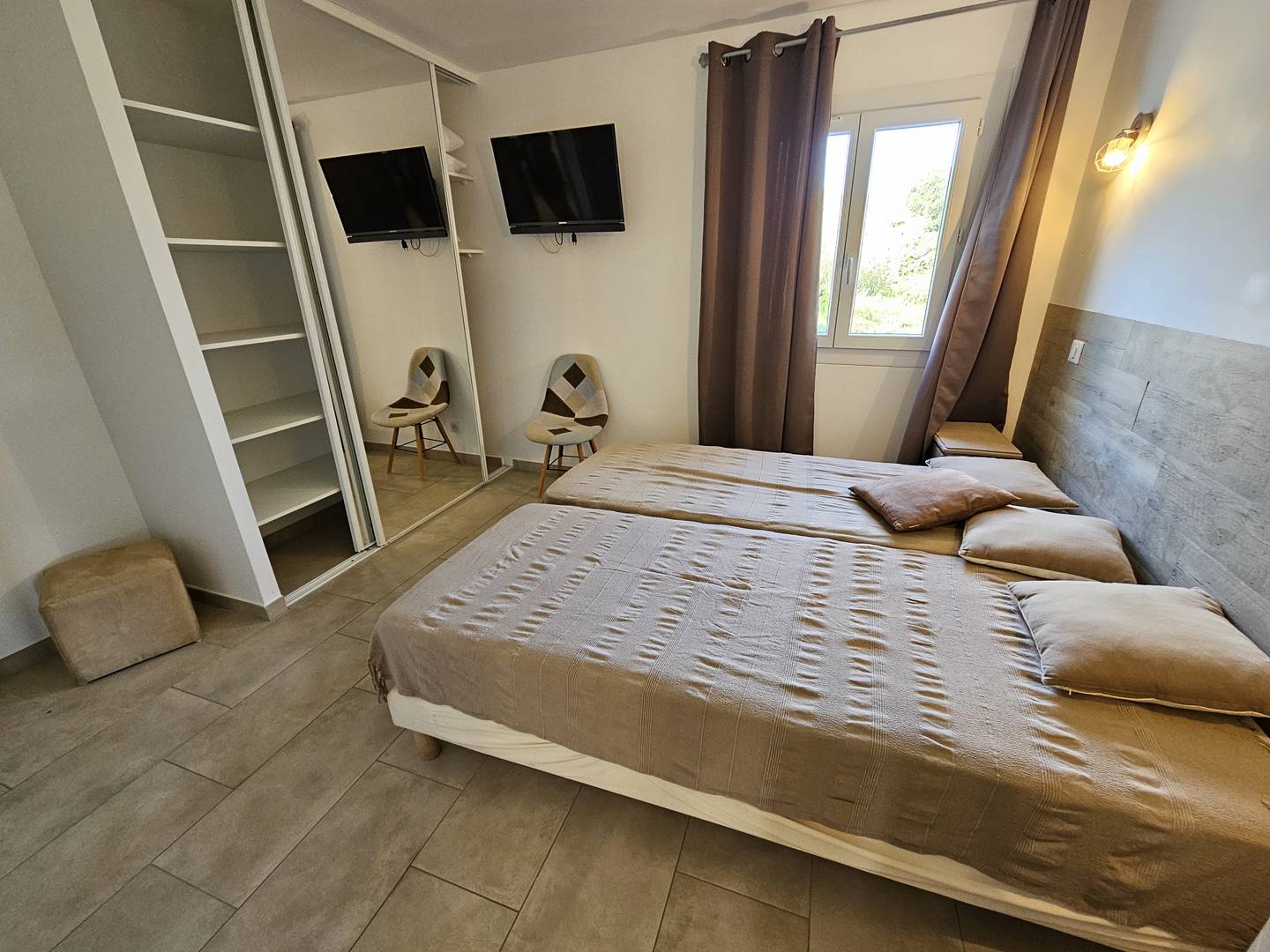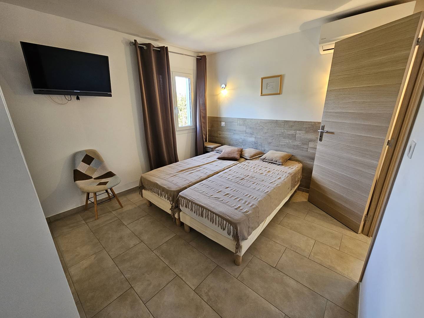 Bedroom 1: air-conditioned - Bedroom with 2 beds in 80 that can be pushed together, television suspended and ensuite shower room.