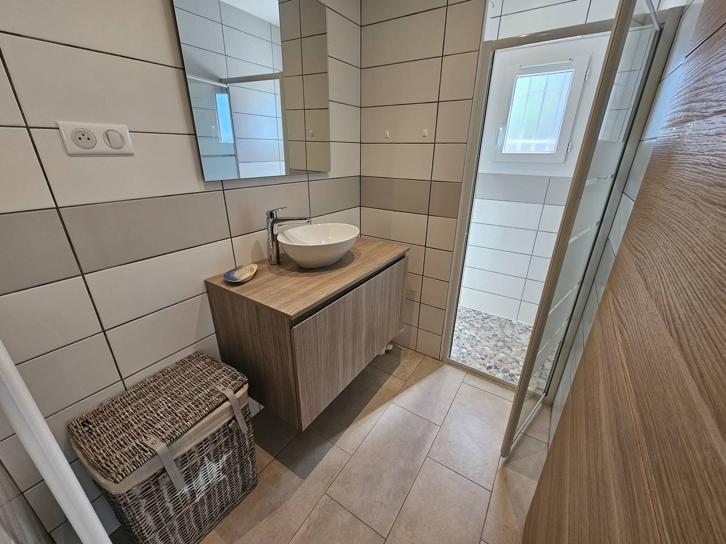 Shower room: Shower room adjoining bedroom 1 with shower and sink.