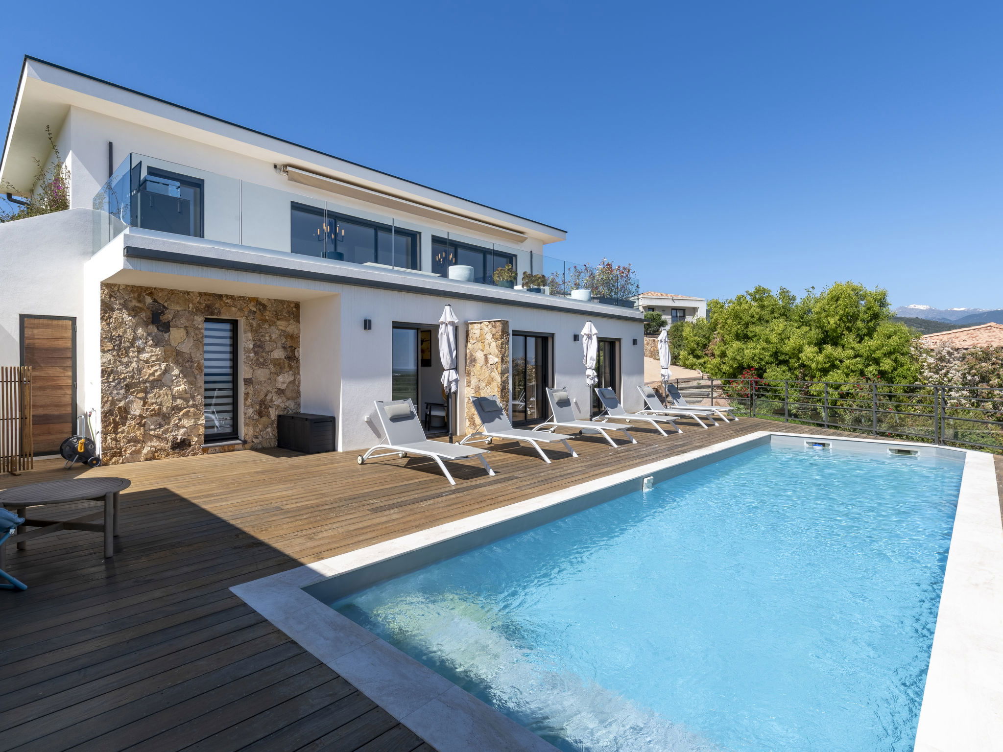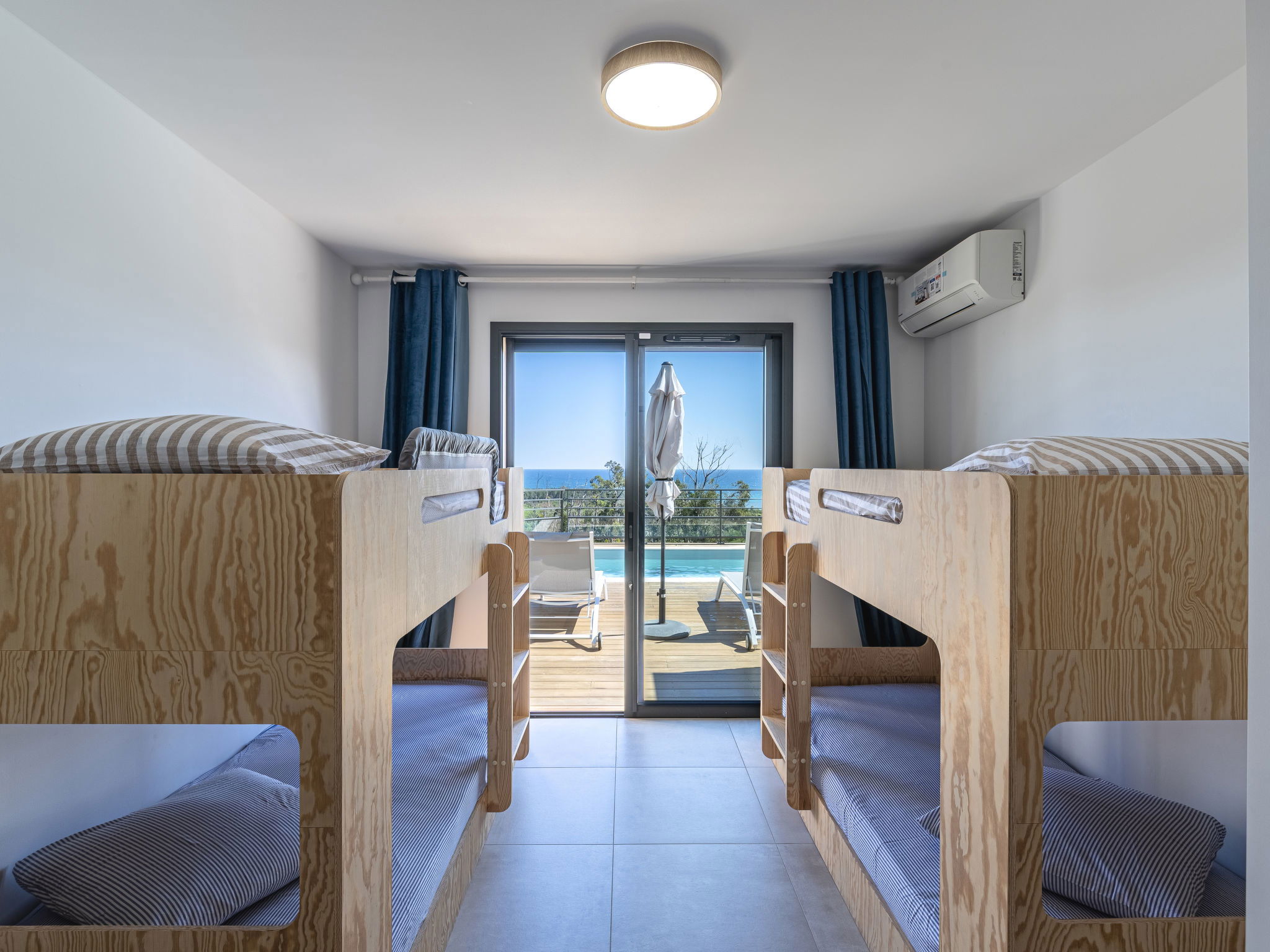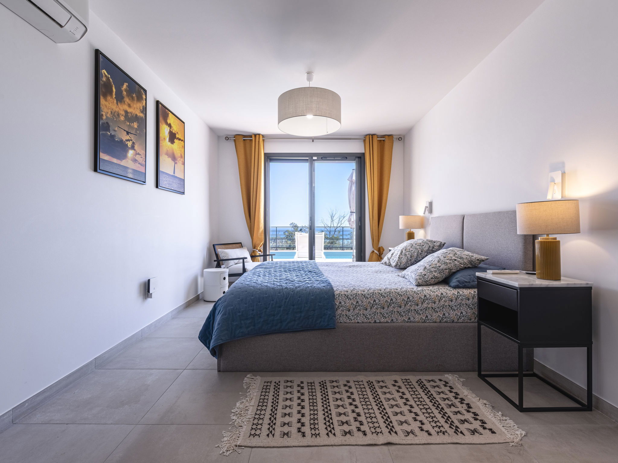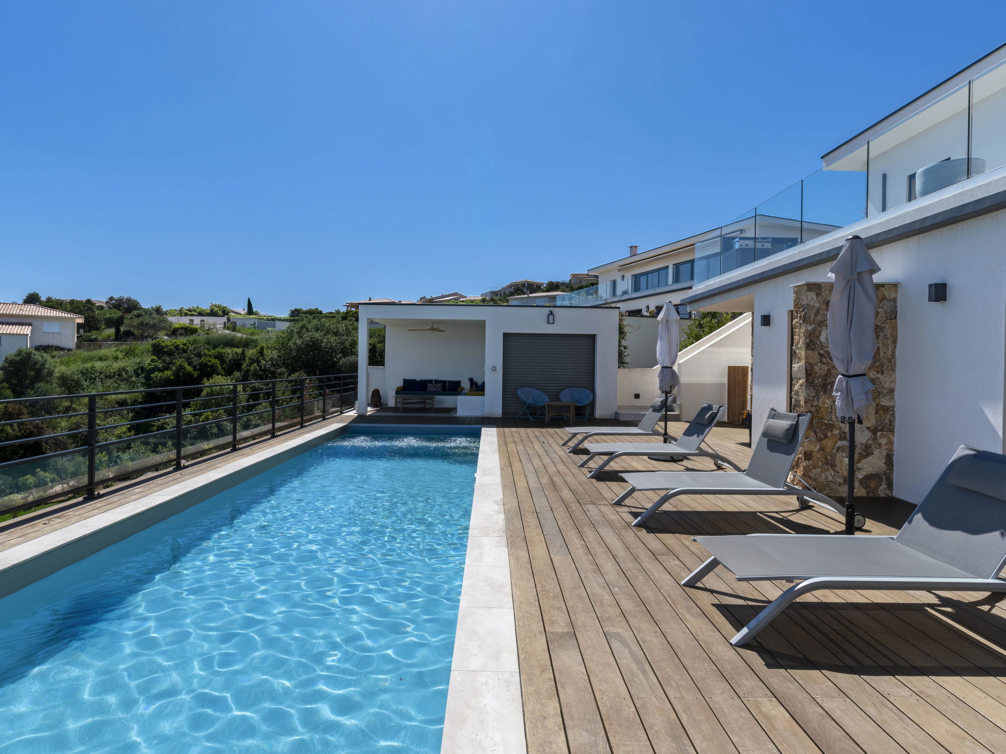 "Casa Minà", 4-room villa 150 m2 on 2 levels. Object suitable for 4 adults + 4 children. Beautiful and modern furnishings: large living/dining room with dining table and TV (flat screen). Exit to the terrace. Kitchen (oven, dishwasher, 4 induction hot plates, toaster, kettle, microwave, electric coffee machine, cooking island). Electric heating, air-conditioning. On the lower ground floor: 1 children's room with 2 x 2 bunk beds (90 cm, length 190 cm), electric shutters. Exit to the swimming pool. 2 rooms, each room with 1 french bed (160 cm, length 200 cm), electric shutters. Exit to the swimming pool. 2 showers/WC, bath/shower/WC. Terrace partly roofed. Terrace furniture, barbecue, sitting area. Beautiful view of the sea and the countryside. Facilities: washing machine, dryer, safe, iron, hair dryer. Internet (WiFi, free). Parking. E-charging station. Please note: smoke alarm. Offer by a private individual according to Art. 155, IV of CGI.