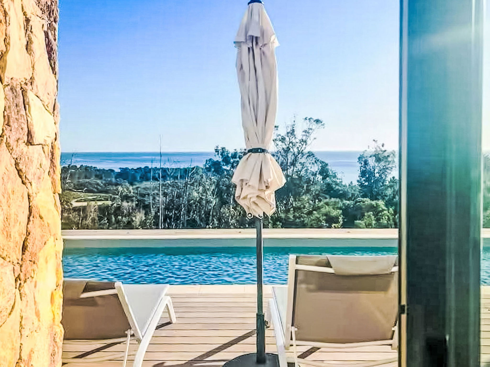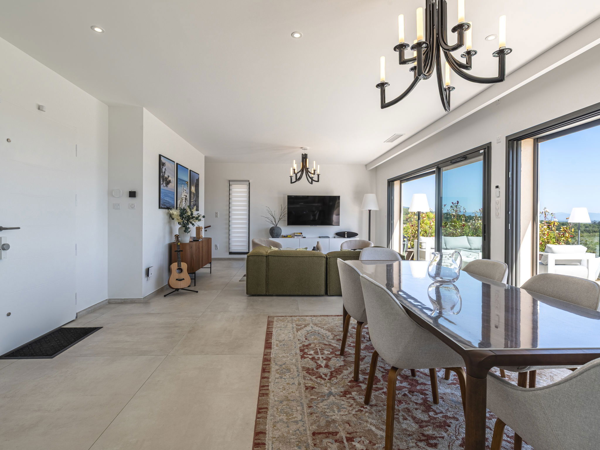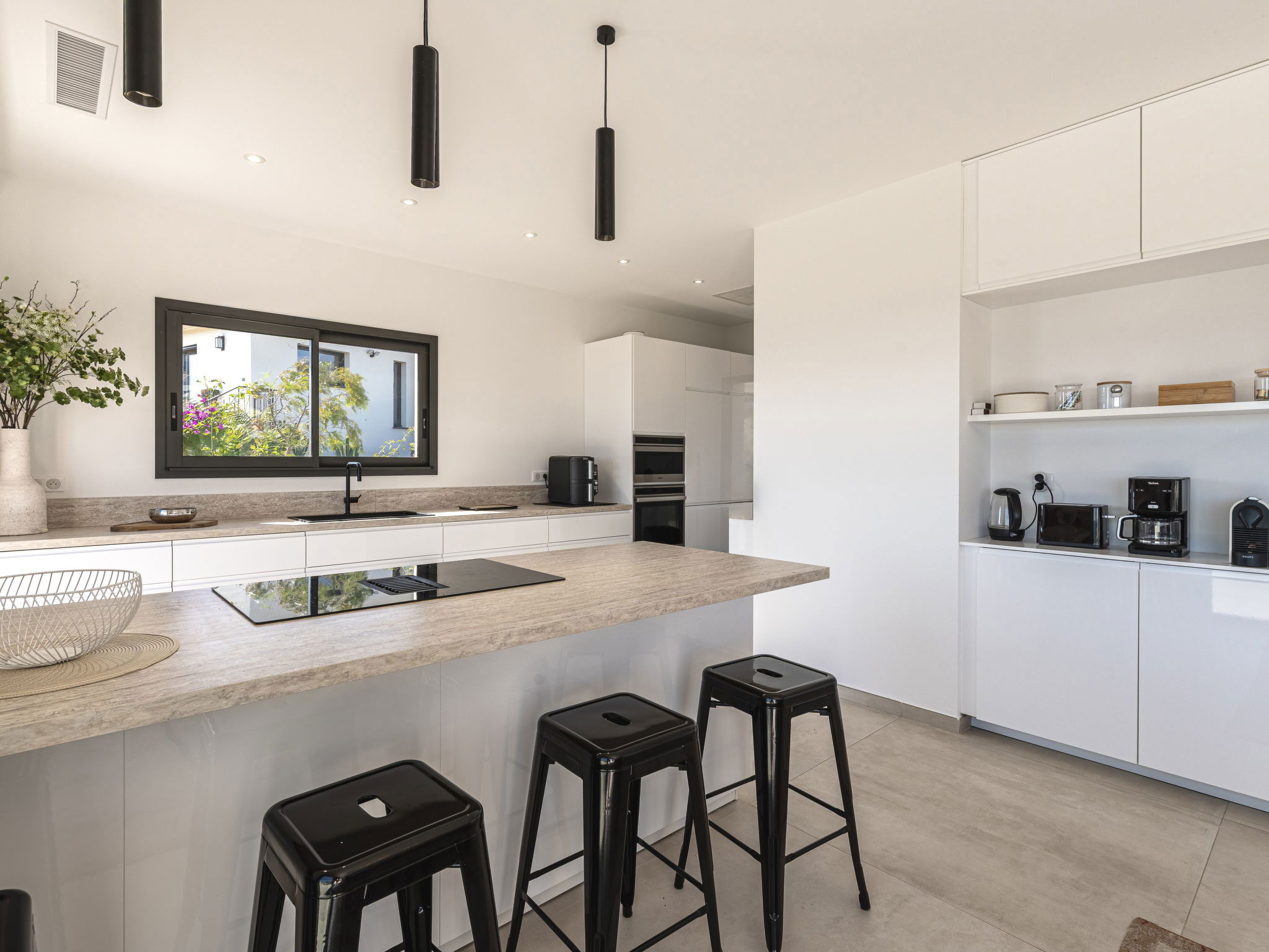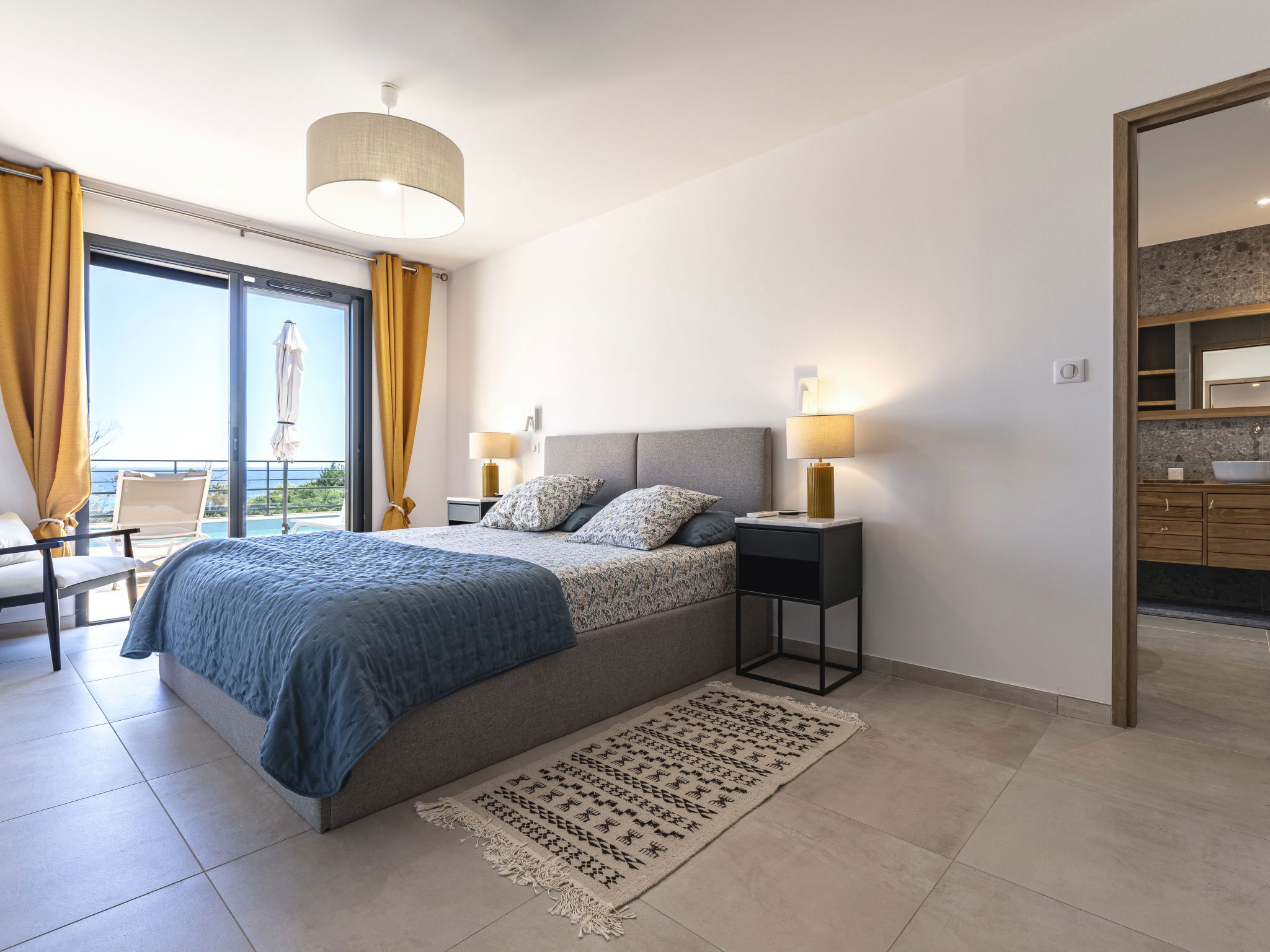 "Casa Minà", 4-room villa 150 m2 on 2 levels. Object suitable for 4 adults + 4 children. Beautiful and modern furnishings: large living/dining room with dining table and TV (flat screen). Exit to the terrace. Kitchen (oven, dishwasher, 4 induction hot plates, toaster, kettle, microwave, electric coffee machine, cooking island). Electric heating, air-conditioning. On the lower ground floor: 1 children's room with 2 x 2 bunk beds (90 cm, length 190 cm), electric shutters. Exit to the swimming pool. 2 rooms, each room with 1 french bed (160 cm, length 200 cm), electric shutters. Exit to the swimming pool. 2 showers/WC, bath/shower/WC. Terrace partly roofed. Terrace furniture, barbecue, sitting area. Beautiful view of the sea and the countryside. Facilities: washing machine, dryer, safe, iron, hair dryer. Internet (WiFi, free). Parking. E-charging station. Please note: smoke alarm. Offer by a private individual according to Art. 155, IV of CGI.