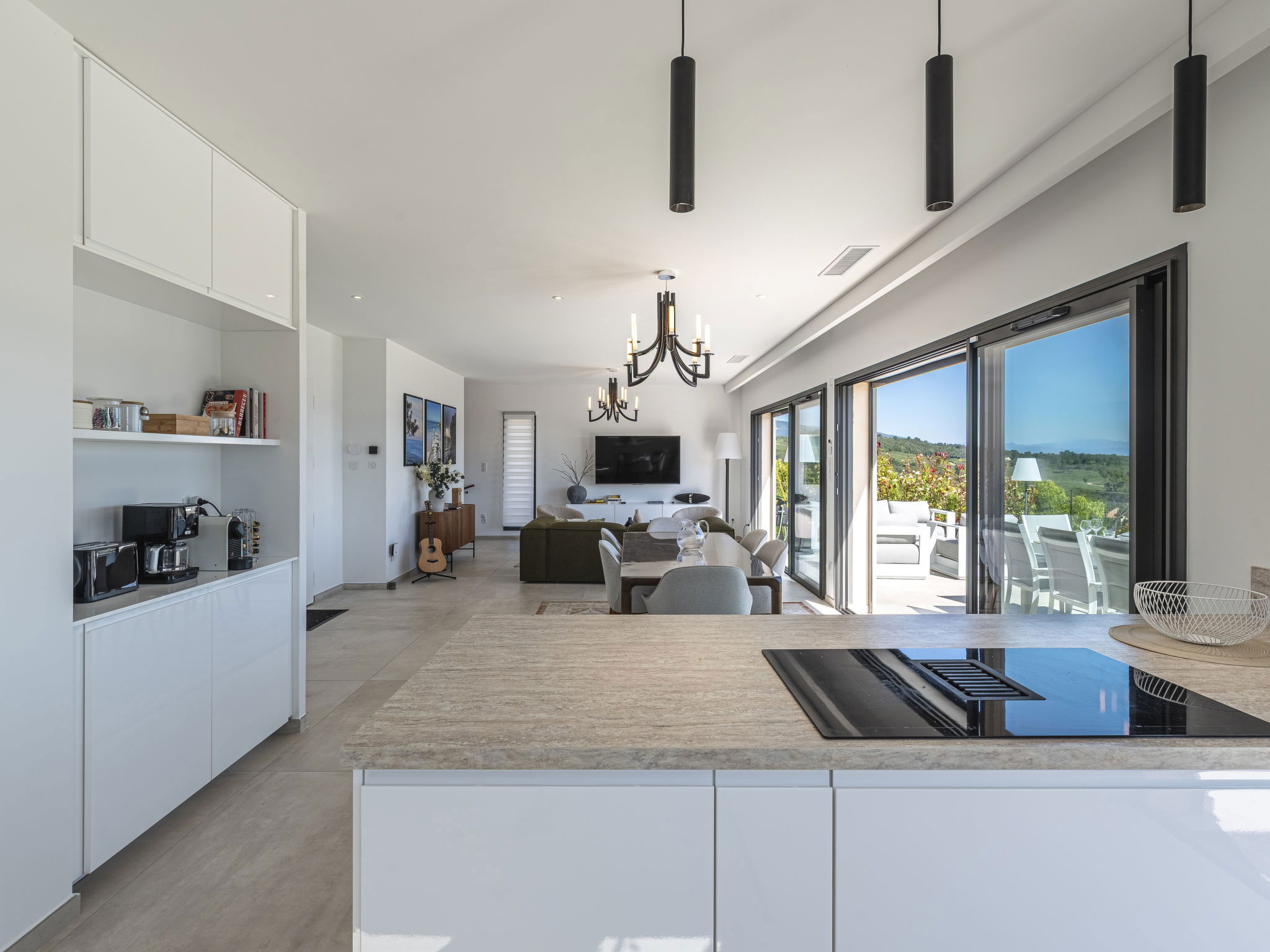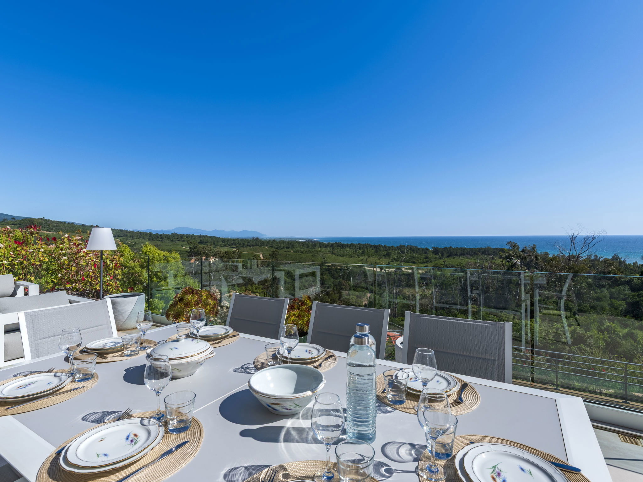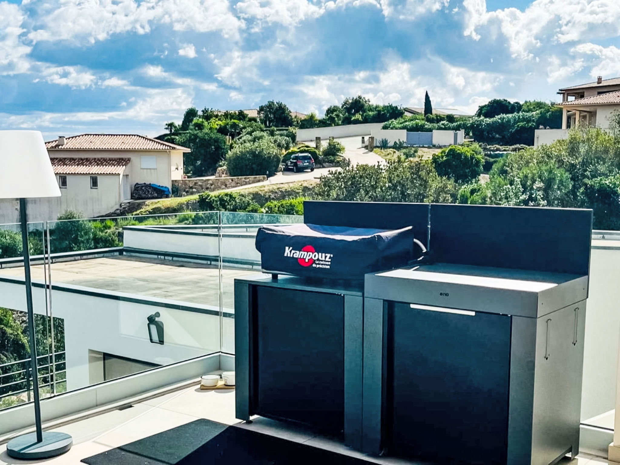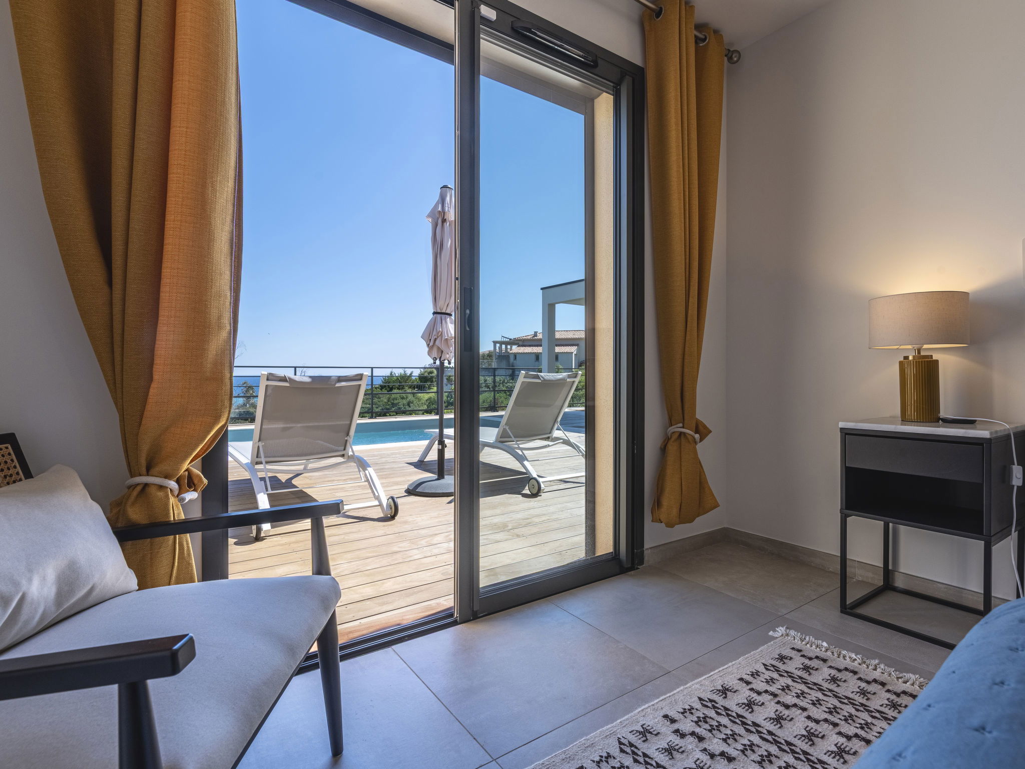 "Casa Minà", 4-room villa 150 m2 on 2 levels. Object suitable for 4 adults + 4 children. Beautiful and modern furnishings: large living/dining room with dining table and TV (flat screen). Exit to the terrace. Kitchen (oven, dishwasher, 4 induction hot plates, toaster, kettle, microwave, electric coffee machine, cooking island). Electric heating, air-conditioning. On the lower ground floor: 1 children's room with 2 x 2 bunk beds (90 cm, length 190 cm), electric shutters. Exit to the swimming pool. 2 rooms, each room with 1 french bed (160 cm, length 200 cm), electric shutters. Exit to the swimming pool. 2 showers/WC, bath/shower/WC. Terrace partly roofed. Terrace furniture, barbecue, sitting area. Beautiful view of the sea and the countryside. Facilities: washing machine, dryer, safe, iron, hair dryer. Internet (WiFi, free). Parking. E-charging station. Please note: smoke alarm. Offer by a private individual according to Art. 155, IV of CGI.