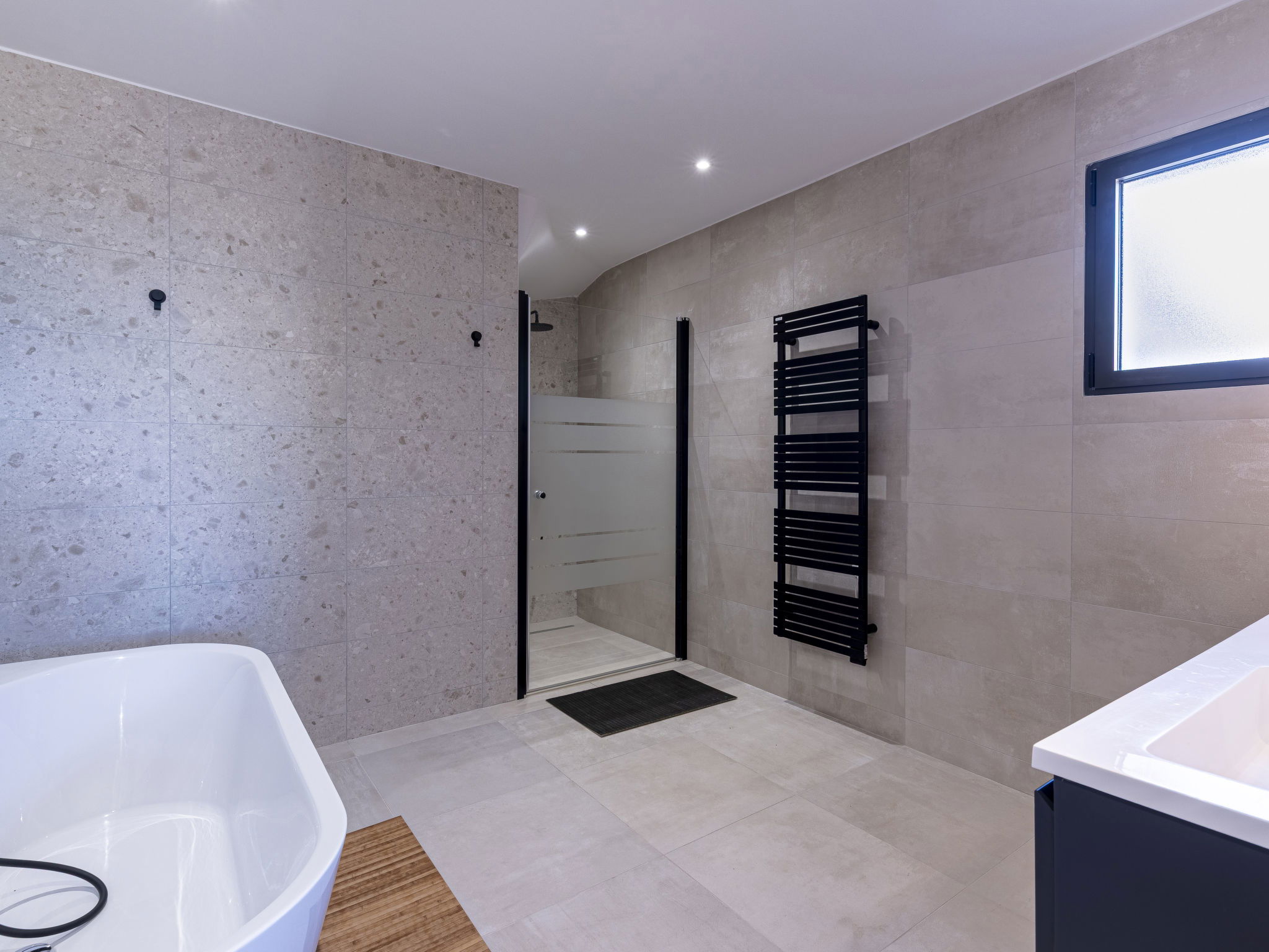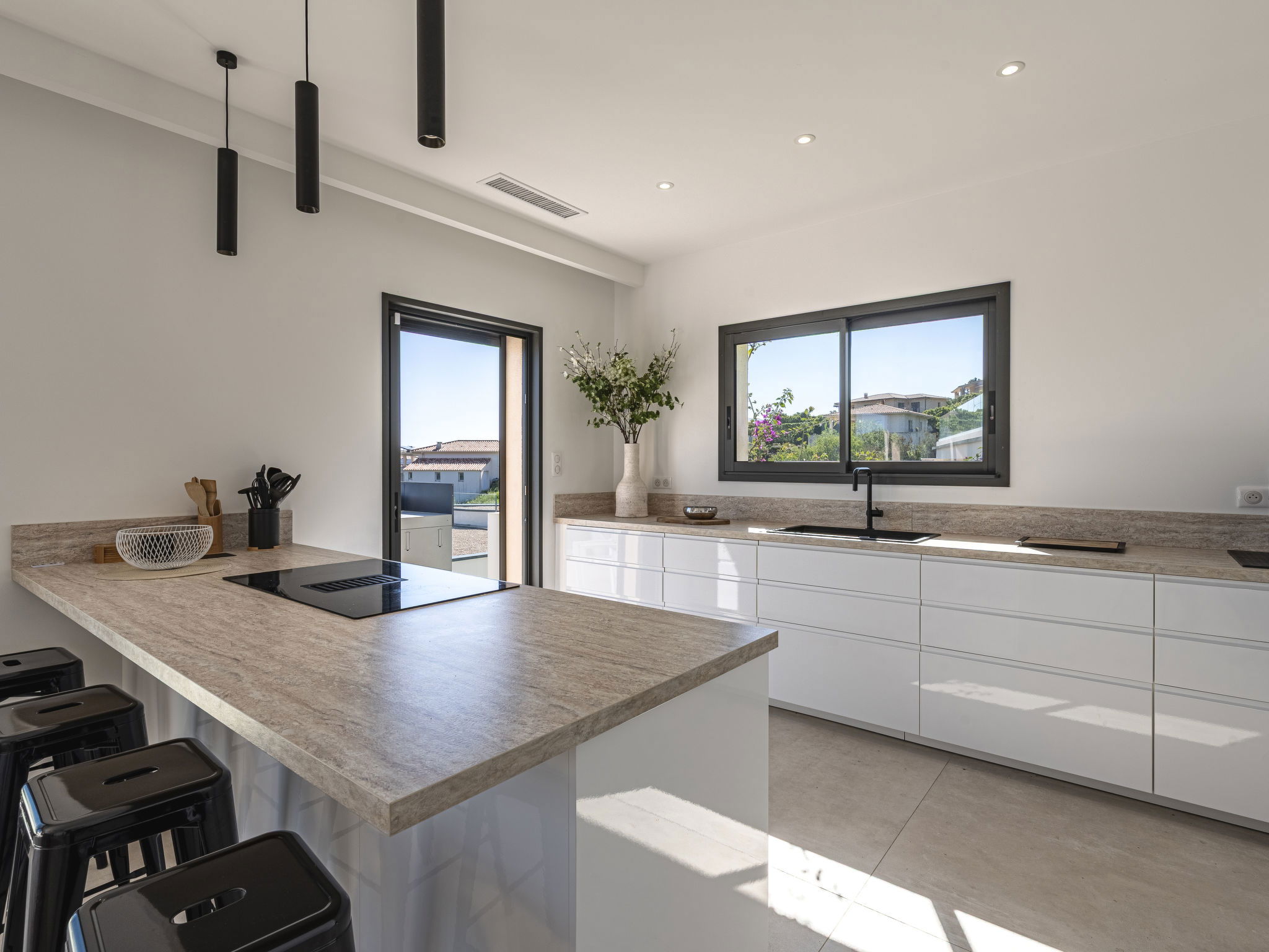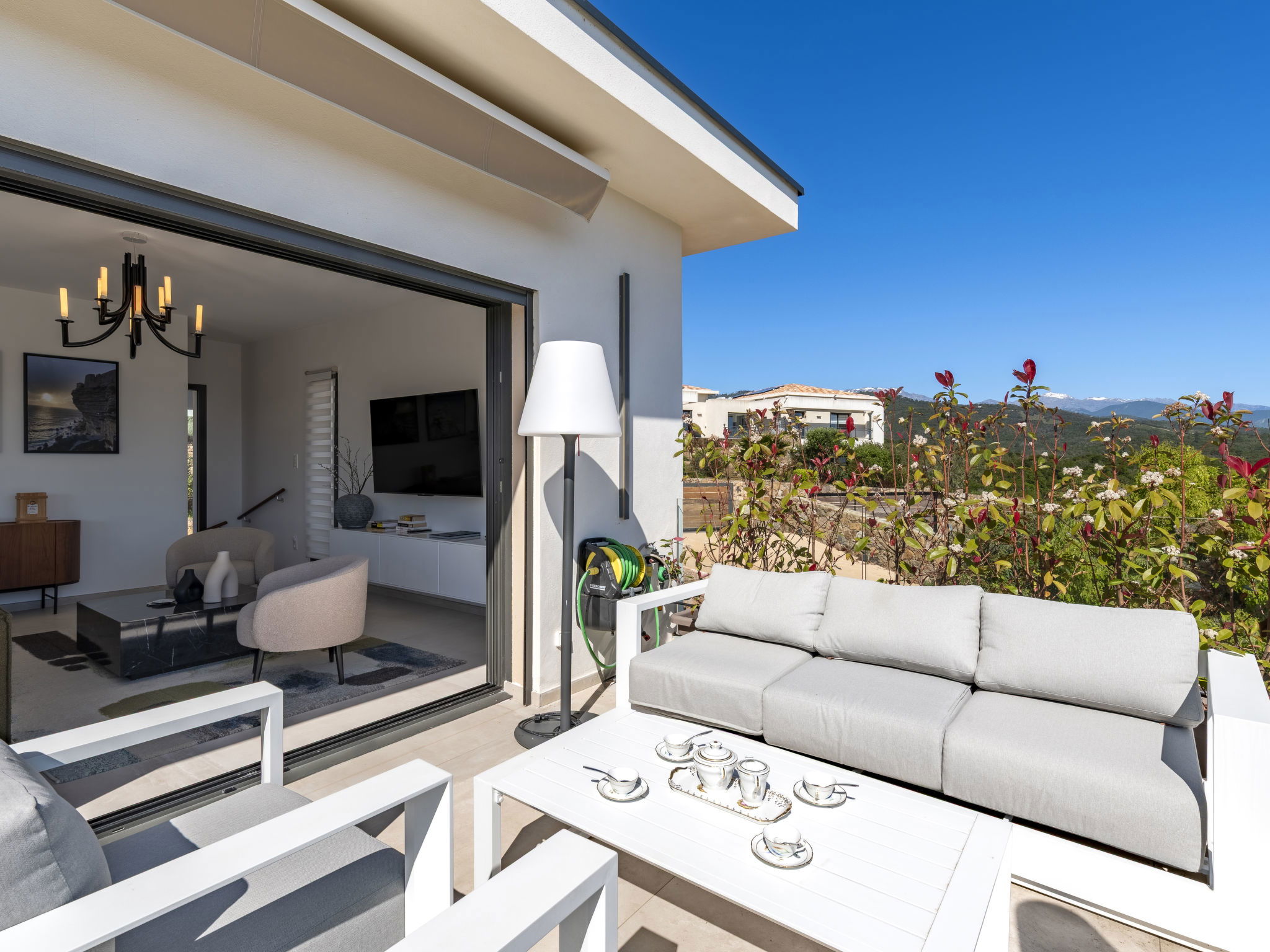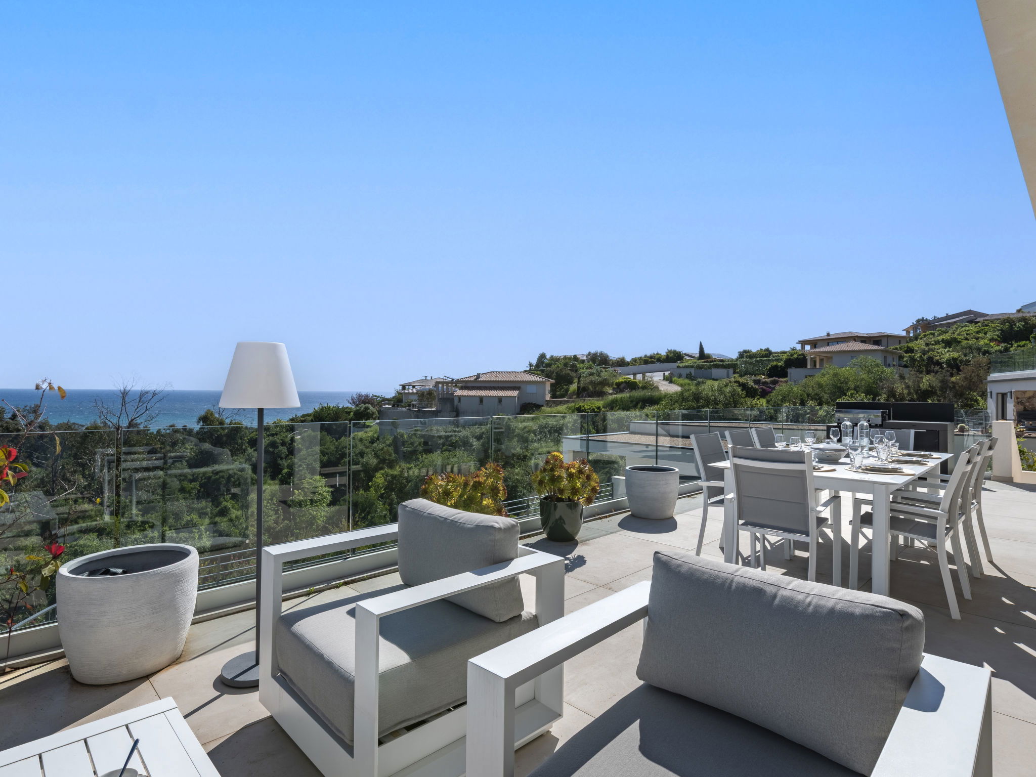"Casa Minà", 4-room villa 150 m2 on 2 levels. Object suitable for 4 adults + 4 children. Beautiful and modern furnishings: large living/dining room with dining table and TV (flat screen). Exit to the terrace. Kitchen (oven, dishwasher, 4 induction hot plates, toaster, kettle, microwave, electric coffee machine, cooking island). Electric heating, air-conditioning. On the lower ground floor: 1 children's room with 2 x 2 bunk beds (90 cm, length 190 cm), electric shutters. Exit to the swimming pool. 2 rooms, each room with 1 french bed (160 cm, length 200 cm), electric shutters. Exit to the swimming pool. 2 showers/WC, bath/shower/WC. Terrace partly roofed. Terrace furniture, barbecue, sitting area. Beautiful view of the sea and the countryside. Facilities: washing machine, dryer, safe, iron, hair dryer. Internet (WiFi, free). Parking. E-charging station. Please note: smoke alarm. Offer by a private individual according to Art. 155, IV of CGI.
