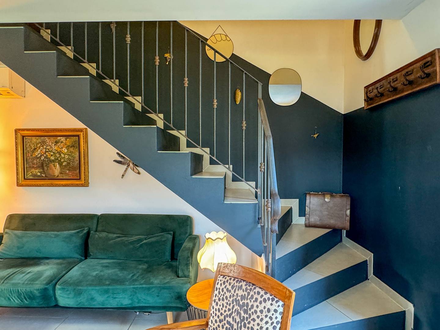 It has two bedrooms on the floor, one with a double bed and the other with two single beds. The bathroom has an Italian shower, sink and toilet.