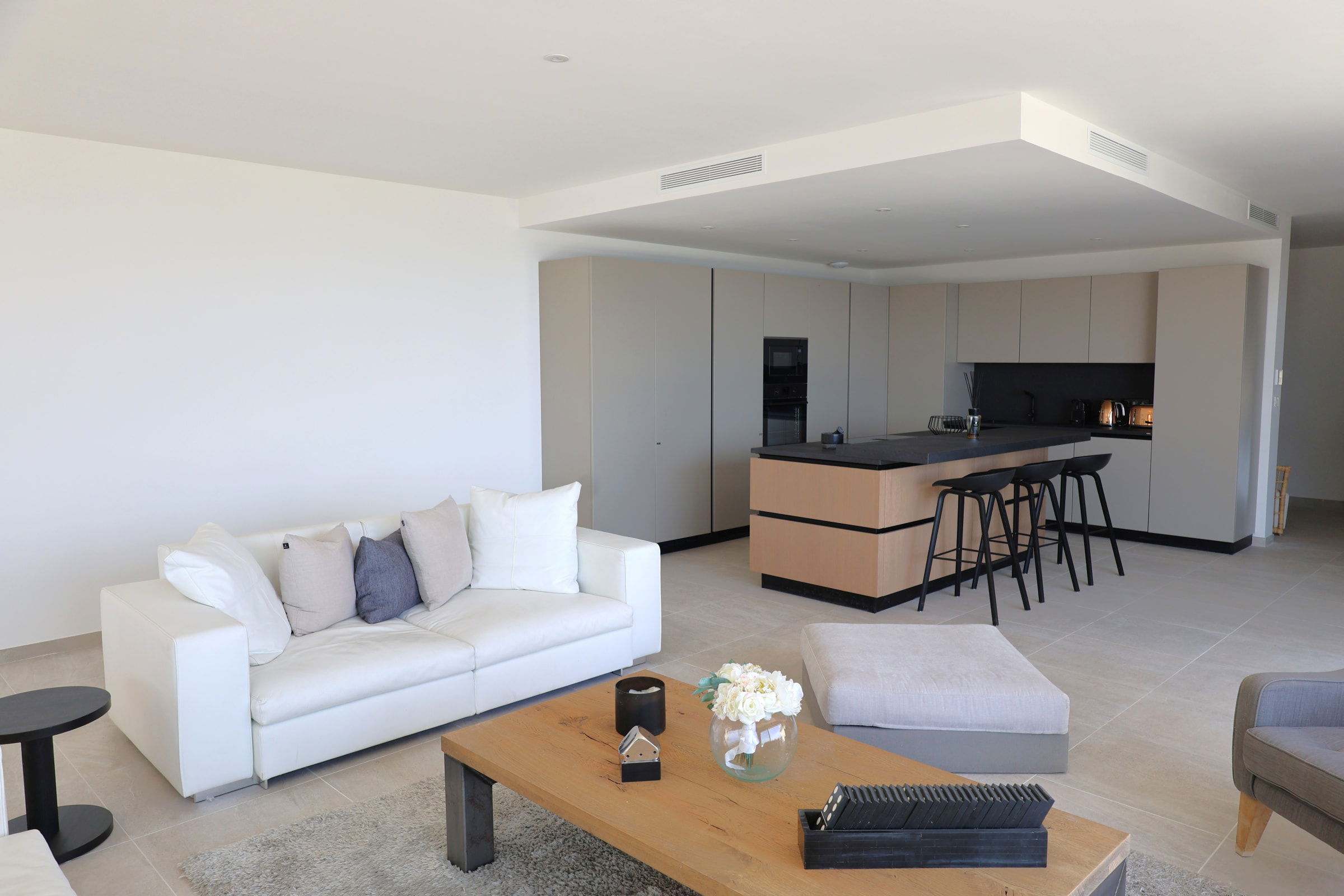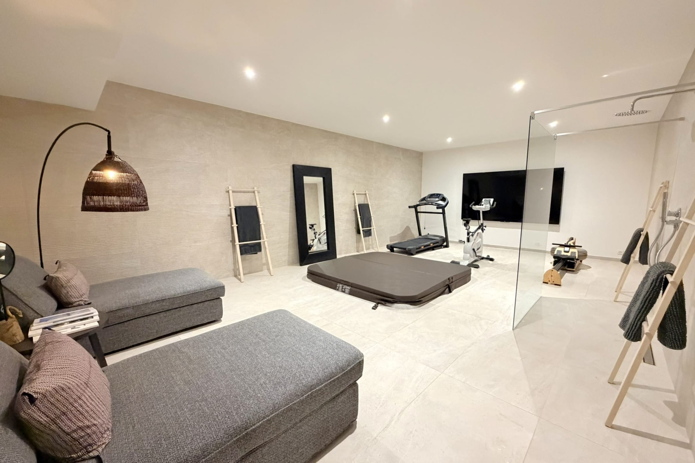 On the comfort side, the villa is fully air-conditioned and equipped with fiber Wi-Fi. A safe is also available. Sports enthusiasts will appreciate the gym equipped with a treadmill, a bicycle, a rowing machine. A jacuzzi is located in the gym but is not usable by the tenants for a safety issue. On the same level of the swimming pool is available, a complete laundry room with washing machine, dryer, iron and ironing board.