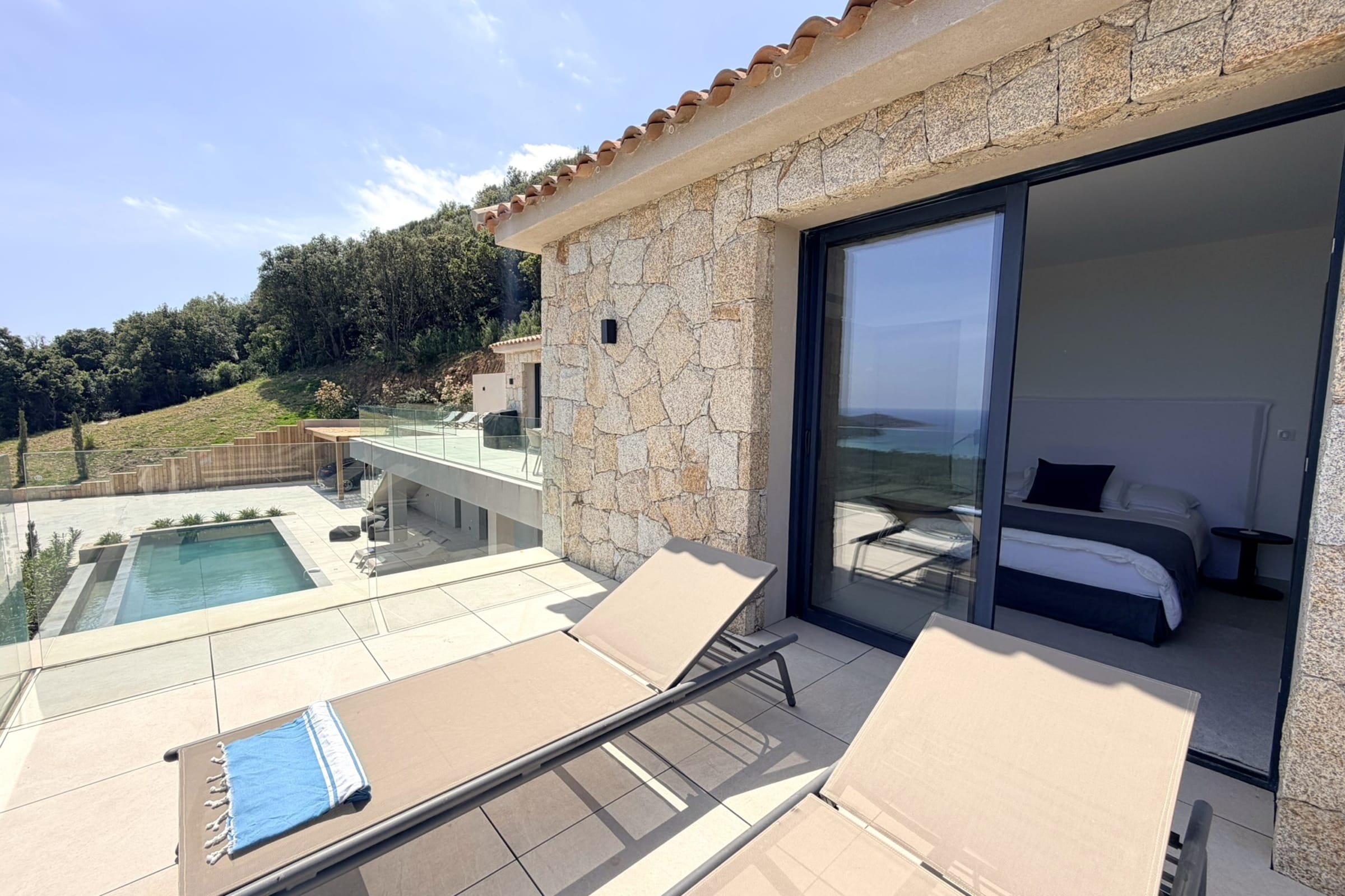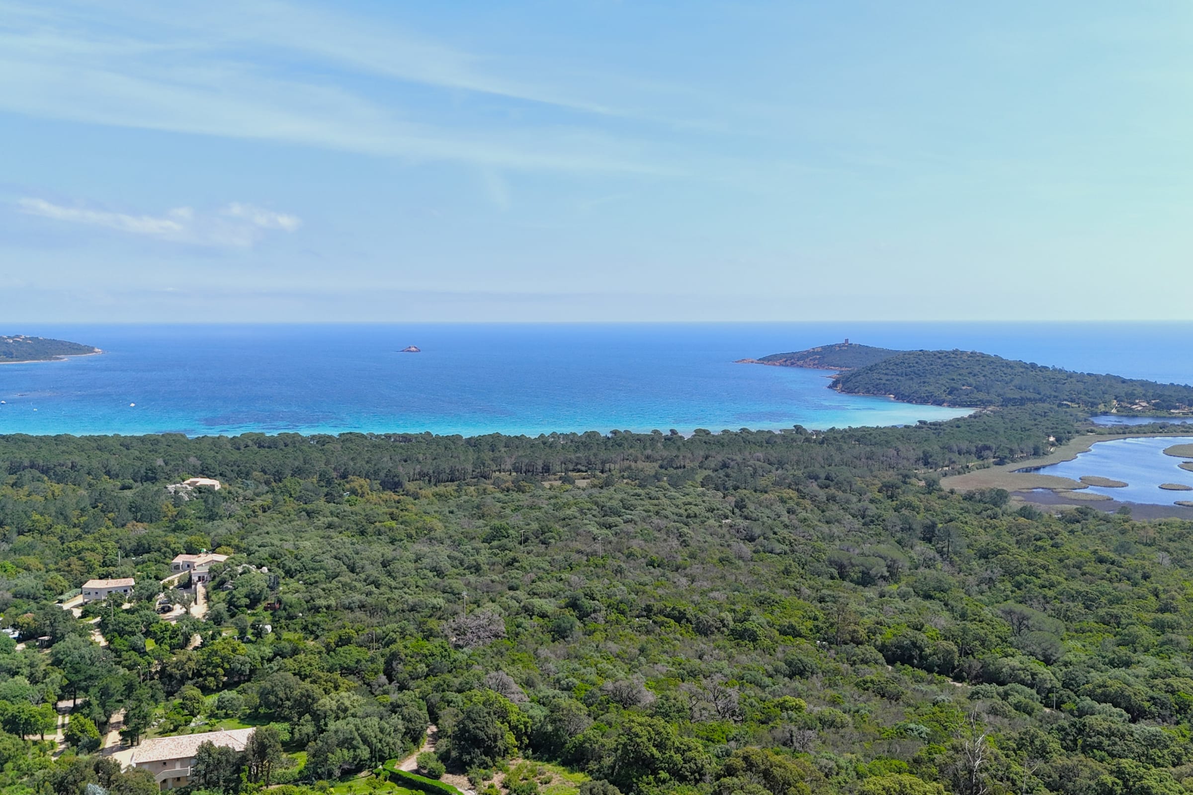In a peaceful setting, in the heart of unspoilt nature, this place enjoys a privileged location with a breathtaking view of the bay of Pinarello, a real jewel of the Corsican coast, and in the immediate vicinity of its small lively port where restaurants and a friendly atmosphere coexist. You will also benefit from the proximity of the center of Sainte Lucie de Porto-Vecchio, offering all the essential daily amenities: bakery, supermarket, brewery, doctor's office, pharmacy or even hairdresser. Only a few minutes away, the Cavu Valley reveals an exceptional natural setting, ideal for hiking and swimming in its natural pools with crystal clear waters, perfect for recharging your batteries by the river.