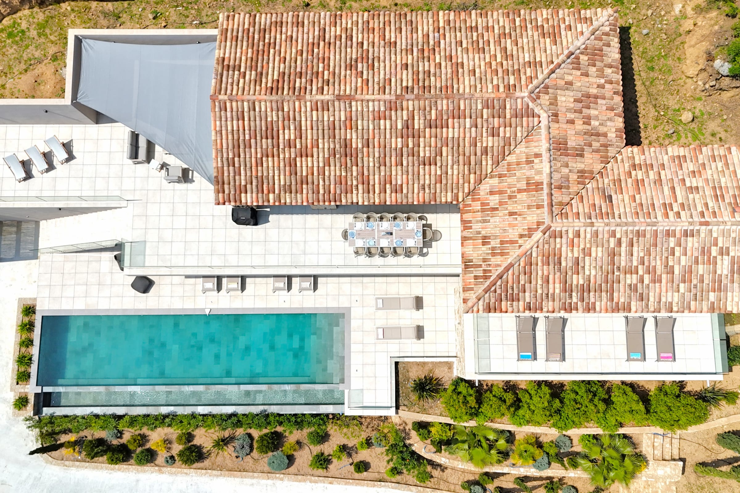 Located on a vast plot of 4,500 m2, this property offers a peaceful and privileged environment, ideal for taking full advantage of the climate and the surrounding nature. The garden hosts a large Balinese infinity pool of 15 x 4.5 meters, secured by an alarm, perfect for cooling off and relaxing. Around the pool, you will find several landscaped areas with 6 sun loungers, comfortable ottomans, a swing as well as an elegant garden furniture composed of sofas, armchairs and coffee table. An outdoor dining area allows you to share convivial moments thanks to a large table that can accommodate up to 12 people, accompanied by 2 umbrellas for more comfort. A gas griddle is also available for outdoor meals. This place is ideal for stays in complete tranquility, in a neat and pleasant setting, with high-end services..